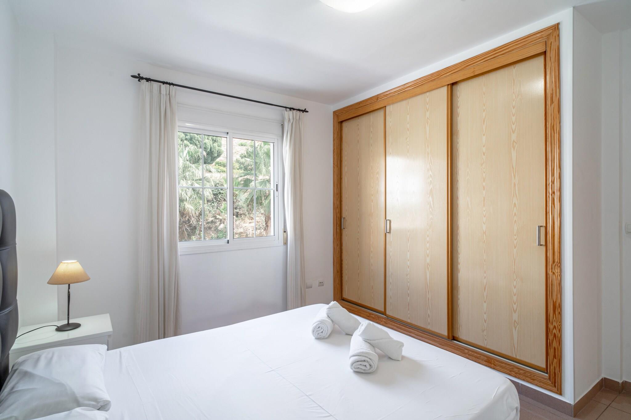 Dette stilfulde og velbeliggende moderne feriehus har plads til op til fire gæster med en dobbeltseng og to enkeltsenge fordelt på to soveværelser. Det er ikke kæledyrsvenligt, men perfekt til familier eller små grupper, der søger et tilflugtssted ved stranden. Lejligheden har en lys stue med spiseplads, der åbner ud til en rummelig terrasse med direkte havudsigt. Aircondition sikrer komfort, og gæsterne kan benytte sig af en privat parkeringsplads i bygningen. Yderligere tjenester som lufthavnstransport, en velkomstpakke og personlig indtjekning er tilgængelige for at forbedre opholdet. Denne lejlighed er ideelt beliggende kun 30 meter fra Burriana-stranden og ligger i gåafstand fra lokale restauranter, strandbarer og souvenirbutikker. Området er kendt for sine vandsportsgrene, herunder paddlesurfing og kajaksejlads, samt sine naturskønne kyststier og livlige strandatmosfære. Volleyballbaner og livemusikbegivenheder bidrager til den pulserende oplevelse. Nerja centrum og de nærliggende Maro-klipper tilbyder yderligere muligheder for udforskning og eventyr, med offentlige transportmuligheder i nærheden. Indenfor finder gæsterne et fuldt udstyret separat køkken med keramisk kogeplade, opvaskemaskine, mikrobølgeovn og kaffemaskine, hvilket gør selvforplejning enkel og bekvem. Lejligheden har også et komplet badeværelse med badekar og hårtørrer. Andre faciliteter inkluderer højhastighedsinternet, vaskemaskine, elevator og tv, alt sammen fordelt på et 90 m² stort område designet til et komfortabelt og afslappende ophold.