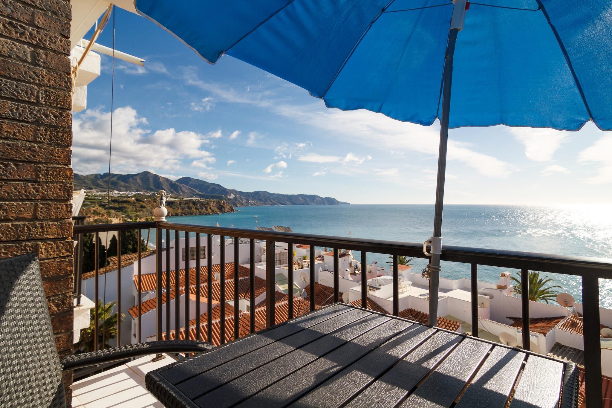 Dette lyse og veludstyrede feriehus på syvende sal tilbyder komfortabel indkvartering til op til fire personer med to soveværelser - det ene med en dobbeltseng og det andet med to enkeltsenge. Lejligheden er ikke kæledyrsvenlig, men tilbyder et afslappende miljø med to private balkoner med panoramaudsigt over havet. Der er aircondition overalt, højhastighedsinternet og adgang til internationale tv-kanaler. Selvom der ikke tilbydes organiserede aktiviteter, gør den tætte beliggenhed til stranden det nemt at nyde udendørsaktiviteter i dit eget tempo. Lejligheden er ideelt beliggende i Parador de Nerja-området, kun 50 meter fra Carabeillo-stranden og en kort gåtur fra den ikoniske Balcon de Europa. Denne førsteklasses beliggenhed placerer dig i nærheden af restauranter, caféer og butikker ved stranden, hvilket tilbyder bekvemmelighed og lokal charme. Offentlige transportforbindelser, herunder Nerja busstation, er i nærheden, og lufthavnstransport kan arrangeres for gæster efter anmodning. Indenfor har ejendommen et separat køkken udstyret med gaskomfur, ovn, køleskab, mikrobølgeovn, fryser og alt nødvendigt service og redskaber. Der er også kaffemaskine, brødrister og elkedel. Badeværelset har et moderne brusebad og en hårtørrer. Yderligere faciliteter såsom vaskemaskine, strygefaciliteter og elevatoradgang øger komforten og funktionaliteten i denne 80 m² store lejlighed.