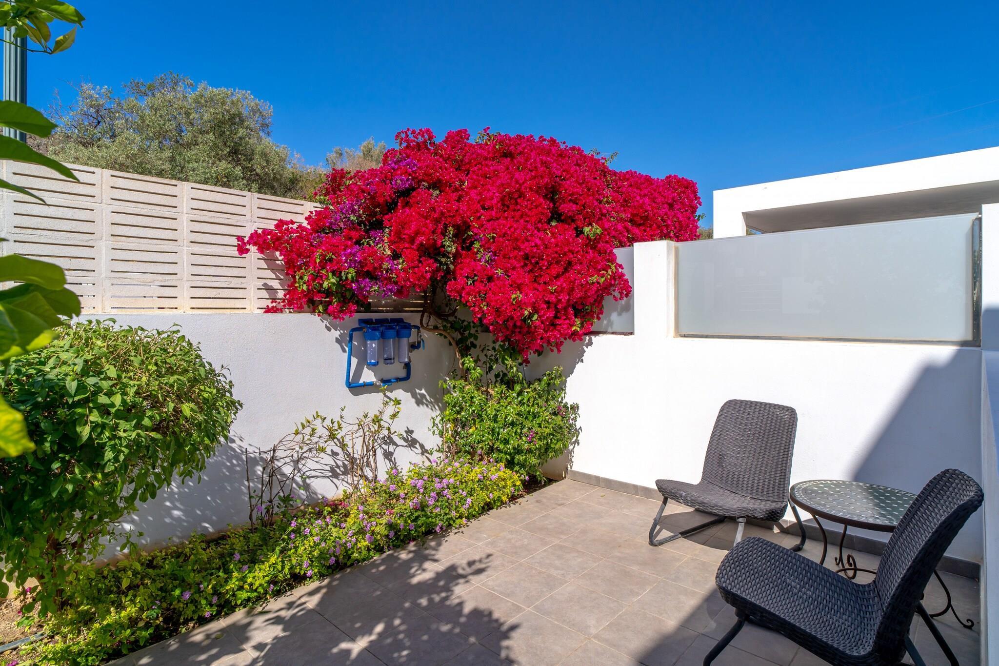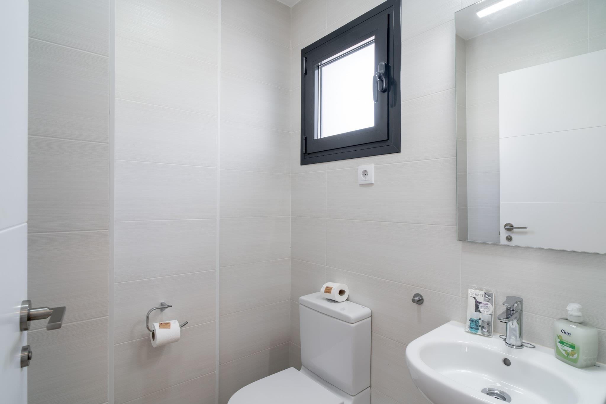 Stueetage: (Indgang , Internetadgang) På 2. etage: (Stue(Fjernsyn, sofahjørne), Køkken(elkedel, brødrister, kaffemaskine, ovn, mikrobølgeovn, opvaskemaskine , køleskab, fryser, ), soveværelse(dobbeltseng), soveværelse(enkeltseng, enkeltseng), badeværelse(bruser), badeværelse(bruser), toilet) Havemøbler, vaskemaskine, balkon, klimaanlæg, terrasse, have(indhegnet), have, grill, swimmingpool(deles med andre gæster), strygejern, føntørrer, Alarm