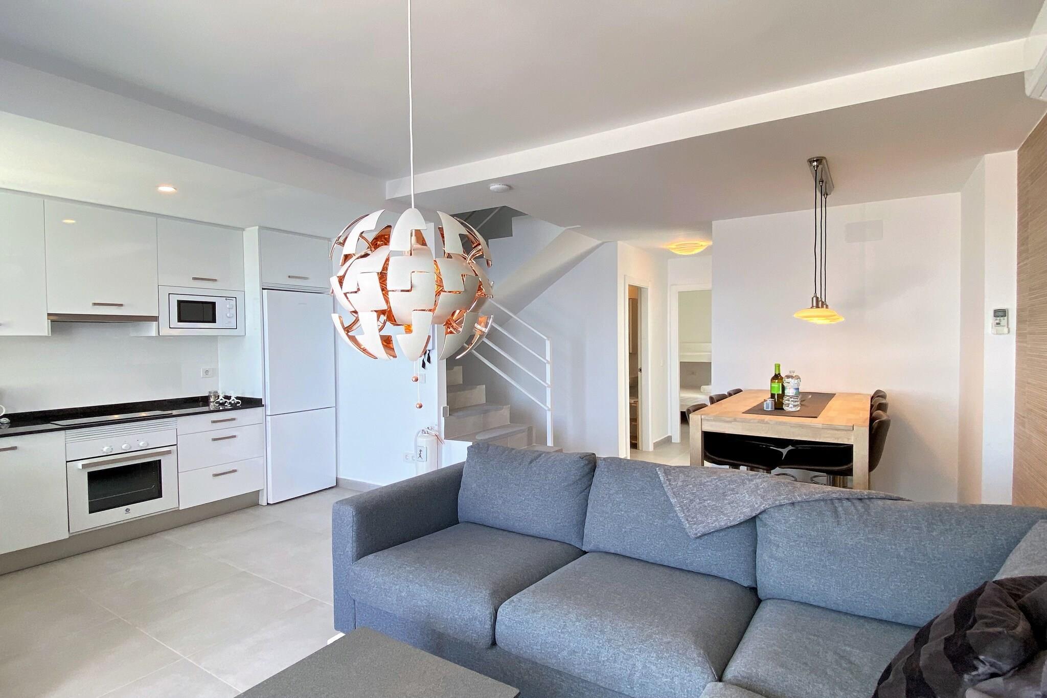 Denne stilfulde ferielejlighed i et roligt boligkompleks har tre soveværelser og tre badeværelser, der komfortabelt rummer op til seks gæster. Den har en dobbeltseng og to køjesenge, hvilket er ideelt for både familier og grupper. Lejligheden tilbyder tre private terrasser med sol hele dagen, en fantastisk udsigt over havet og bjergene samt en fælles saltvandspool, der er tilgængelig året rundt. En sofa i opholdsstuen giver ekstra komfort, mens aircondition sikrer et behageligt ophold. Ejendommen er ikke kæledyrsvenlig, men der er mulighed for at leje børnesenge og højstole. Lejligheden ligger mellem Nerja og Torrox langs Málagas østkyst, kun 1,2 km fra El Playazo-stranden og 1 km fra Playa Güilche, med andre populære steder som El Peñoncillo og Torrecilla-stranden inden for en kort køretur. Gæsterne har nem adgang til lokale restauranter, strandbarer og familievenlige attraktioner. For dem uden bil tilbyder et busstoppested langs N340-vejen - kun 1 km væk - direkte ruter til bymidter, strande og markeder. Taxaer er også let tilgængelige og tilbyder overkommelig transport i hele regionen. Indenfor er det åbne køkken fuldt udstyret med keramisk kogeplade, ovn, mikrobølgeovn, køleskab, fryser og opvaskemaskine, samt alt nødvendigt køkkengrej og små apparater som brødrister og kaffemaskine. Gæsterne finder også tre moderne badeværelser med brusere, vaskemaskine, hårtørrer og strygejern.