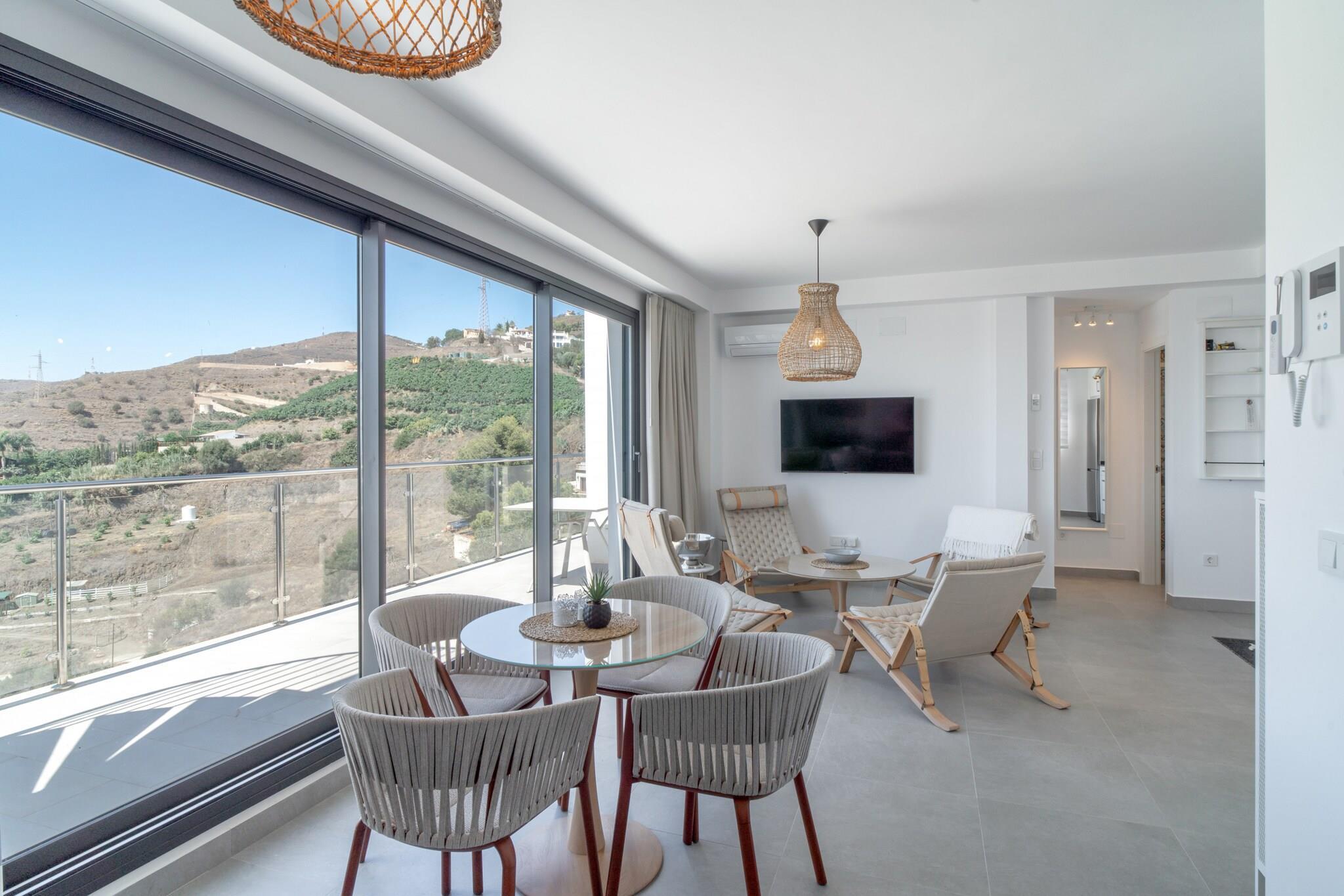 Los Aguacates Bellavista er et charmerende feriehus med en fantastisk udsigt over Middelhavet, beliggende i Nerjas fredelige Capistrano-område. Denne ejendom med to soveværelser tilbyder en rolig oase, kun 2 kilometer fra stranden. Nyd havudsigten fra både soveværelset og stuen, og vågn op til en malerisk start på dagen. Huset har to terrasser, hvoraf den ene er tilgængelig fra stuen og fører til den fælles swimmingpool, ideel til afslapning og nydelse af middelhavsklimaet. Det rummelige soveværelse tilbyder en dobbeltseng af høj kvalitet, der vender ud mod havet med en privat terrasse, der er perfekt til solbadning. Det andet soveværelse er møbleret med to komfortable enkeltsenge. Ejendommen inkluderer også et fuldt udstyret køkken, aircondition, højhastighedsinternet og internationale tv-kanaler. Et moderne badeværelse med bruser og et ekstra toilet i stueetagen øger bekvemmeligheden for gæsterne. Den smukt anlagte urbanisering Aguacates Bellavista tilbyder botaniske haver, avocadotræer og et velholdt poolområde. Parkering er let at finde, selv i højsæsonen. For ekstra bekvemmelighed kan du bestille en lufthavnstransport og anmode om en velkomstpakke med kolde drikkevarer og snacks. Personlig... Indtjekning er mulig fra kl. 16:00, med en værtschef til at tage imod dig og sikre en problemfri ankomst.