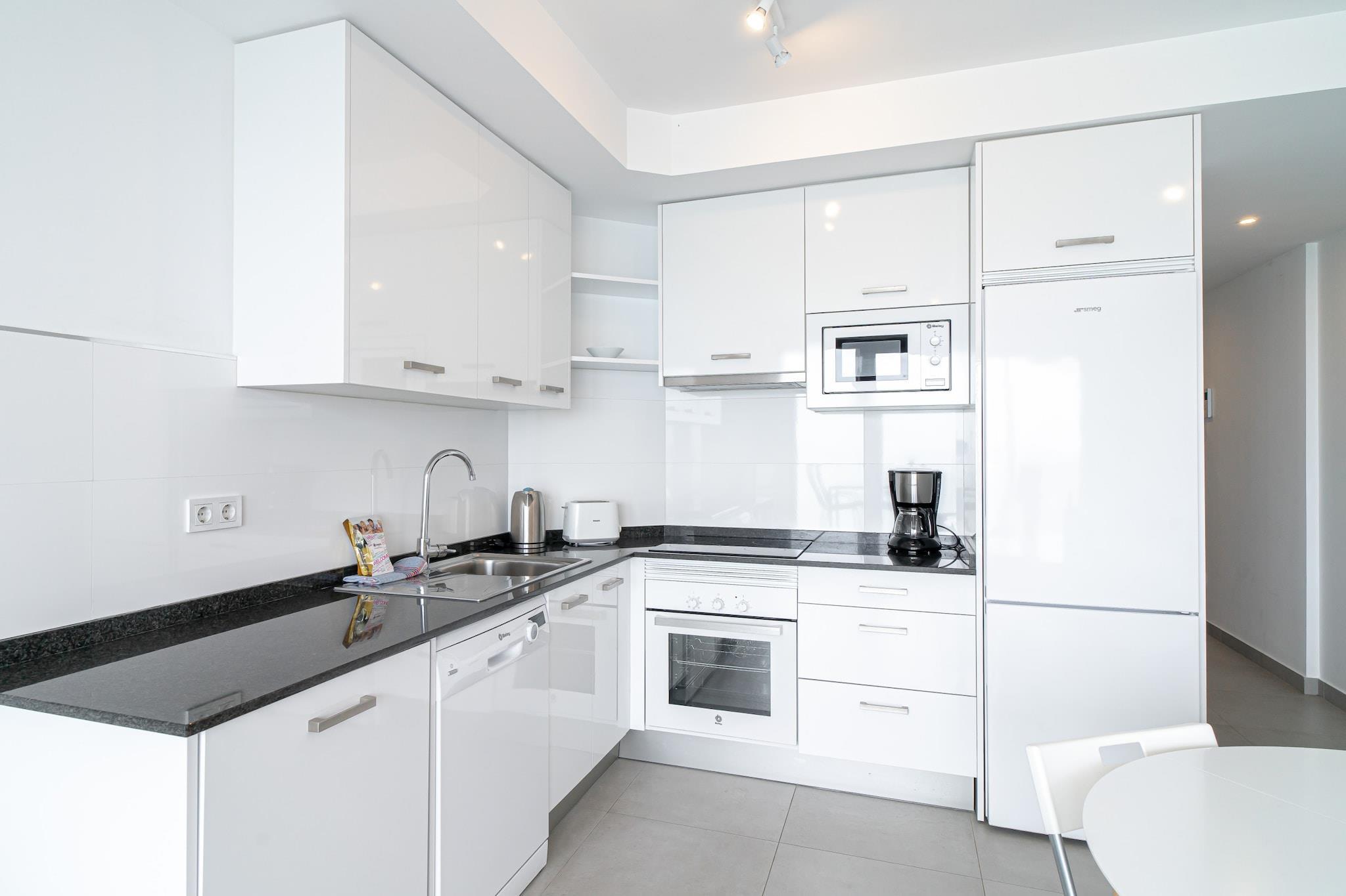 , åbent køkken(kogeplade(induktion), elkedel, brødrister, kaffemaskine, ovn, mikrobølgeovn, opvaskemaskine , køleskab, fryser, ), stue / spisestue(Fjernsyn, spisebord, sofahjørne), soveværelse(køjeseng), soveværelse(enkeltseng, enkeltseng), badeværelse(bruser), badeværelse(bruser), Internetadgang, vaskemaskine, balkon, klimaanlæg, solstole, parkering, swimmingpool(deles med andre gæster), strygejern