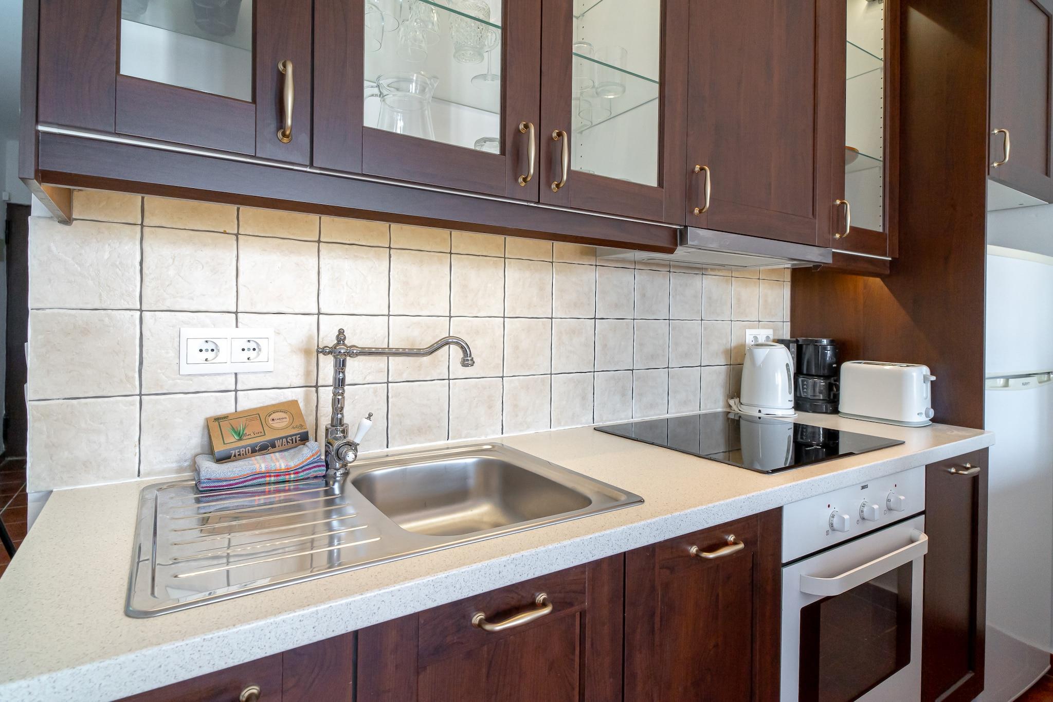 Åbent køkken(elkedel, brødrister, kaffemaskine, ovn, mikrobølgeovn, køle-fryseskab, elektriske kogeplader, , ), stue / spisestue(Fjernsyn, spisebord, pejs, sofahjørne), soveværelse(king size-seng), badeværelse(bruser, håndvask), Internetadgang, vaskemaskine, klimaanlæg, terrasse(15 m2), swimmingpool(deles med andre gæster), strygejern, føntørrer
