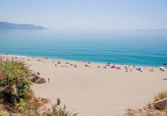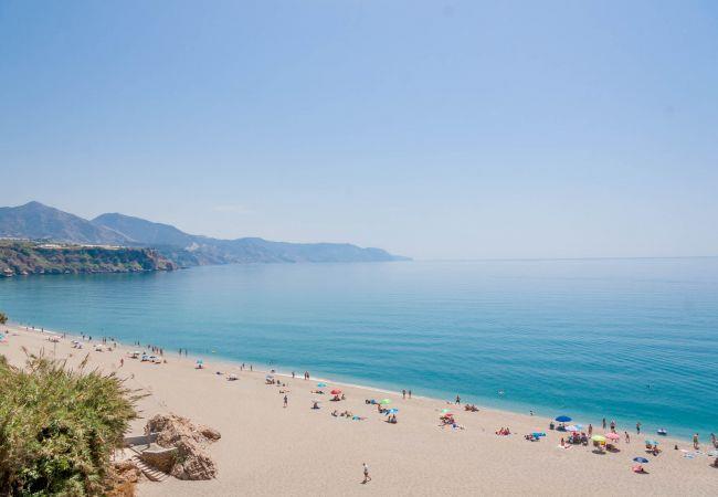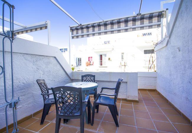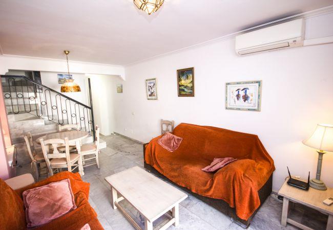 Very spacious 2 bedroom townhouse in quiet and central location, near to the Hotel Parador, the famous Carabeo street and 5 minutes walk from the beautiful Balcón de Europa. Within a small and quiet typical Andalusian urbanization within the heart of Nerja. It shares a really nice garden and pool with the few other houses in the complex. It is a 5 minutes walk to beach, 10 minute walk to Balcon de Europa. It has 2 bedrooms, 1.5 bathrooms, large lounge/dining room, 3 terraces throughout the property with sea, pool and mountain views. Fully equipped kitchen. On the second floor are the two bedrooms, with a double bed and two single beds, the possibility of a sofa bed or an extra bed in the living room, bathroom and toilet. It has a roof terrace to enjoy the sun privately.
