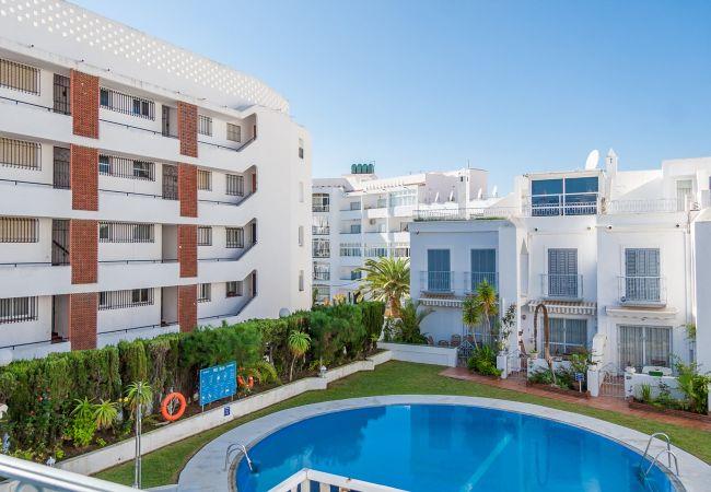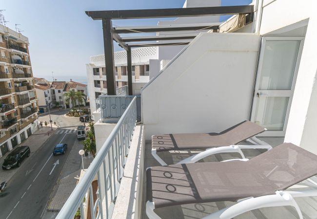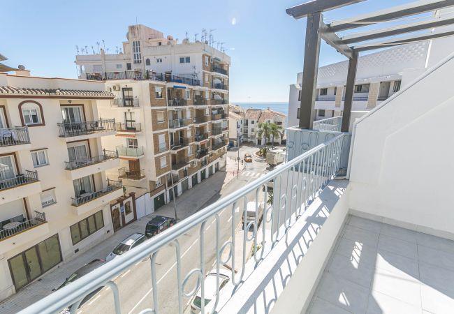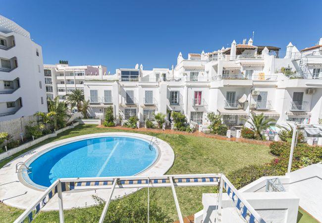 Very spacious 3 bedroom townhouse in quiet and central location, near to the Hotel Parador, the famous Carabeo street and 5 minutes walk from the beautiful Balcón de Europa. Within a small and quiet typical Andalusian urbanization within the heart of Nerja. It shares a really nice garden and pool with the few other houses in the complex. It is a 5 minutes walk to beach, 10 minute walk to Balcon de Europa. It has 3 bedrooms, 1.5 bathrooms, large lounge/dining room, 2 terraces throughout the property with sea, pool and mountain views. Fully equipped kitchen. On the second floor are the two bedrooms and bathroom, with a double bed, on the third floor you have one bedroom with doublbed. It has a roof terrace to enjoy the sun privately.