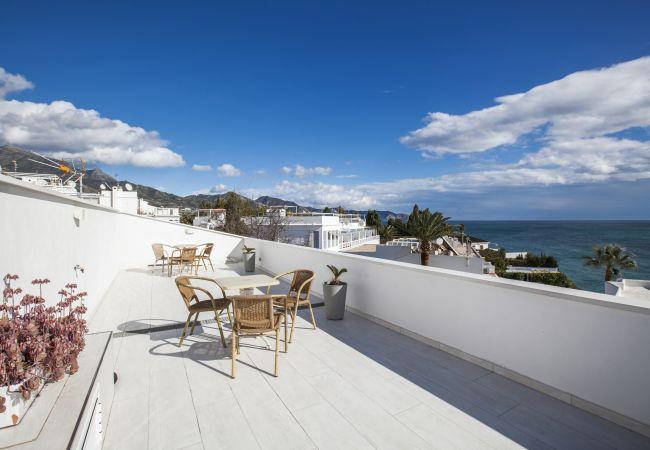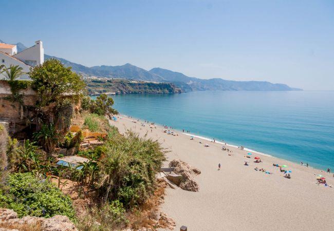 Located in the center of Nerja, Calle Carabeo is one of the most prestigious and oldest streets in Nerja. Attached to the coast it offers wonderful views of the sea and totally pedestrianized, it offers a quiet environment for a short walk to the Balcón de Europa and the old town of Nerja. The beaches are just a few steps from the villa with access by stairs to the beaches of Carabeillo, Carabeo, Calahonda and Salón.