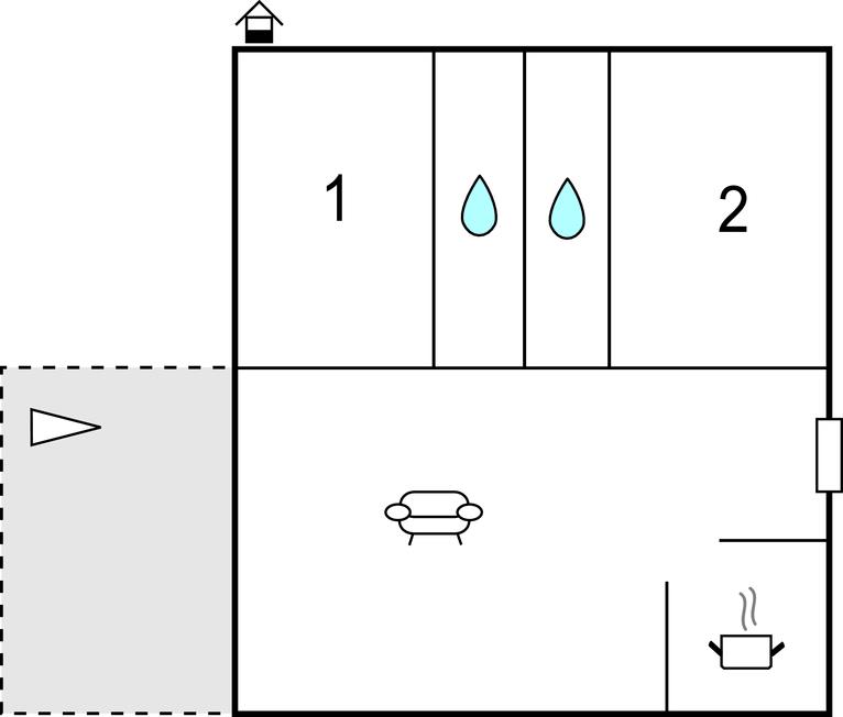 Opholdsstue/køkken - 1 Soveplads. (Sofa, madras eller lignende).