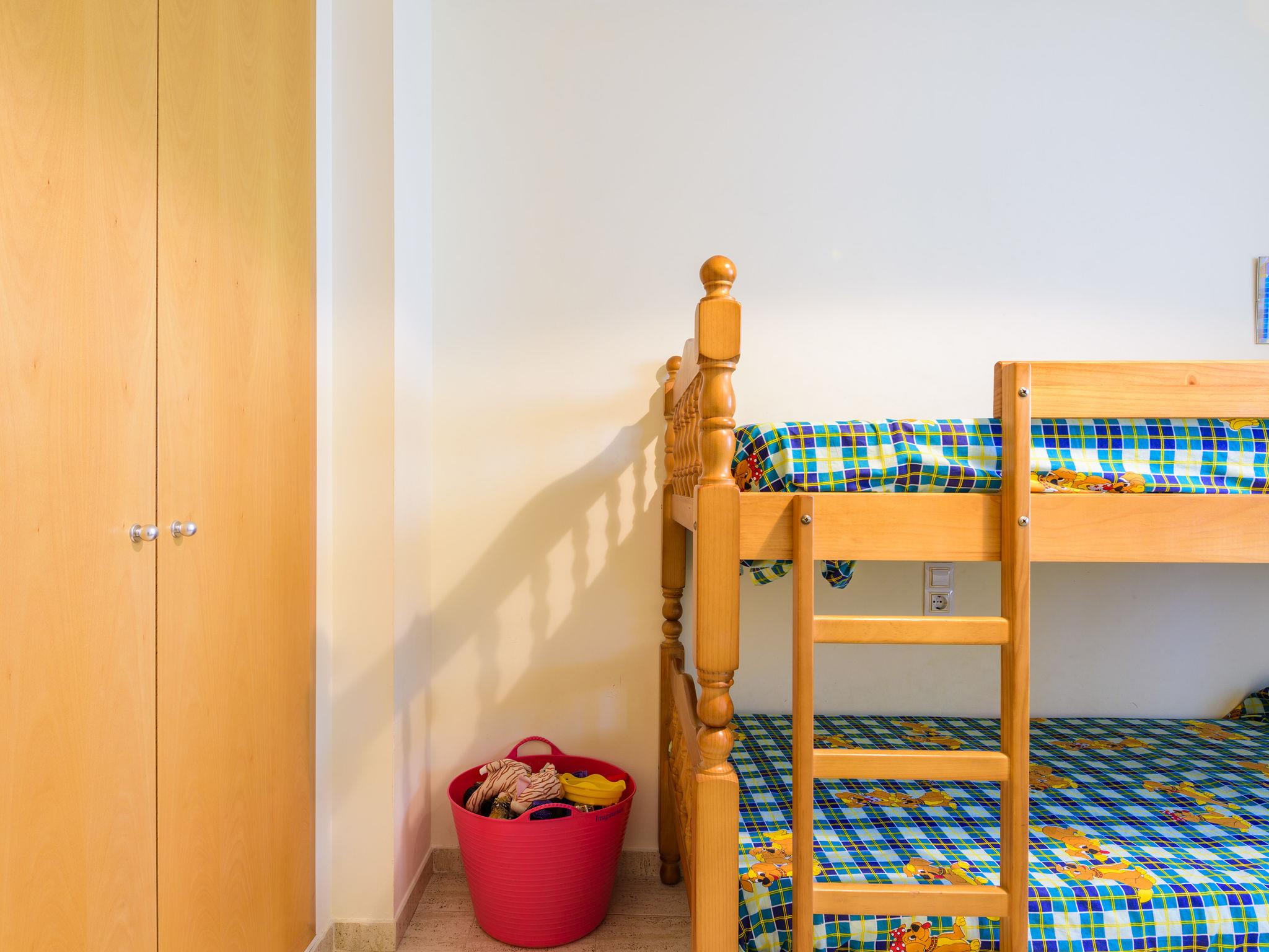 "Mar de Oropesa I", 2-room apartment 73 m2 on 1st floor. Practical and comfortable furnishings: living/dining room with dining table, digital TV, flat screen, air conditioning and forced-air heating. Exit to the terrace. 1 room with 1 double bed (150 cm, length 190 cm). 1 room with 3 beds (90 cm, length 190 cm). Open kitchen (dishwasher, 4 ceramic glass hob hotplates, toaster, microwave, freezer, electric coffee machine). Bath/WC. Terrace. Terrace furniture. View of the resort. Facilities: washing machine, iron, hair dryer. Internet (WiFi, free). Garage space n 27. Please note: suitable for families. Non-smokers only. VT-43184-CS // Reg. Nr.: ESFCTU00001202600040012600000000000000000VT-43184-CS4