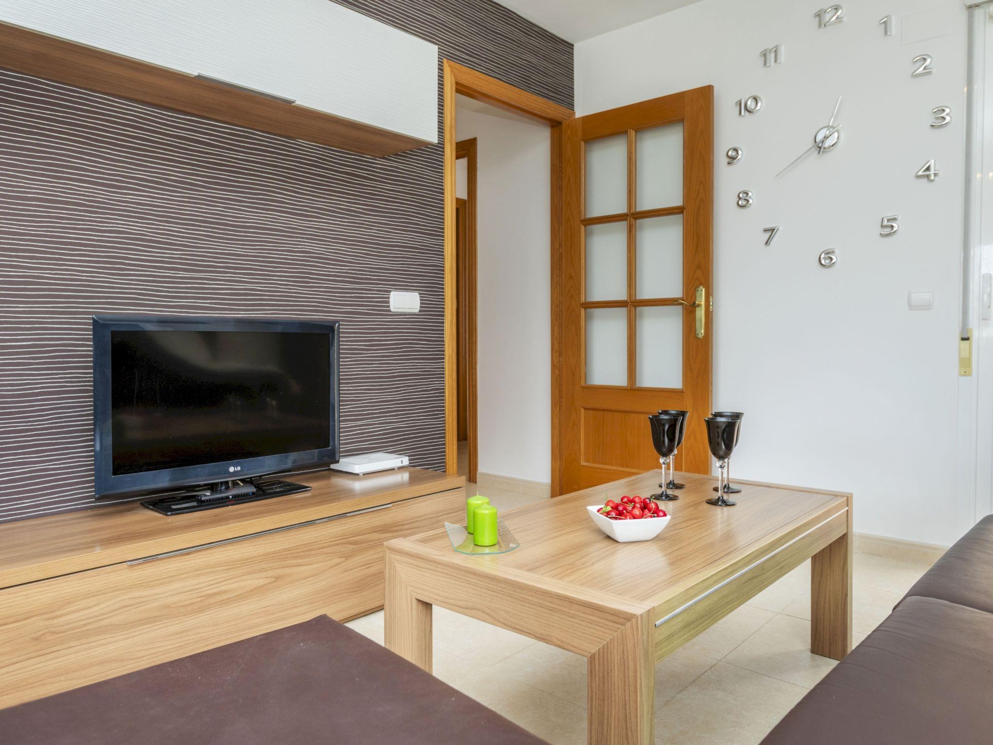"Ed. Villa Magna", 3-room apartment 77 m2. Practical and beautiful furnishings: living/dining room with cable TV (flat screen), fan. Exit to the terrace. 1 room with 1 french bed (150 cm, length 200 cm), bath/WC, digital TV and fan. Exit to the terrace. 1 room with 2 beds (90 cm, length 190 cm), fan. Exit to the terrace. Kitchen (oven, dishwasher, 3 induction hot plates, toaster, kettle, microwave, electric coffee machine). Shower/bidet/WC. Boiler (50 litres). Terrace. Terrace furniture. View of the swimming pool. Facilities: washing machine, dryer, iron, children's high chair, baby cot for up to 2 year olds, hair dryer. Internet (WiFi, free). Please note: suitable for families. Non-smokers only. TV only ES. R00000001