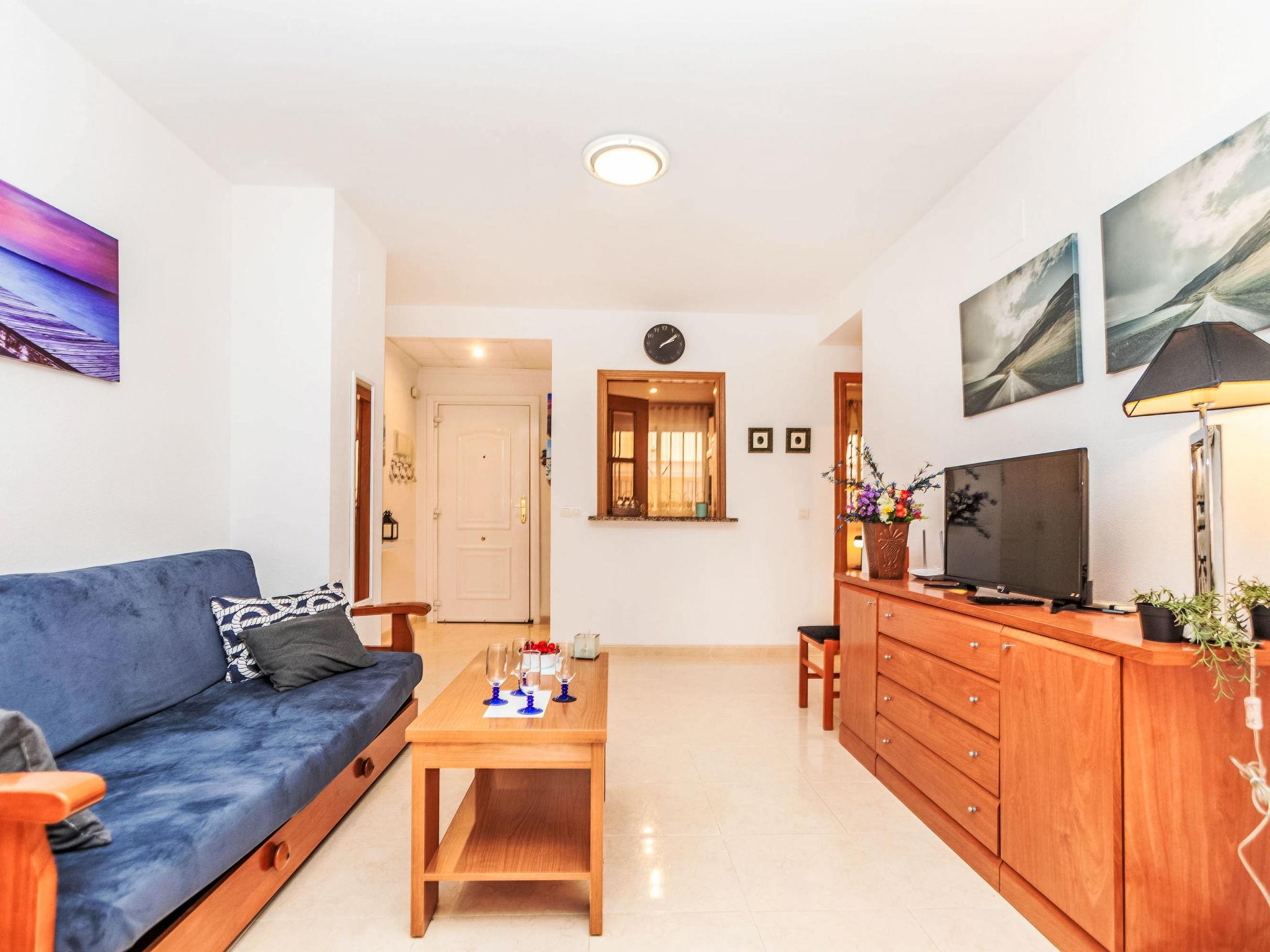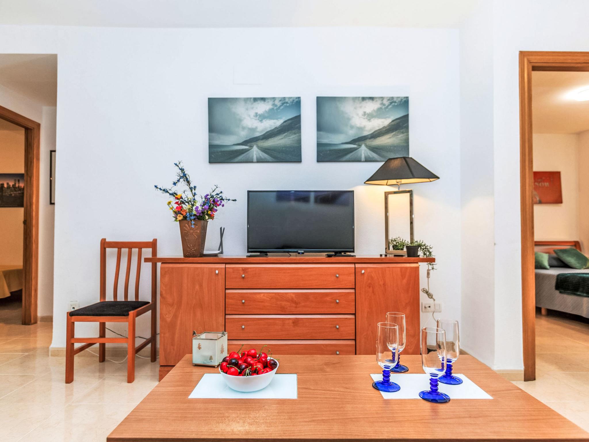 "Acapulco I -1º linea", 3-room apartment 60 m2 on 3rd floor. Practical and comfortable furnishings: living/dining room with dining table, digital TV, flat screen, air conditioning and forced-air heating. Exit to the terrace. 1 double bedroom with 1 french bed (150 cm, length 190 cm), bath/bidet/WC. 1 double bedroom with 2 beds (90 cm, length 190 cm). Kitchen (oven, dishwasher, 4 ceramic glass hob hotplates, toaster, microwave, freezer, electric coffee machine). Bath/bidet/WC. Electric heating. Heating not available in all rooms. Terrace. Terrace furniture. View of the sea. Facilities: washing machine, iron, hair dryer. Internet (WiFi, free). Parking space n 107 (roofed). Suitable for families. Maximum 1 pet/ dog allowed. VT-45590-CS // Reg. Nr.: ESFCTU00001202600023994800000000000000000VT-45590-CS7