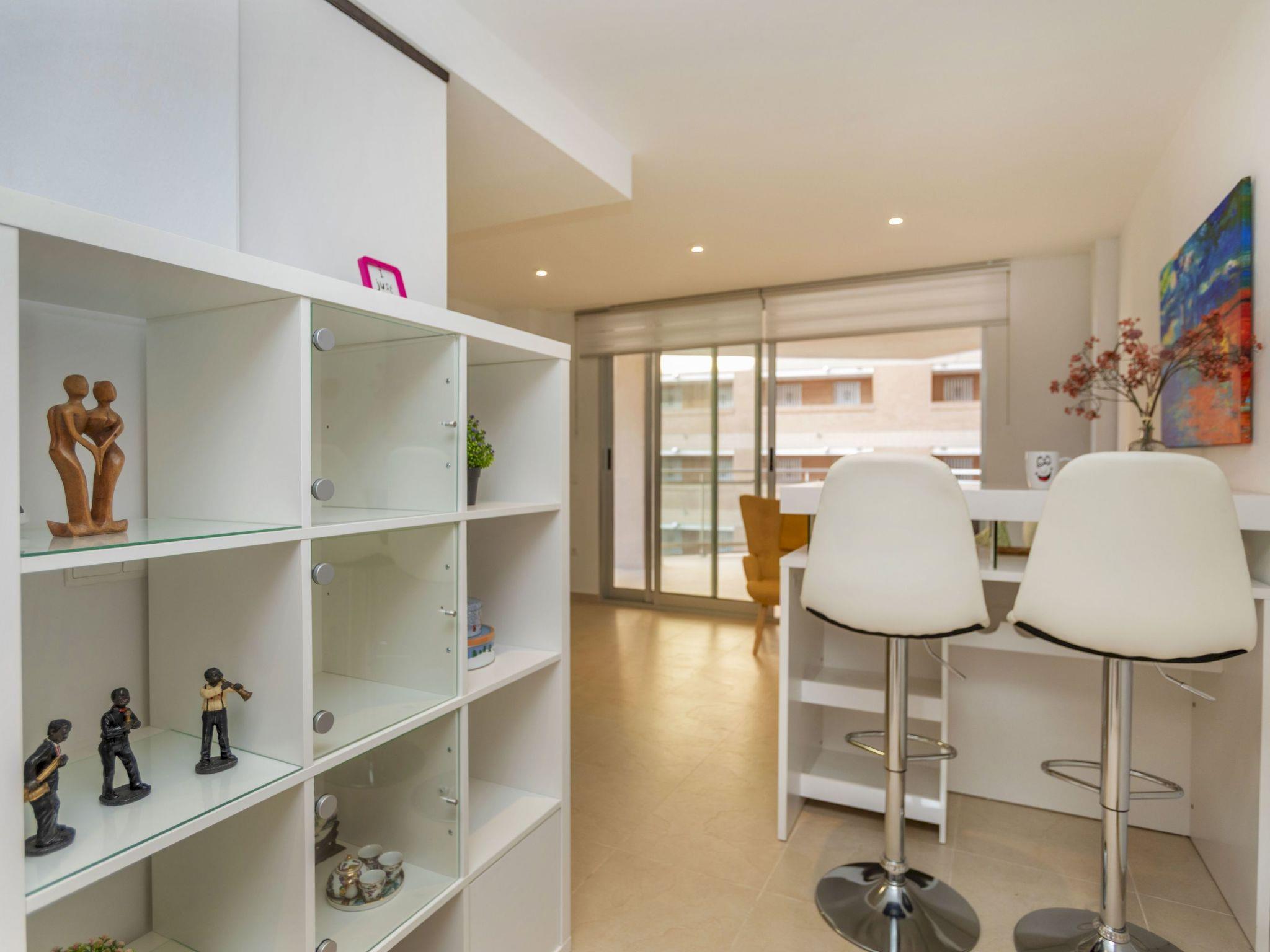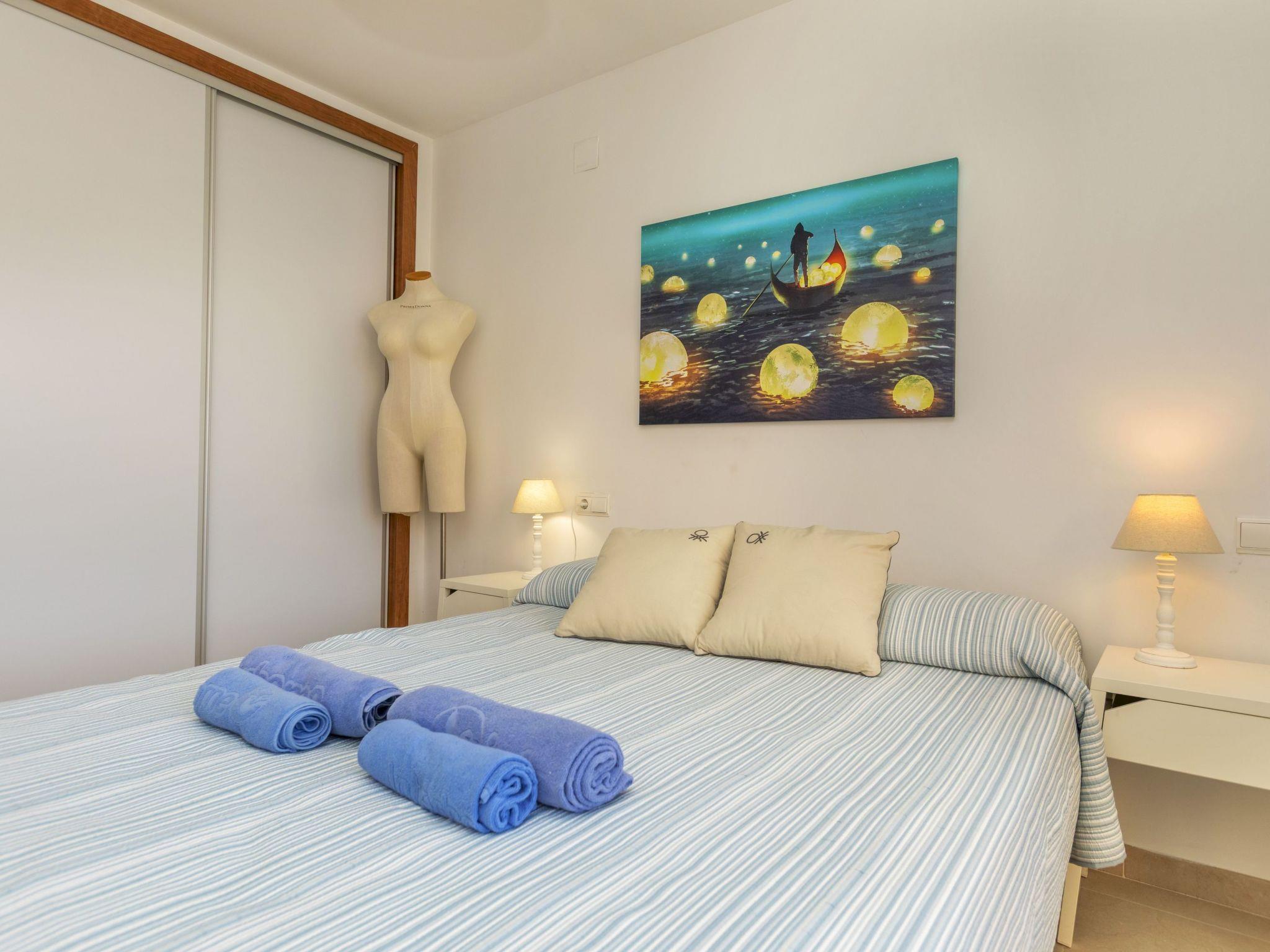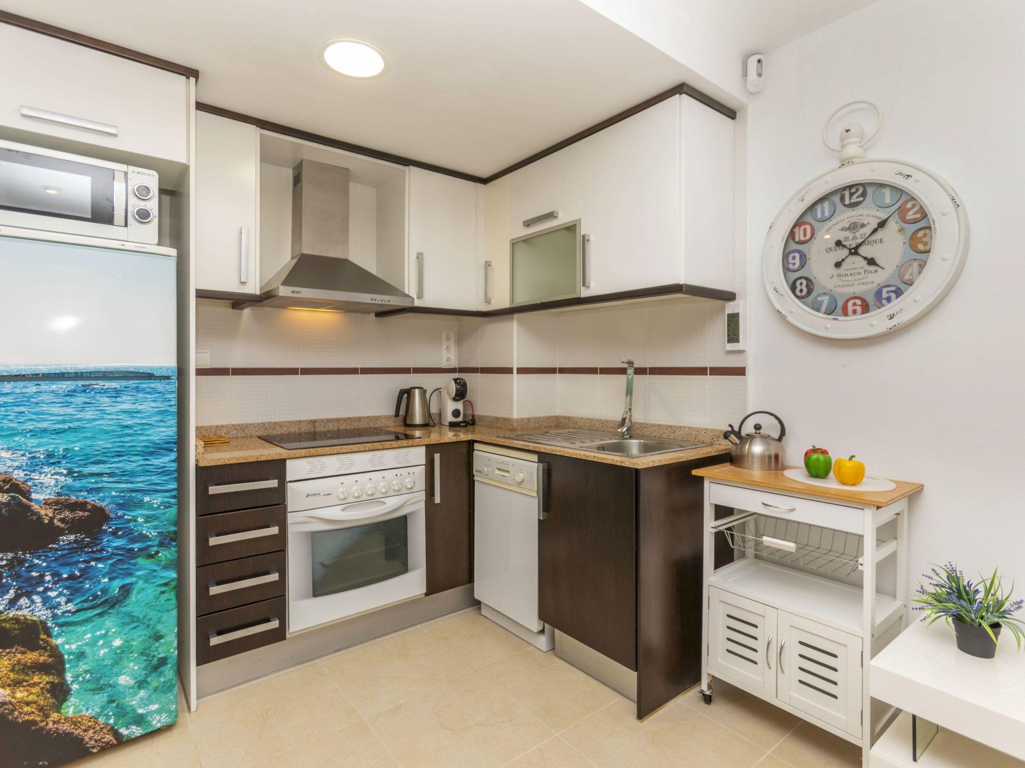 "Playa Coral II", 3-room apartment 60 m2. Bright, comfortable furnishings: living/dining room with digital TV, flat screen, air conditioning and forced-air heating. 1 room with 2 beds (90 cm, length 190 cm). 1 room with 1 french bed (135 cm, length 190 cm). Kitchen (oven, dishwasher, 4 induction hot plates, toaster, kettle, microwave, freezer, electric coffee machine). Shower/bidet/WC. Terrace. Terrace furniture. Facilities: washing machine, iron, hair dryer. Internet (WiFi, free). Parking space n 191 (roofed). Suitable for families. R0000000001