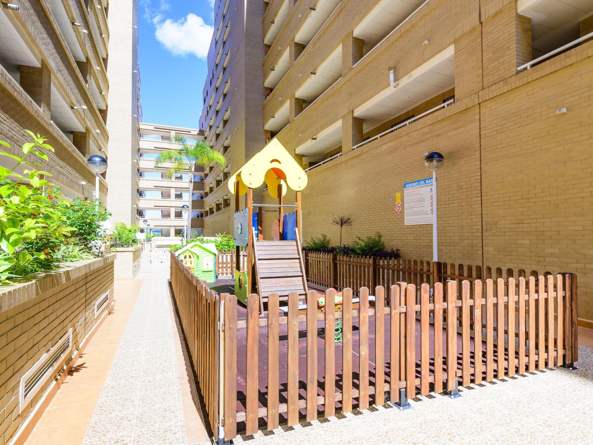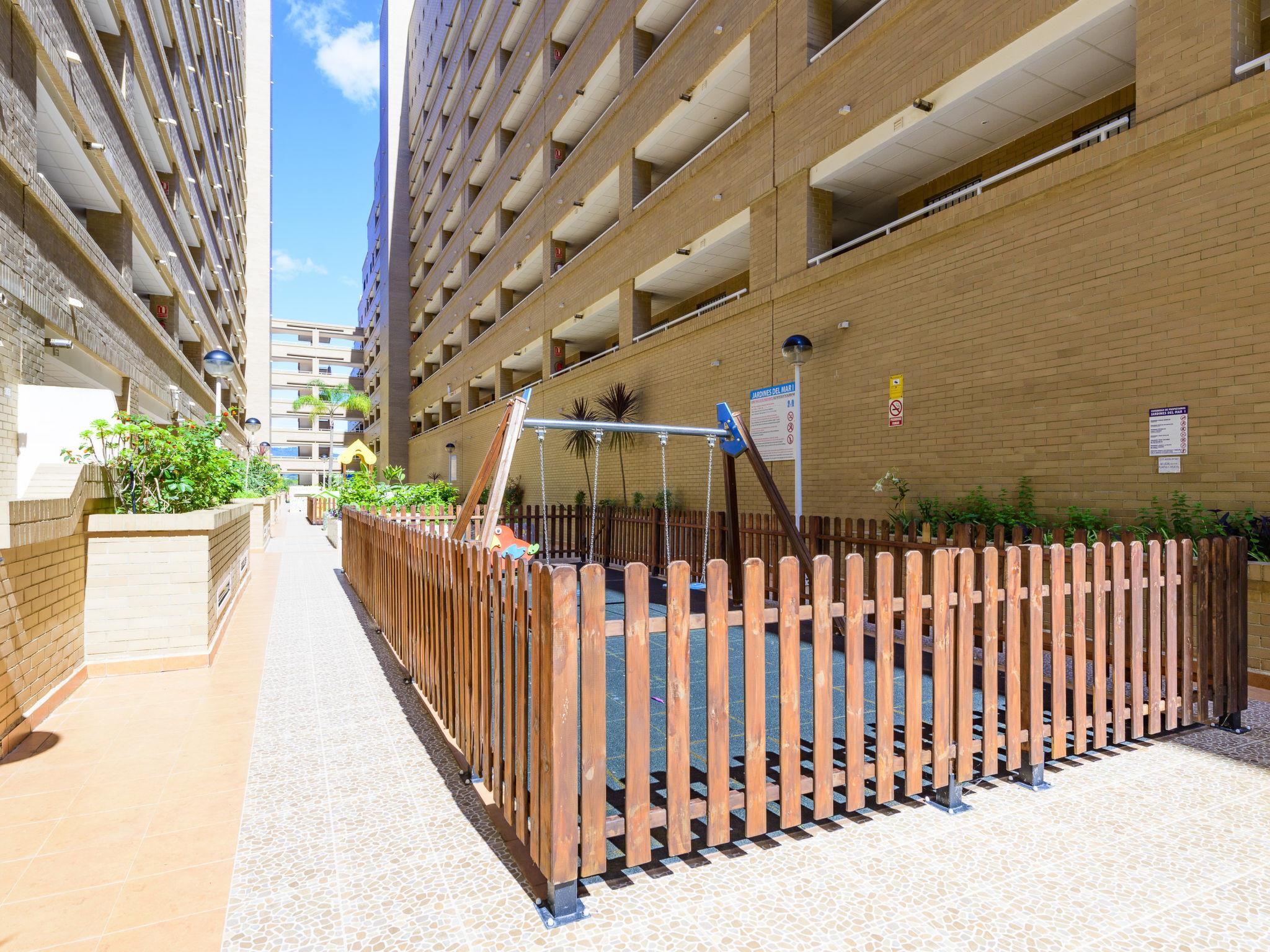 Jardines del Mar I: Child friendly, cosy residence "Jardines del Mar I". On the outskirts Oropesa del Mar, in the district Marina D'Or, in a busy, sunny position, 300 m from the sea, 300 m from the beach, on a main road. For shared use: swimming pool (20 x 10 m, depth 70 - 230 cm, seasonal availability: 01.May. - 01.Oct.). WC in the pool area, children's playground. In the house: lift. Parking at the house. Supermarket 1 km, restaurant 400 m, bus stop 2 km, railway station 4 km, sandy beach 400 m. Please note: suitable for families, suitable for seniors. Motorway 900 m from the property. Main road 300 m from the property. Railway line 3 km from the property. Nightclub/disco 300 m from the property.