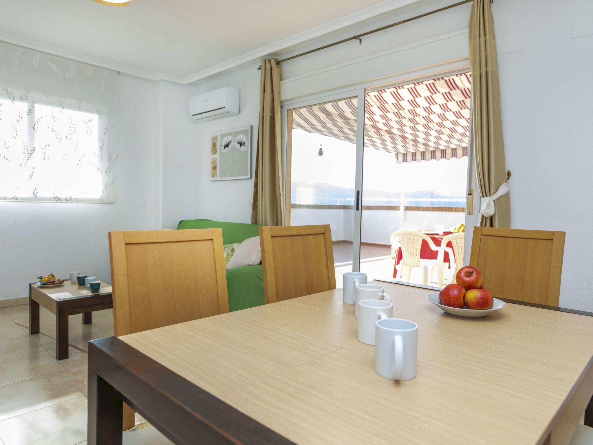 "JARDINES DEL MAR I", 3-room apartment 60 m2 on 6th floor. Object suitable for 4 adults + 1 child. Practical and comfortable furnishings: living/dining room with 1 sofabed, digital TV and air conditioning. Exit to the balcony. 1 room with 1 french bed (135 cm). 1 room with 2 beds (90 cm). Small kitchen (oven, dishwasher, 4 ceramic glass hob hotplates, toaster, kettle, microwave, electric coffee machine). Shower/bidet/WC. Boiler (80 litres). Small balcony 15 m2. Side view of the sea and the mountains. Facilities: washing machine, iron, hair dryer. Internet (WiFi, free). Parking space n 282. Suitable for families. CV-VUT0044356-CS