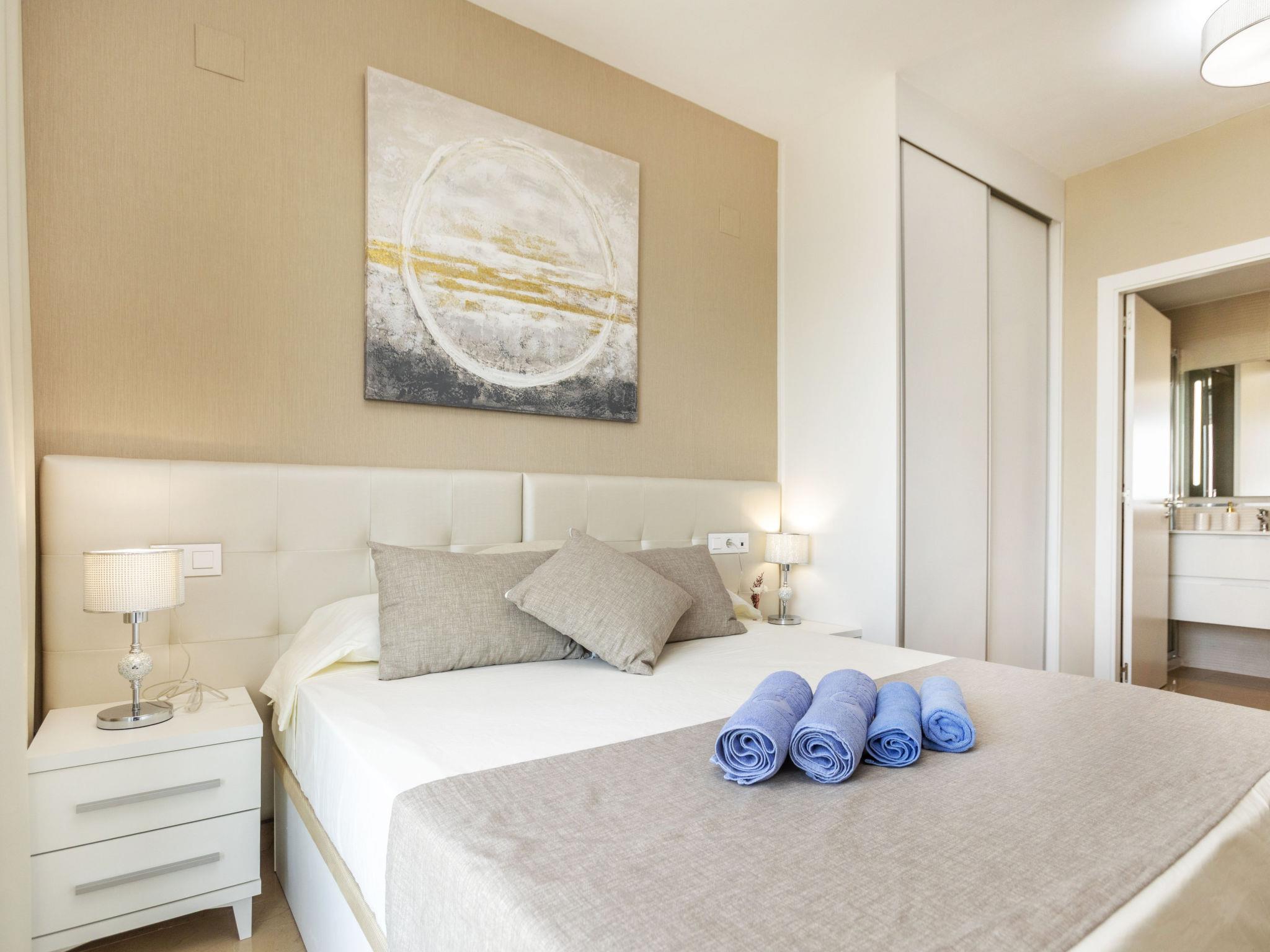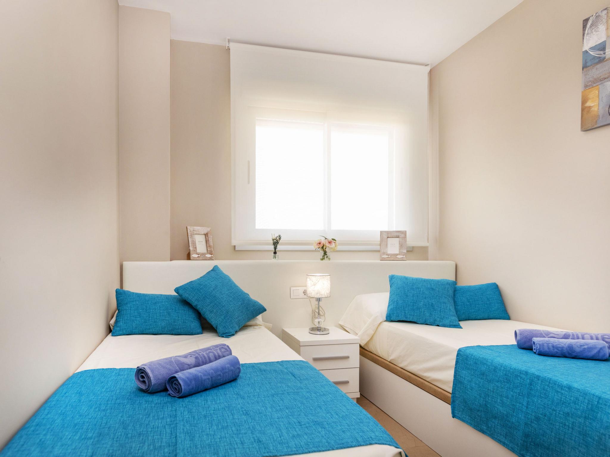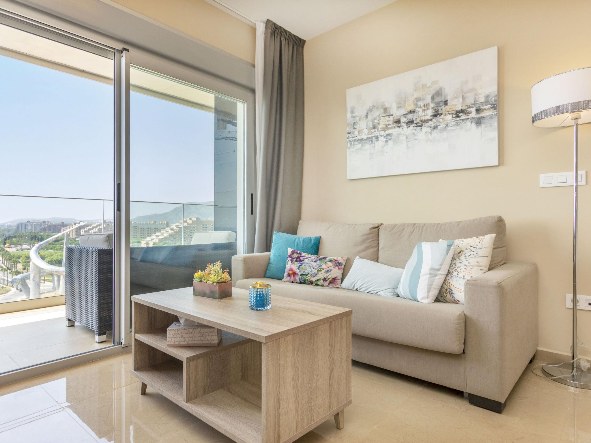 "Ciudad Jardin II", 3-room apartment 70 m2. Practical and comfortable furnishings: living/dining room with digital TV, air conditioning, forced-air heating and electric shutters. Exit to the terrace. 1 room with 1 french bed (150 cm, length 200 cm), shower/bidet/WC. 1 room with 2 beds (90 cm, length 200 cm). Kitchen (oven, dishwasher, 3 ceramic glass hob hotplates, toaster, kettle, microwave, freezer, electric coffee machine). Exit to the terrace. Shower/bidet/WC. Large terrace 19 m2. Terrace furniture. Side view of the sea and the resort. Facilities: washing machine, dryer, iron, hair dryer. Internet (WiFi, free). Parking space n 213 (roofed). Please note: non-smokers only. Please note: construction work is underway around the building. R000000001