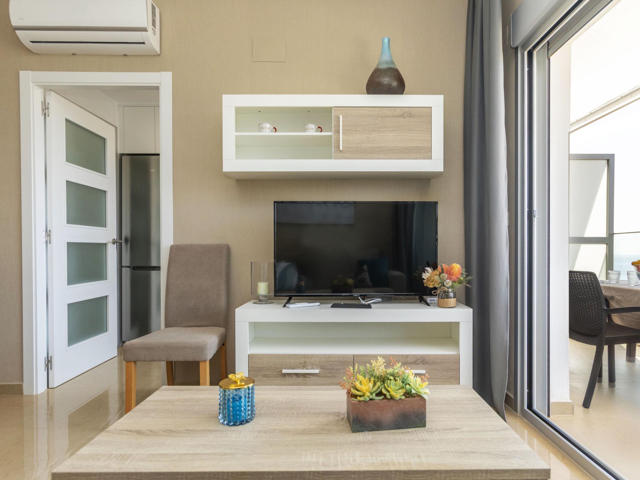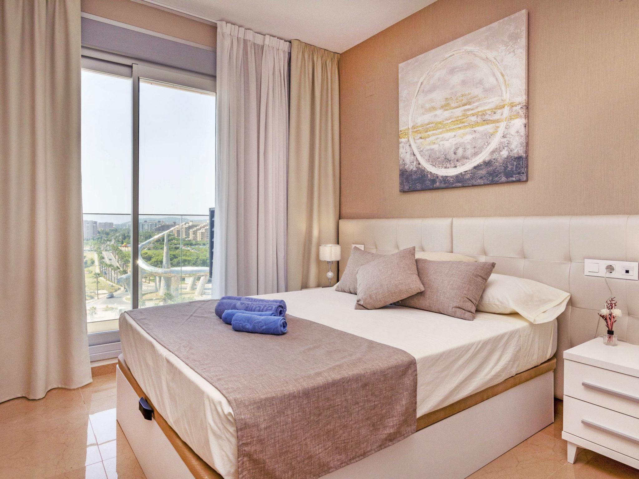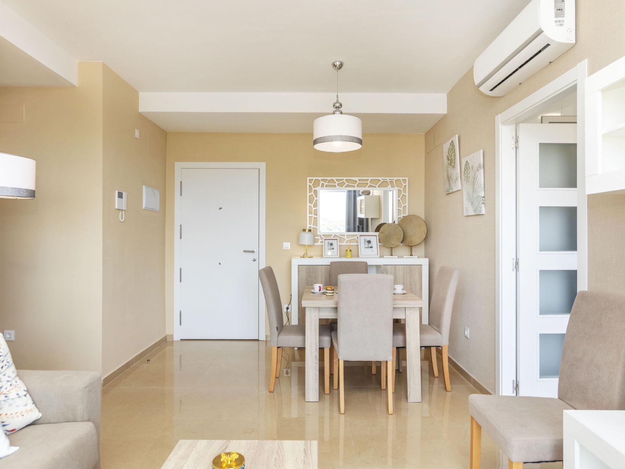 "Ciudad Jardin II", 3-room apartment 70 m2. Practical and comfortable furnishings: living/dining room with digital TV, air conditioning, forced-air heating and electric shutters. Exit to the terrace. 1 room with 1 french bed (150 cm, length 200 cm), shower/bidet/WC. 1 room with 2 beds (90 cm, length 200 cm). Kitchen (oven, dishwasher, 3 ceramic glass hob hotplates, toaster, kettle, microwave, freezer, electric coffee machine). Exit to the terrace. Shower/bidet/WC. Large terrace 19 m2. Terrace furniture. Side view of the sea and the resort. Facilities: washing machine, dryer, iron, hair dryer. Internet (WiFi, free). Parking space n 213 (roofed). Please note: non-smokers only. Please note: construction work is underway around the building. R000000001