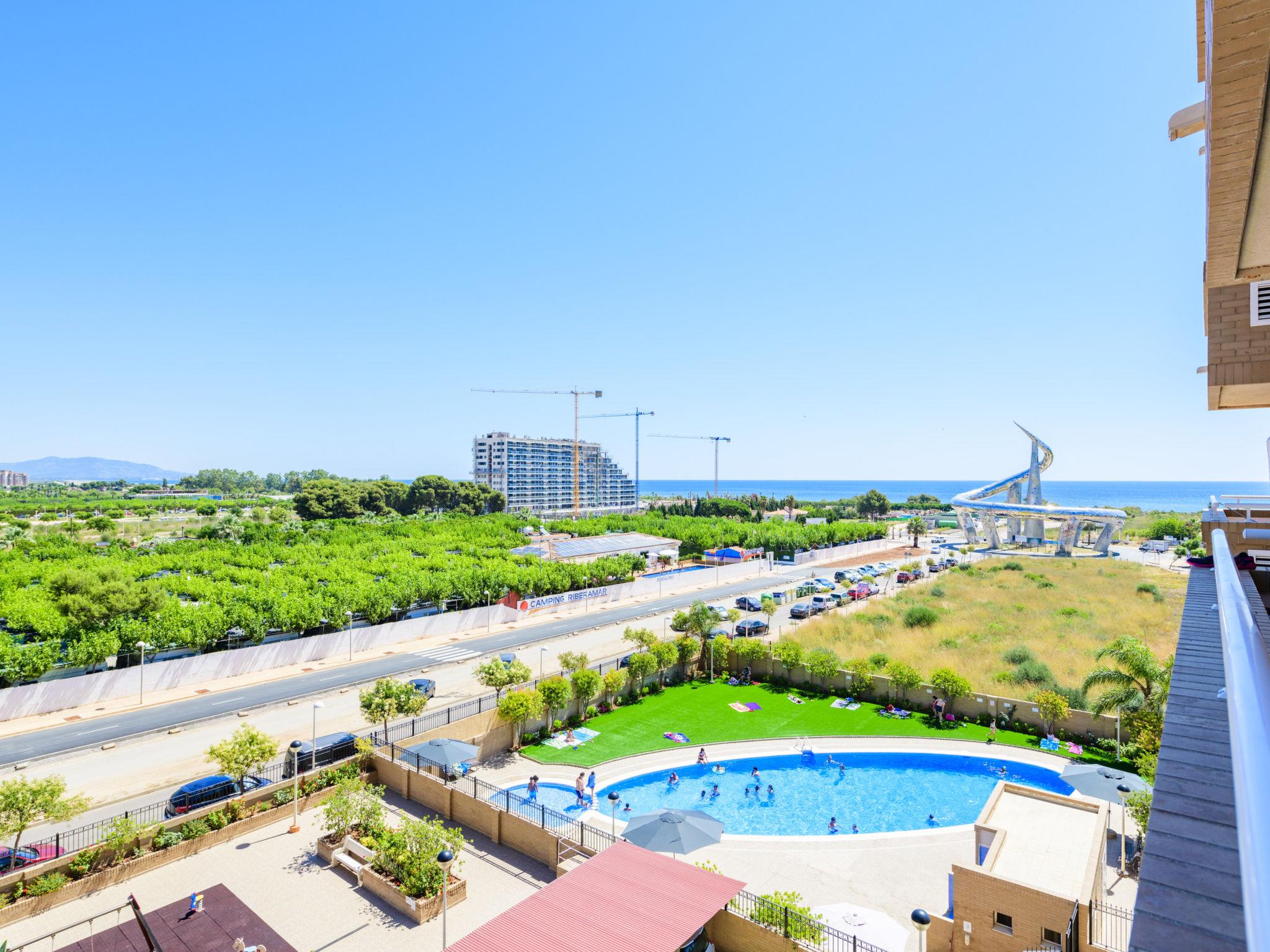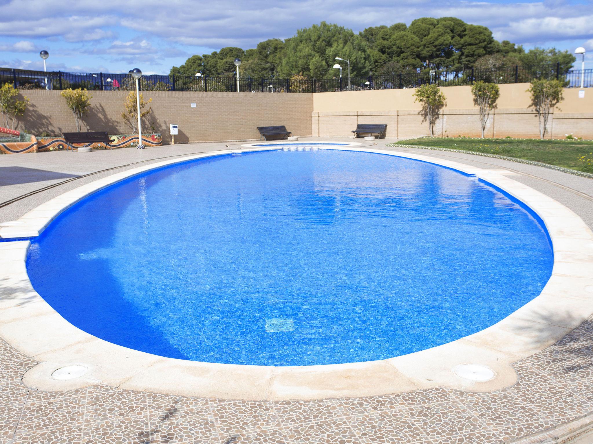 Marina D'or: Comfortable apartment block "Jardines del Mar III". On the outskirts, 3.5 km from the centre of Oropesa del Mar, in the district Marina D´or, in a busy, sunny position, 300 m from the sea, 300 m from the beach, on a main road. For shared use: property, garden, swimming pool round (20 x 10 m, depth 70 - 270 cm, seasonal availability: 01.Jun. - 15.Sep. pool opening hours: 10:00-14:00 and 16:00-20:00). Children's pool, outdoor shower, children's playground. In the house: lift. Communal covered parking. Supermarket, restaurant, bar, café 200 m, bus stop 1.2 km, railway station "Oropesa de Mar" 3 km, sandy beach 300 m. Sports harbour 6 km, golf course 22 km. Nearby attractions: Parque Acuatico 1 km. Groups of teenagers on request only. Please note: motorway 900 m from the property. Main road 300 m from the property. Railway line 300 m from the property. Nightclub/disco 300 m from the property. Additional accommodations can be booked. Property ref. ES9653.8 is situated on the same property. Neighbourhood highly sensitive to noise. Quietness and good behaviour expected.