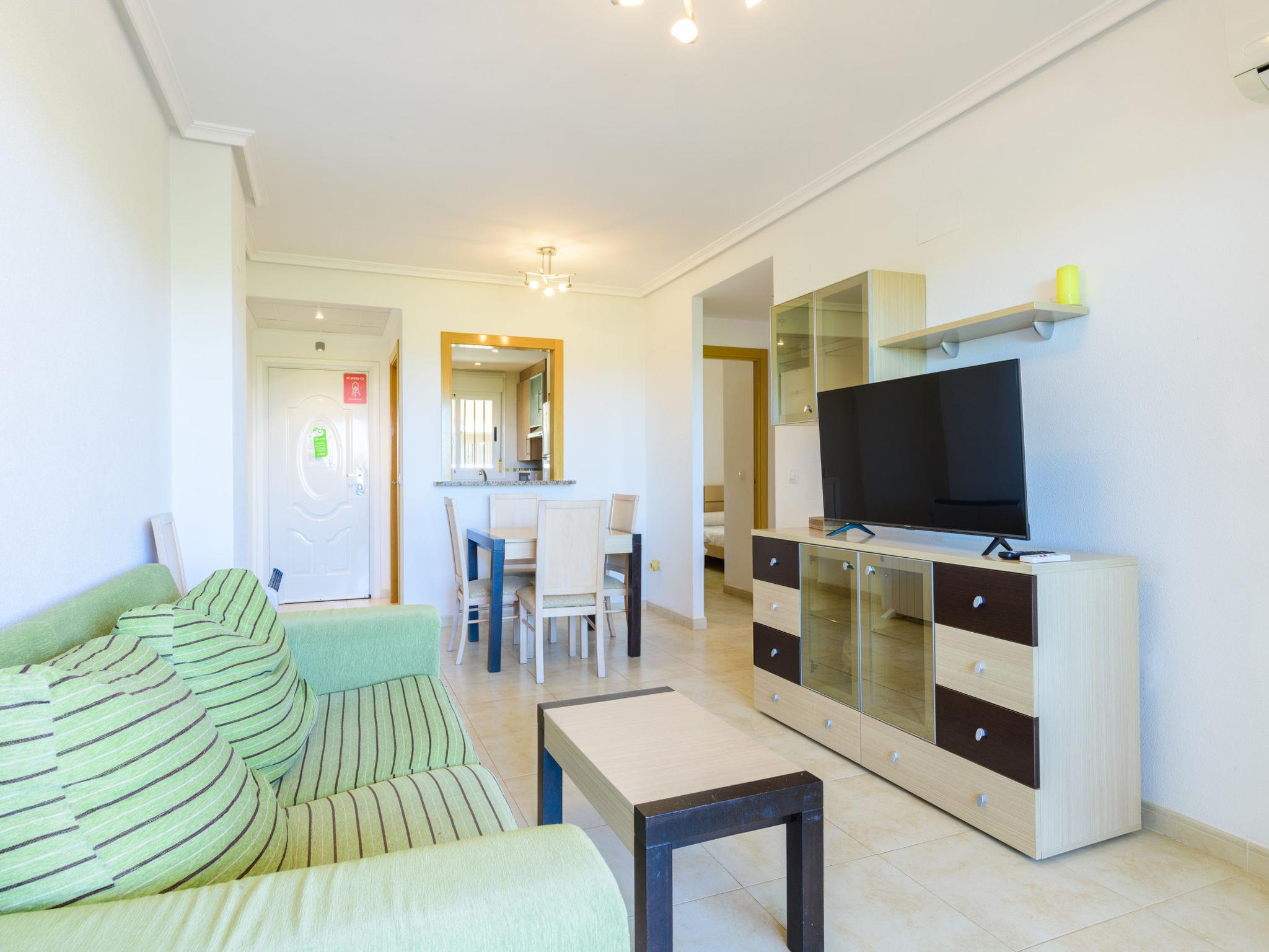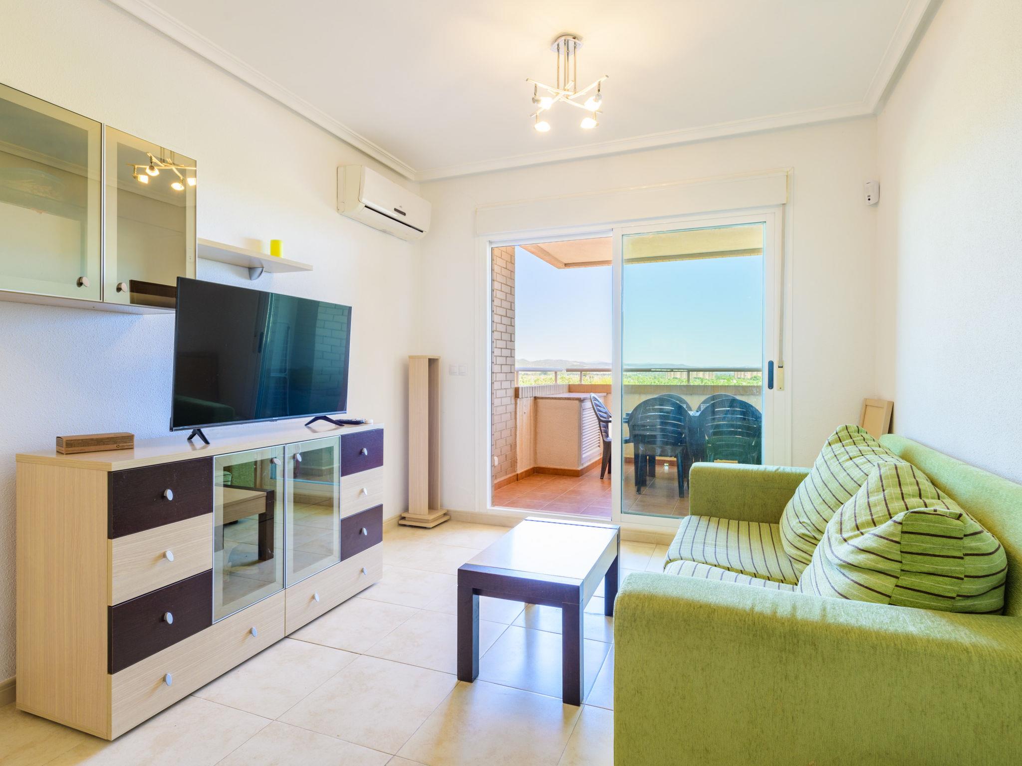 "Jardines del Mar III - Marina d'Or", 3-room apartment 50 m2 on 4th floor. Practical and comfortable furnishings: living/dining room with dining table, digital TV, flat screen, air conditioning and forced-air heating. Exit to the terrace. 1 room with 1 french bed (135 cm, length 190 cm). 1 room with 2 beds (90 cm, length 190 cm). Kitchen (oven, 4 ceramic glass hob hotplates, toaster, kettle, microwave, freezer). Shower/bidet/WC. Heating not available in all rooms. Terrace 12 m2. Terrace furniture. Side view of the sea. Facilities: washing machine, iron, baby cot for up to 2 year olds, hair dryer. Parking (roofed) at the house. Please note: non-smokers only. Maximum 1 pet/ dog allowed. Smart TV. VT-44651-CS // Reg. Nr.: ESFCTU00001202600067120500000000000000000VT-44651-CS6