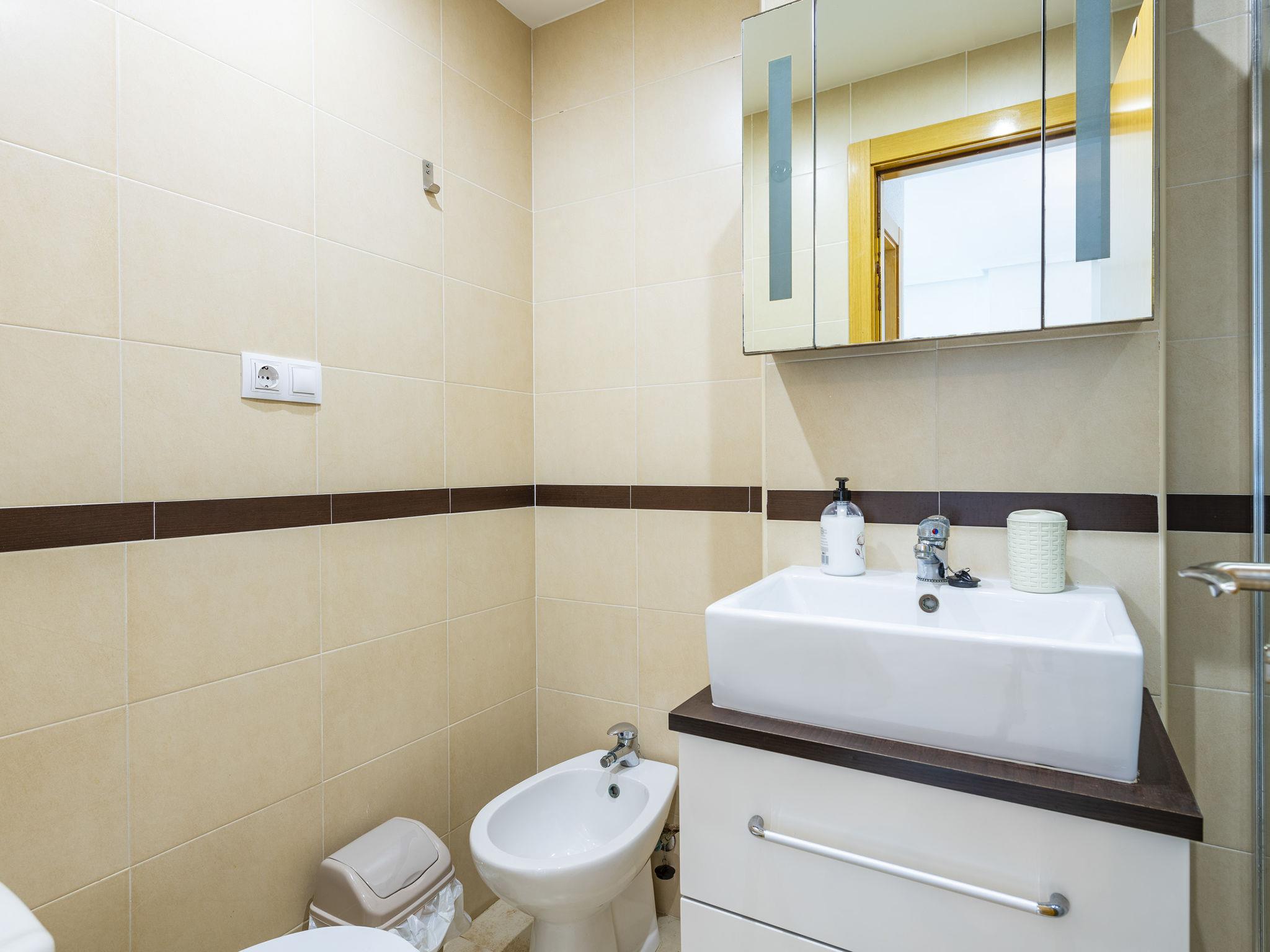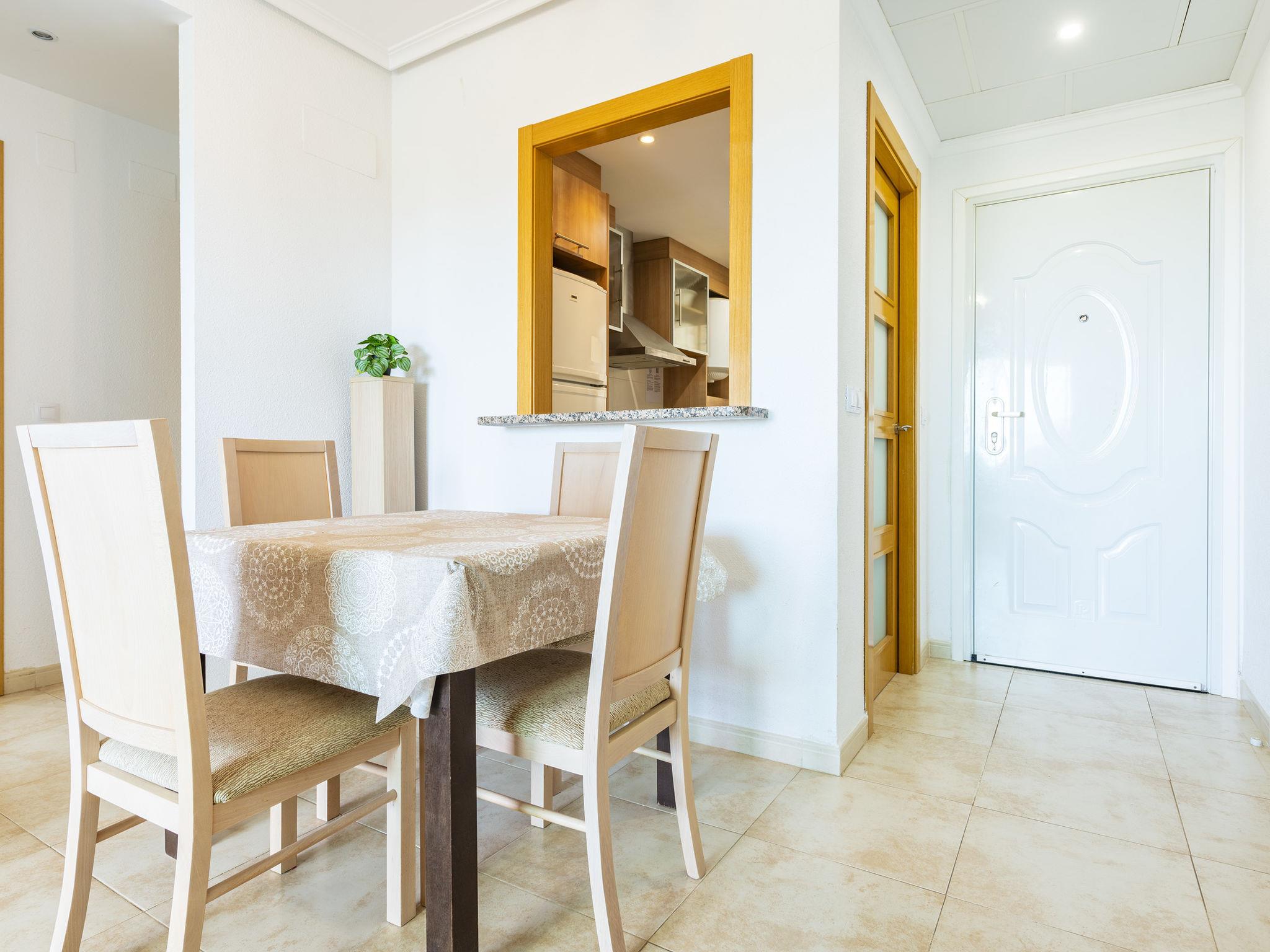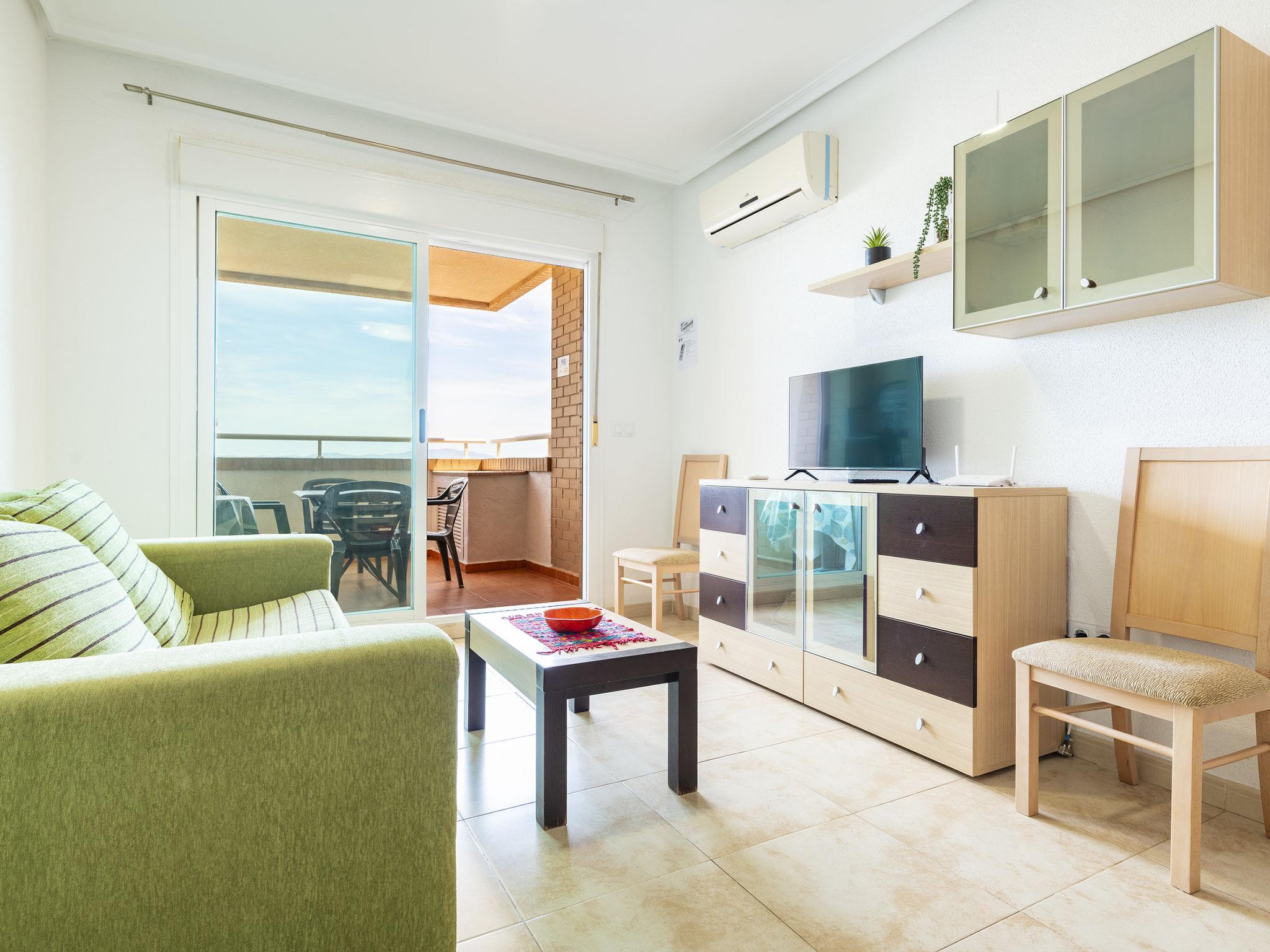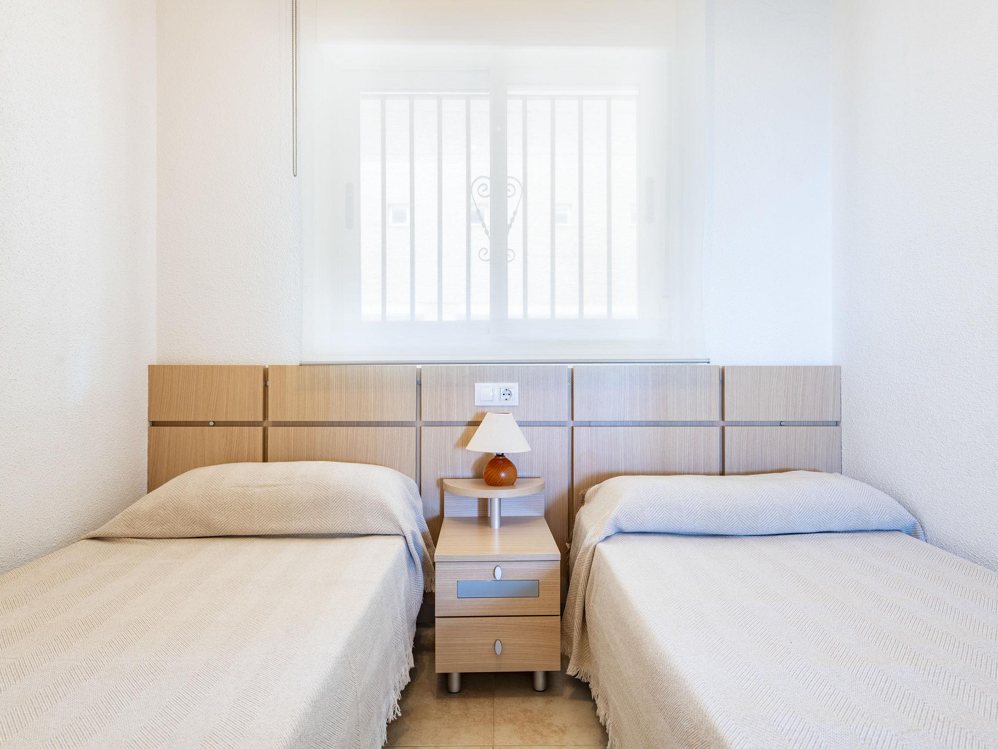 "Jardines del Mar III", 3-room apartment 50 m2 on 8th floor. Practical and comfortable furnishings: living/dining room with dining table, digital TV, flat screen, air conditioning and forced-air heating. Exit to the terrace. 1 room with 1 french bed (135 cm). 1 room with 2 beds (90 cm, length 190 cm). Kitchen (oven, dishwasher, 4 ceramic glass hob hotplates, toaster, kettle, microwave, freezer). Shower/bidet/WC. Heating not available in all rooms. Terrace 12 m2. Terrace furniture. Side view of the sea. Facilities: washing machine, iron, hair dryer. Internet (WiFi, free). Parking space n 300 (roofed) at the house. Please note: non-smokers only. VT-30717-CS // Reg. Nr.: ESFCTU00001202600067275200000000000000000VT-30717-CS2