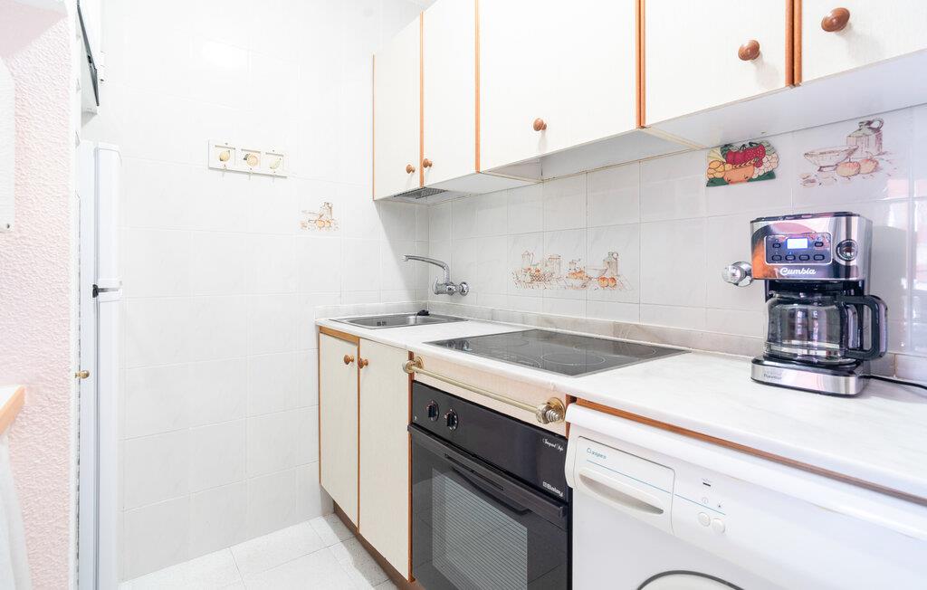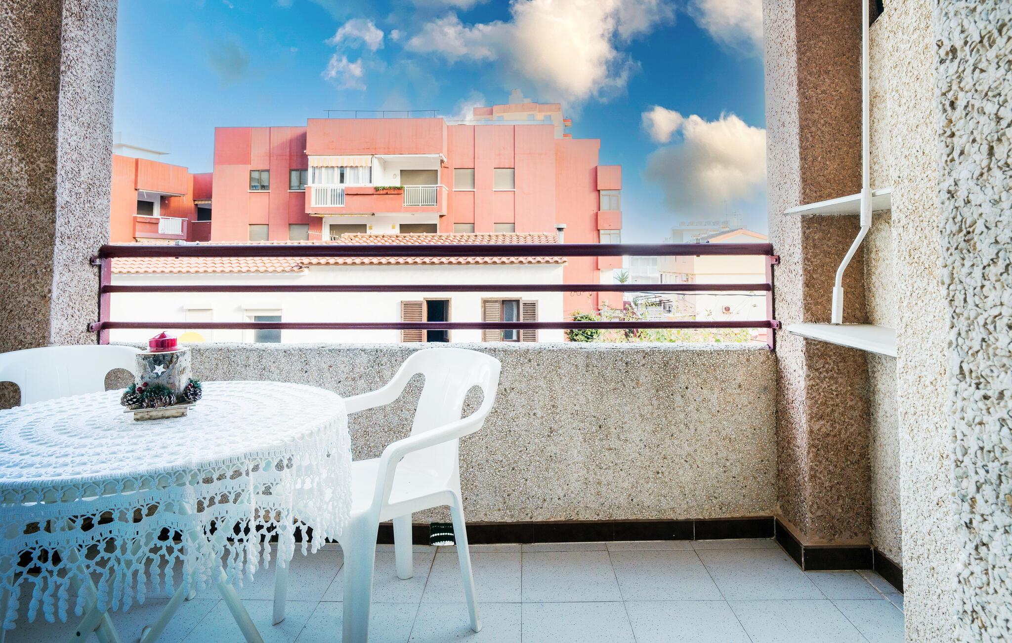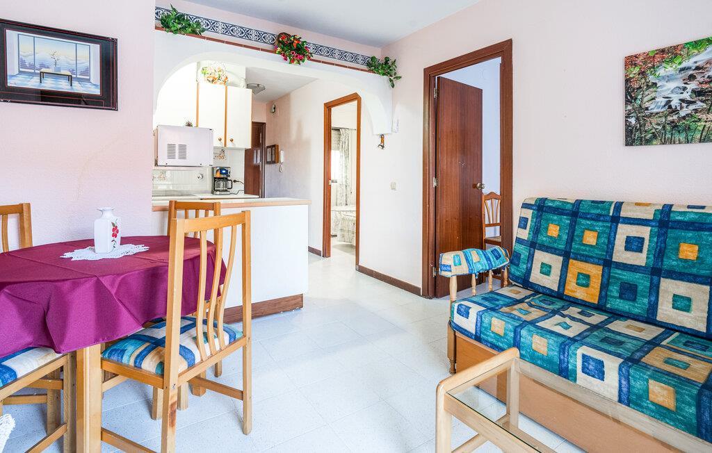 Læg hverdagen bag jer, og nyd en rolig ferie i jeres enkle ferielejlighed, der giver jer mulighed for at tilbringe en behagelig tid i en smuk kystregion. Opholdsstuen er lys og indbydende med en hyggelig sofa og et spisebord, hvor I kan nyde jeres måltider. Start dagen med en kop kaffe på altanen, og nyd den fredelige atmosfære samt udsigten over omgivelserne.