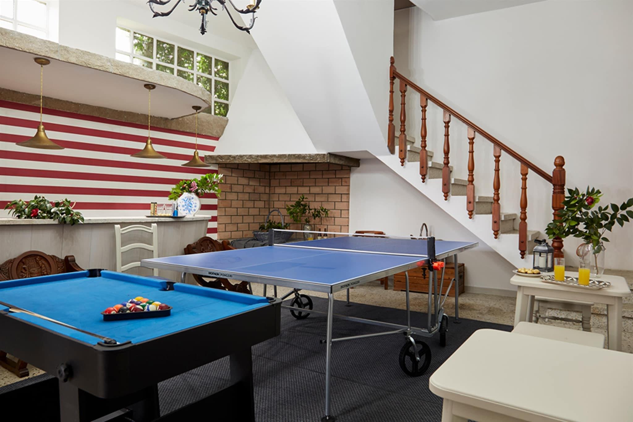 Luxury Singular Villa Rosa byder på en udendørs swimmingpool, frodige haver og en hyggelig bar, et idyllisk oase i Padrón, komplet med gratis WiFi og en fantastisk udsigt over bjergene. Dette rummelige landsted har plads til op til 10 gæster og har fem soveværelser, fire badeværelser og moderne faciliteter såsom sengelinned, håndklæder, et fladskærms-tv og et fuldt udstyret køkken. Den indbydende terrasse byder på malerisk udsigt over byen, hvilket gør det til det perfekte sted at slappe af. Gæsterne på Luxury Singular Villa Rosa kan nyde en række aktiviteter, herunder bordtennis, vandreture, fiskeri, kanosejlads og cykling i det omkringliggende område. Dets mikroklima giver mulighed for fornøjelige ferier året rundt, uanset om det er forår, sommer, efterår eller vinter. Det udsøgt designede interiør og haver skaber en unik atmosfære, der sikrer gæsterne føler, at de er på et helt specielt sted. Med omhyggelig sans for detaljer inviterer den ekspansive 2000 meter lange have, smukt dekorerede terrasser og privat pool til afslapning under solen. Villaens layout fremmer både sociale interaktioner og personlige tilbagetrækninger. Det store køkken forbindes problemfrit med et af de to rummelige opholdsområder, som har komfortable sofaer og et dedikeret spillelokale. Hvert værelse er kendetegnet ved dets skønhed og originalitet, hvilket sikrer, at gæster oplever en følelse af privilegium og ro under hele deres ophold. Hos Luxury Singular Villa Rosa skaber man uforglemmelige eller uforglemmelige oplevelser for hver gæst. at nyde de fredfyldte omgivelser og unikke charme ved denne enestående destination.