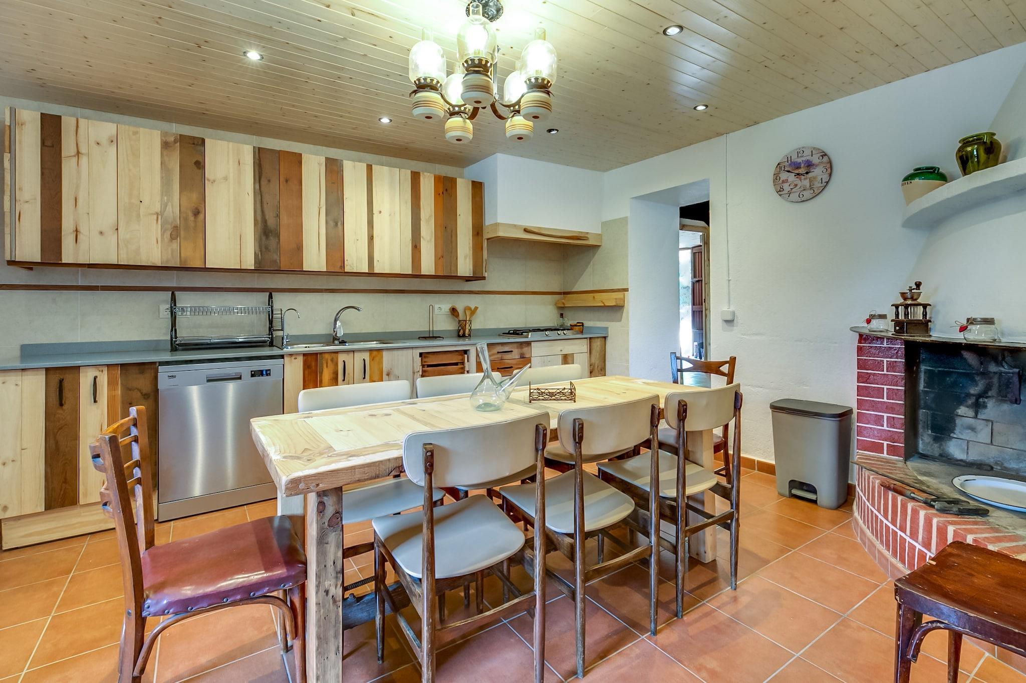 Denne charmerende landlige villa nær Palafolls er perfekt til store grupper med plads til op til 18 gæster. Den er nyrenoveret og fuld af karakter. Den har håndlavede træmøbler, fem soveværelser, en privat saltvandspool, en fodboldbane, et bordtennisområde og to udendørs spiseområder med en stengrill. Den ligger på en 2.500 m² indhegnet grund og tilbyder fred, privatliv og sikkerhed for familier med børn. Indenfor kan du nyde en hyggelig stue med pejs, et fuldt udstyret køkken, et legerum til børnene, centralvarme, ventilatorer, Wi-Fi og privat parkering. Beliggenheden er ideel til at udforske både Costa Brava og Barcelonas nordkyst. Populære strande som Blanes, Tossa de Mar og Malgrat de Mar ligger kun en kort køretur væk. Palafolls Slot, outletbutikker og vandlandet Marineland ligger alle i nærheden. Forår til efterår er det bedste tidspunkt at nyde de udendørs faciliteter, og villaen er let tilgængelig - kun 45 minutter fra Barcelona og 30 minutter fra Girona. Gæster har eksklusiv adgang til huset. Kæledyr er velkomne mod et mindre gebyr, og der kræves ro fra kl. 22.00 til 08.00. En bil er nødvendig på grund af den landlige beliggenhed. Indtjekning finder sted i det nærliggende Lloret de Mar, med muligheder for sen ankomst. Der opkræves en turistskat, og gæsterne forventes at efterlade huset ryddeligt. For en afslappet, naturfyldt ferie nær kysten tilbyder denne villa alt, hvad der er nødvendigt for et mindeværdigt ophold.
