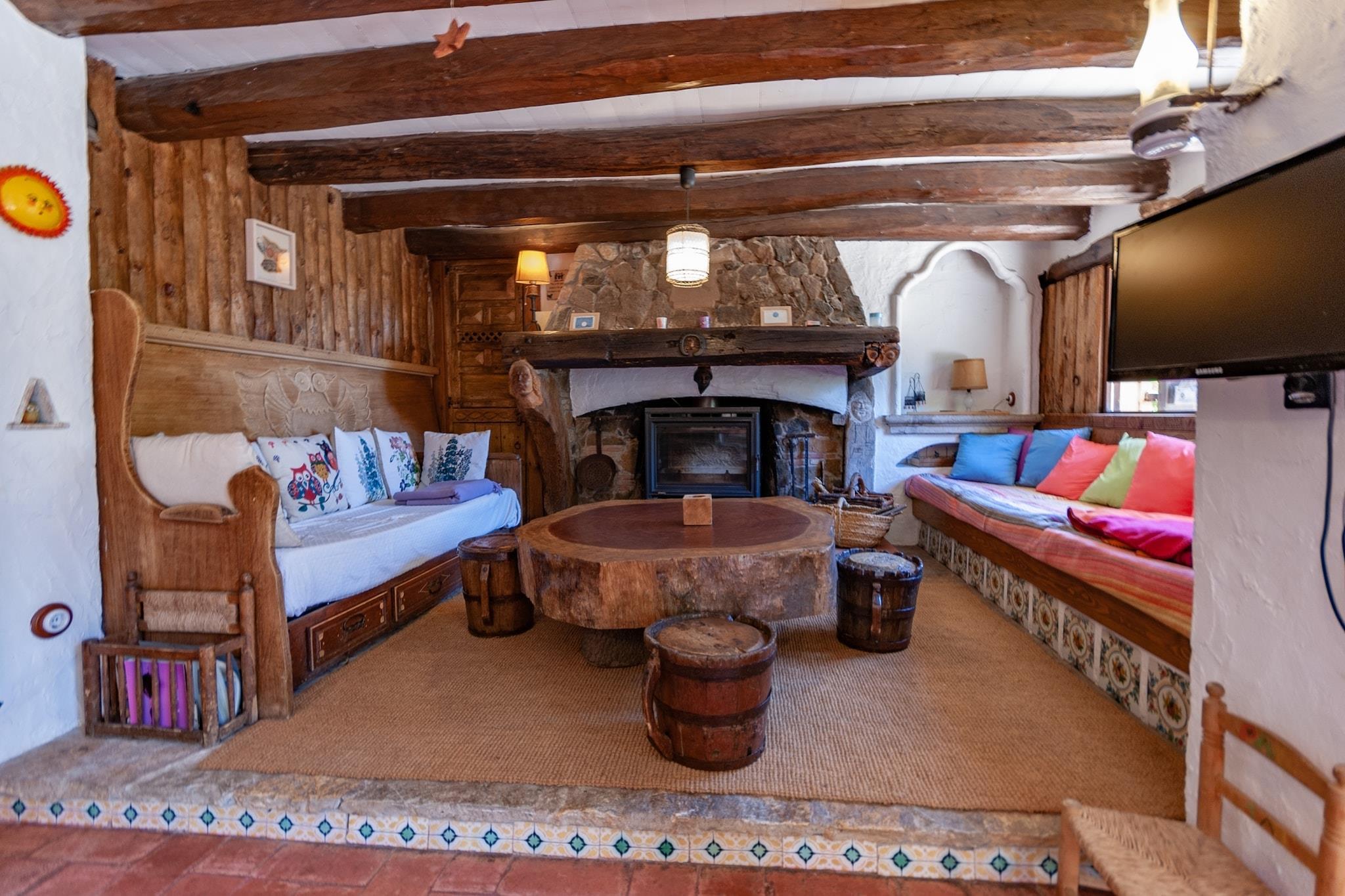 Stueetage: (åbent køkken(komfur, ovn, mikrobølgeovn, opvaskemaskine , køle-fryseskab), stue / spisestue(pejs), soveværelse(2x enkeltseng, havedøre), badeværelse(badekar med bruser, håndvask, toilet, vaskemaskine)) Loft: (soveværelse(halvandenmandsseng, havedøre, terrasse(privat)), soveværelse(enkeltseng), badeværelse(bruser, håndvask, toilet)) Fjernsyn, varme(elektrisk), klimaanlæg, terrasse(privat), have(privat, indhegnet), legeredskaber, bordtennisbord