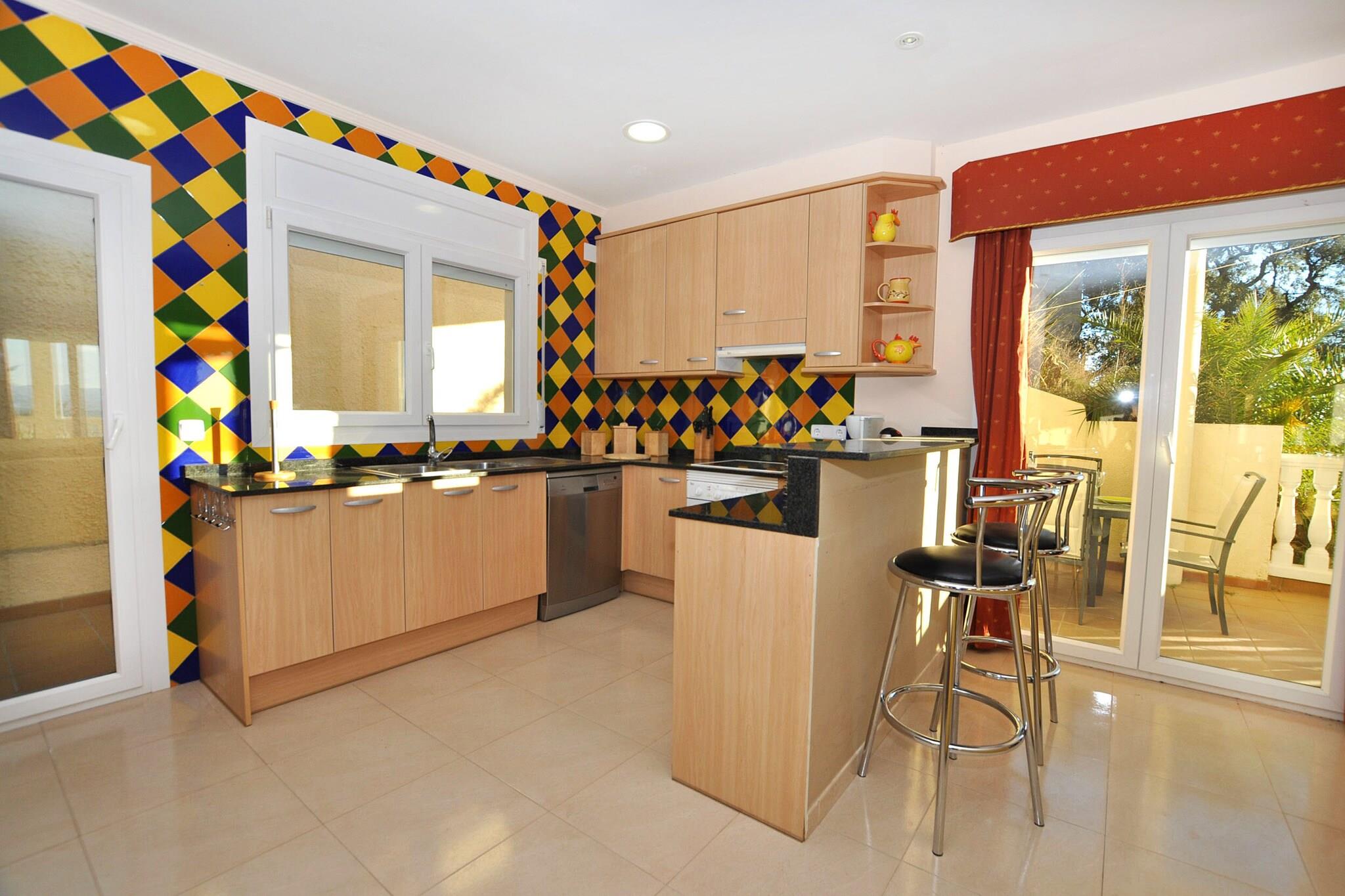 Oplev din perfekte ferie i dette charmerende feriehus beliggende i den maleriske by Empuriabrava. Dette rummelige tilflugtssted kan prale af en række faciliteter og er ideelt for familier eller grupper, der søger afslapning og eventyr på den fantastiske Costa Brava. Indvendigt har det veludstyrede køkken moderne apparater, herunder en keramisk kogeplade, mikroovn, opvaskemaskine og endda en juicer til friske morgensmoothies. Den indbydende stue/spisestue byder på en komfortabel dobbelt sovesofa og et satellit-tv, perfekt til hyggelige aftener sammen. Træk dig tilbage til et af de omhyggeligt designede soveværelser efter en lang dag med udforskning. Med to soveværelser med dobbeltsenge og et tredje værelse med to enkeltsenge, er der masser af plads til, at alle kan slappe af. Hjemmet har også tre badeværelser, hvilket sikrer bekvemmelighed for alle gæster. Træd udenfor til din private oase, hvor en frodig have, boblende spa og dedikeret grillplads skaber den ultimative udendørsoplevelse. Tilbring den solrige private swimmingpool med at slappe af og nyde den solrige private eftermiddag ved at slappe af under din egen pool. ekspansiv terrasse. Beliggende kun få øjeblikke fra de pulserende strande og charmerende kanaler, som Empuriabrava er kendt for, lover dette feriehus et mindeværdigt ophold fyldt med solbeskinnet sjov og afslapning. Med centralvarme og aircondition vil du være komfortabel året rundt. Book din flugt til dette fantastiske feriehus!
