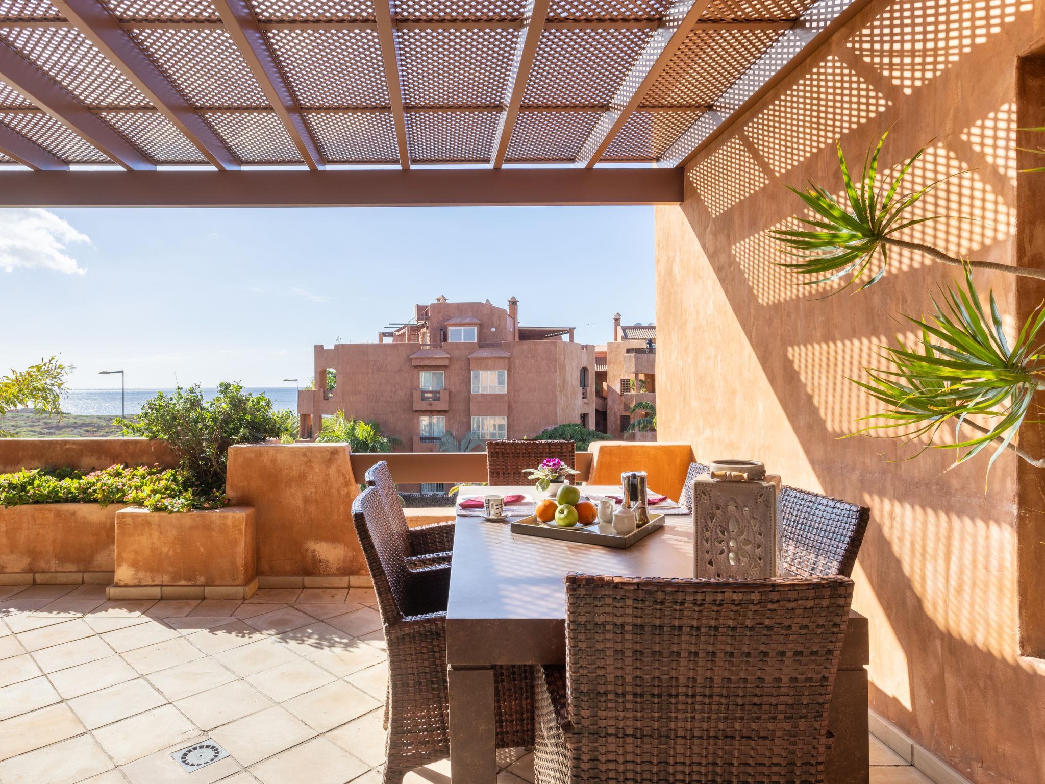 Modern, cosy, comfortable apartment block "Duplex Bencomo", 2 storeys, built in 2006. In the resort, in a quiet, sunny position, 200 m from the sea, 200 m from the beach. For shared use: beautiful, well-kept terraced garden, 3 swimming pools heated (depth 120 - 160 cm, seasonal availability: 01.Jan. - 31.Dec.). Shower/WC in the pool area, children's pool. In the house: lift. Roofed, parking (for 2 cars). Supermarket, restaurant, bus stop 300 m, shingle beach 200 m. Guarded residence.
