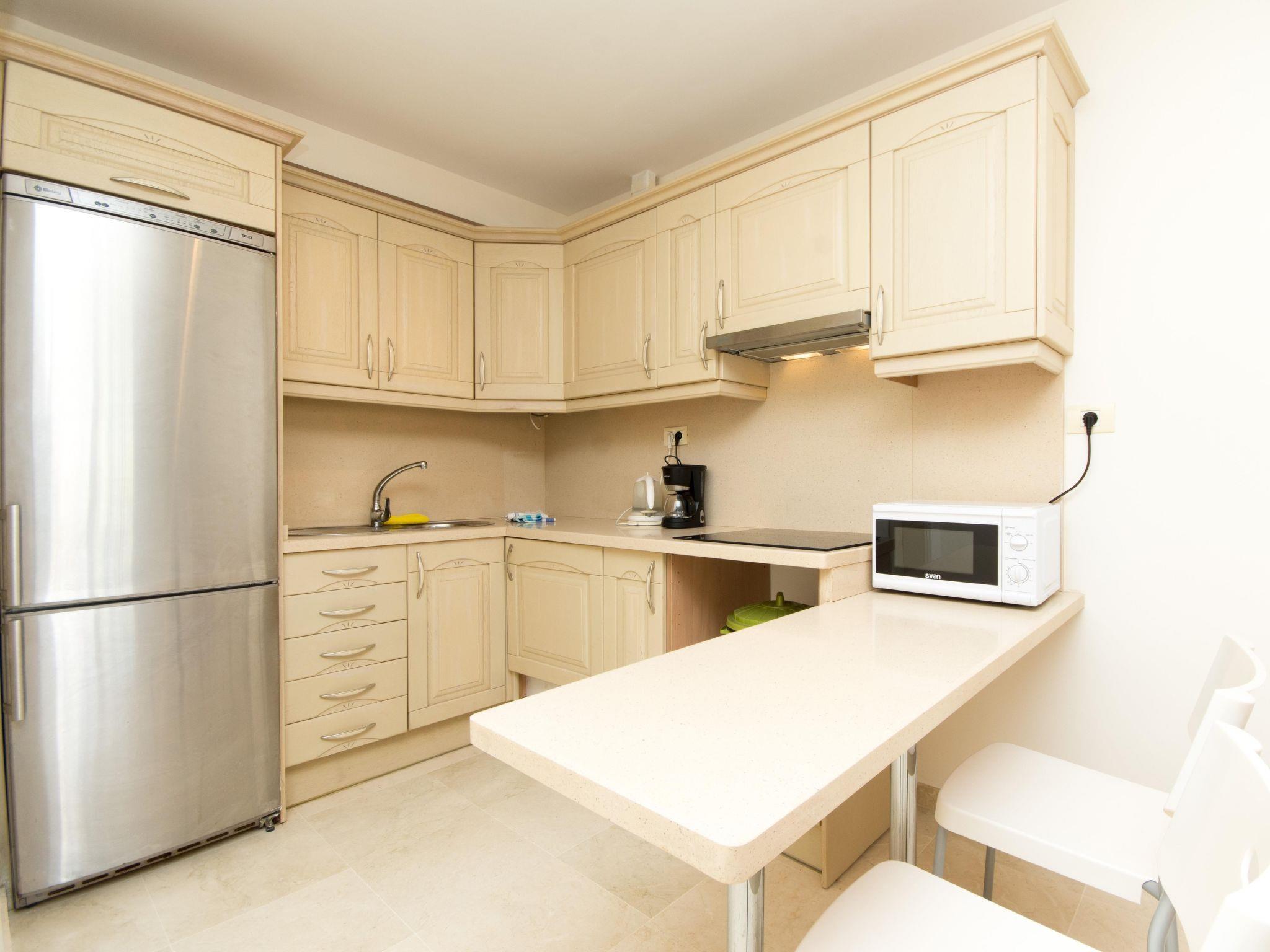 2-room apartment 60 m2 on 3rd floor. Practical furnishings: living/dining room with satellite TV. Exit to the terrace. 1 room with 3 beds (90 cm, length 190 cm). Open kitchen (4 ceramic glass hob hotplates, toaster, kettle, microwave, electric coffee machine). Bath/WC. Terrace. Terrace furniture. Facilities: washing machine, iron, children's high chair, baby cot, hair dryer. Internet (WiFi, free). Please note: non-smokers only. CTCD/19543/2019 // Reg. Nr.: ESFCTU0000380160005921580000000000000VV-38-4-00875260