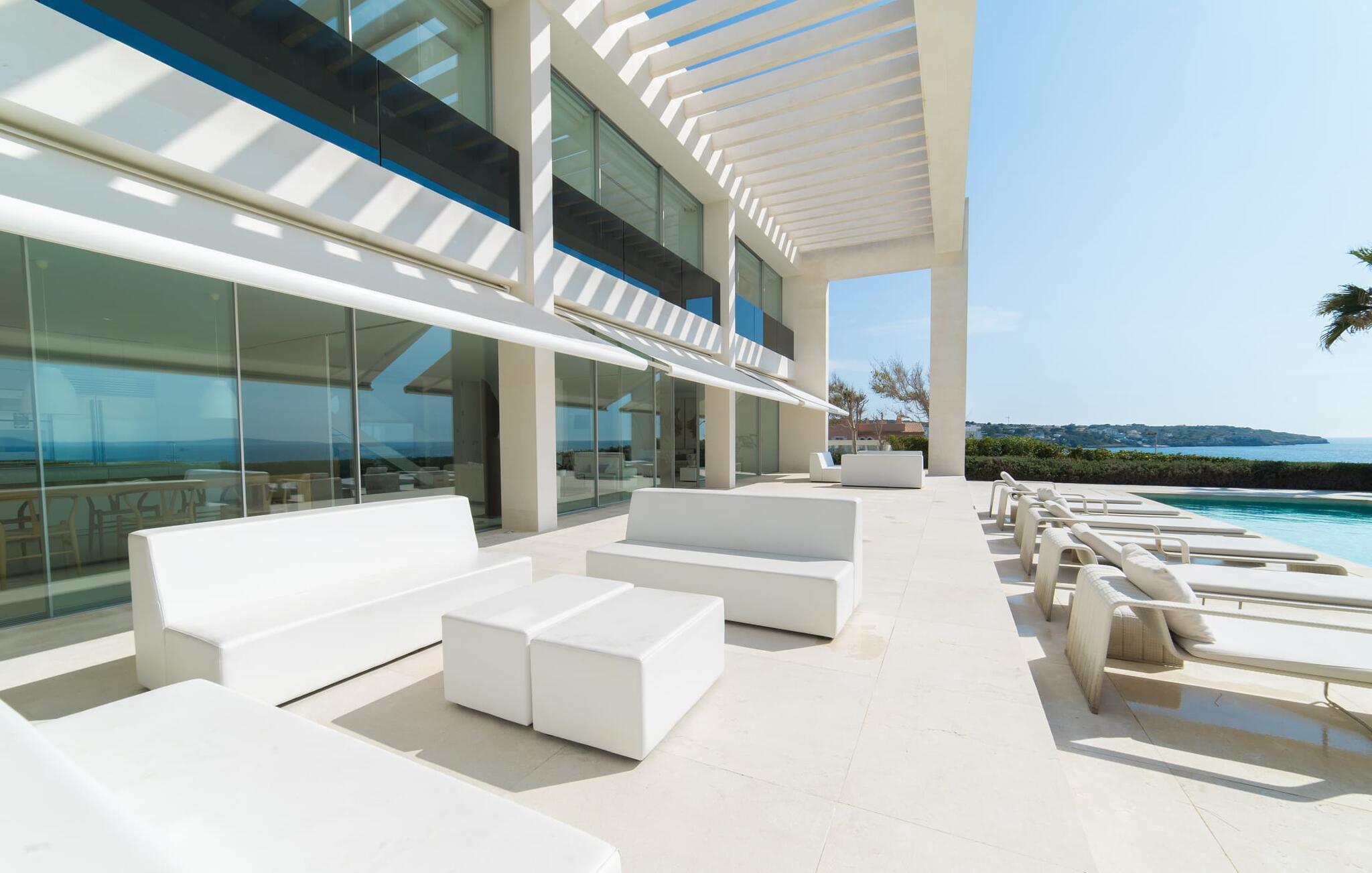 Leder du efter en ekstraordinær drømmevilla, der opfylder de højeste krav? Så bør du læse videre, for dette luksuriøse feriehus har alt, hvad du behøver: Et ultramoderne, åbent boligkoncept, der er uden sidestykke, er blevet til på den 900 m² store grund. Den store terrasse med komfortable liggestole tilbyder uforstyrret panoramaudsigt over det åbne hav. Det store, skrånende bassin er velegnet til daglig træning samt en forfriskende svømmetur ind imellem. Poolen kan selvfølgelig oplyses om aftenen, hvilket skaber en særlig stilfuld atmosfære til dit private middagsselskab. I det overdækkede terrasseområde kan du slappe af under de hvide markiser på hyggelige udendørs lounger. 100% privatliv er givet her: ejendommen til villaen "Palma Bay Frontline" er beskyttet mod udsigt udefra. Et lyst, åbent boligkoncept venter dig i den lyse boligareal i den 500 m² store villa: den store panoramaglasfront skaber en næsten sømløs overgang til terrassen. Slap af på komfortable loungesofaer og oplev de spektakulære solnedgange over det vestlige Middelhav. Hele huset er naturligvis fuldt klimatiseret, så du vil ikke svede selv i varme temperaturer. Et stort spisebord i træ danner overgangen til det ultramoderne, fuldt udstyrede køkken med en praktisk kogeø. Der er også et gæstetoilet i stueetagen af dit sommerhus. På øverste etage er der tre indbydende soveværelser med luksuriøst udstyrede en-suite badeværelser. Et af værelserne har walk-in-closet. Fra værelserne på denne etage kan du nyde en fantastisk udsigt over det åbne hav og den brede horisont. Et andet opholds- og soveområde med eget badeværelse samt legerum til de små gæster er placeret i husets kælder. Du kan parkere dine biler sikkert og ude af solen i den private underjordiske parkeringsplads. En ejendom af denne kaliber har naturligvis også brug for en eksklusiv beliggenhed: Den lille, ædle villabebyggelse Son Veri Nou ligger på Mallorcas populære sydvestkyst, men næppe nogen pakkerejser finder vej hertil: de vil sætte pris på det privatliv, som dette retræte tilbyder . Ikke desto mindre kan du takket være de gode transportforbindelser hurtigt nå den livlige hovedstad Palma, festbyen S'Arenal eller det landlige Llucmajor med dens rustikke charme. Den spektakulære udsigt over Palma-bugten og det glitrende hav er en sand fornøjelse: Takket være nærheden til den lokale lystbådehavn kan du spotte en eller to utrolige yachter hist og her. I Son Veri Nou finder du en lille, men hyggelig tennis- og squashklub; De smukke golfbaner Son Antem og Maioris er også kun et stenkast væk. Vi anbefaler også stærkt en vandretur til det imponerende Fort del Cap Enderrocat, som blev bygget i 1898 for at overvåge kysten i det 19. århundrede og nu er et populært udflugtsmål. Denne eksklusive luksusejendom er beliggende i det lille, eksklusive boligkompleks Son Veri Nou ved den fine sandbugt i Palma. Nyd en unik, uforstyrret udsigt over havet og tilbring din drømmeferie i en ekstraordinær villa, der kombinerer avantgarde design med det højeste niveau af komfort. Der er en fantastisk tennis- og squashklub i byen, mens du kan opleve maritim flair i den nærliggende marina. To golfbaner er kun få minutter væk i bil. Dette er et Fincallorca feriehus.