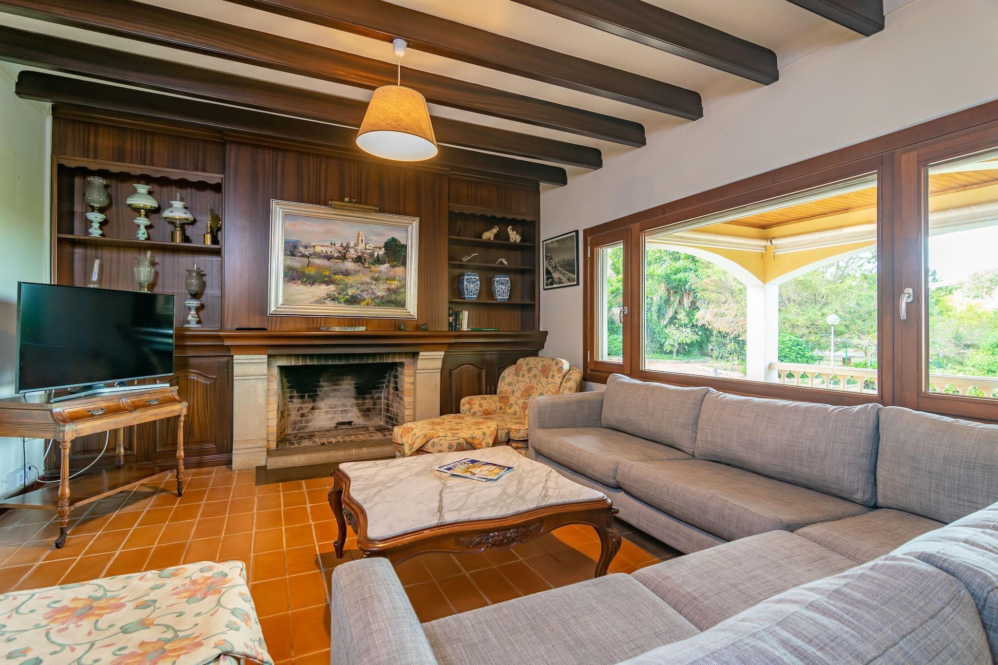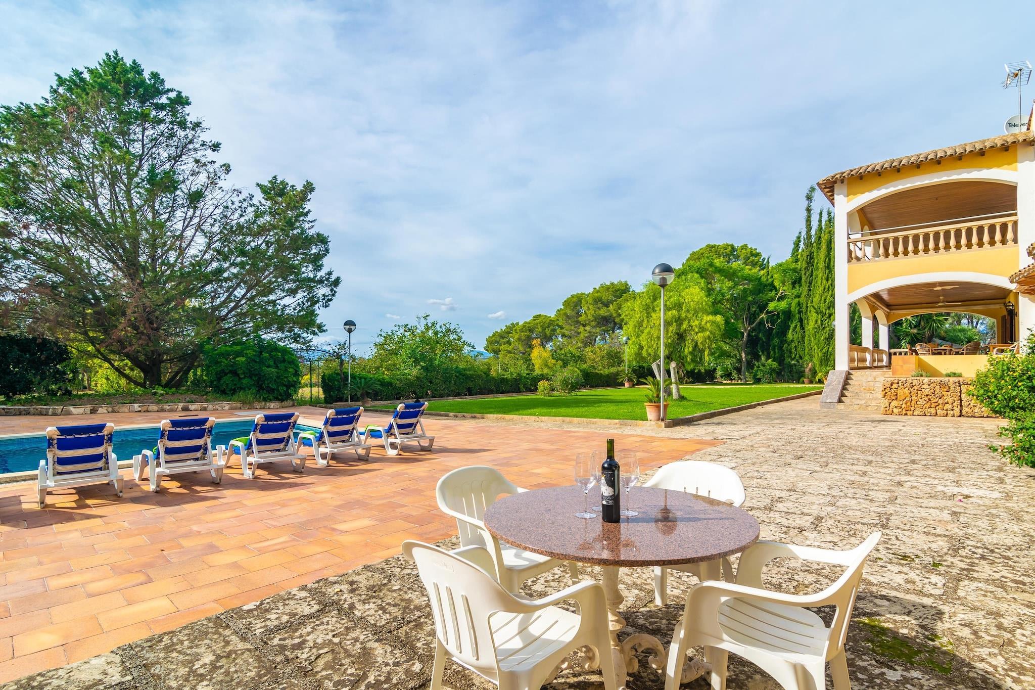 Denne imponerende herregård tilbyder et varmt, indbydende miljø for op til 12 gæster fordelt på seks soveværelser, hver udstyret med aircondition og rigelig opbevaring. De ekspansive opholdsrum inkluderer en stor stue-spisestue med pejs, tv og adgang til en af ??verandaerne, plus et andet opholdsområde med billard. De to fuldt udstyrede køkkener gør madlavning let, mens flere badeværelser - inklusive tre en-suiter - sikrer komfort og privatliv. Børnesenge og høje stole er tilgængelige efter anmodning, og central olievarme holder hjemmet hyggeligt året rundt. Træd udenfor for at opdage en privat klor-swimmingpool med en dedikeret børneafdeling, omgivet af ni liggestole og store græsklædte områder perfekt til leg eller solbadning. Flere terrasser og verandaer, en grill og havemøbler inviterer til udendørs spisning. Sportsentusiaster kan nyde paddle-tennisbanen, basketballbanen og bordtennis, som alle er tilgængelige på ejendommen. En rolig sø og frodige haver skaber fredfyldte rammer for afslapning og sjov for alle aldre. ' Villaen er beliggende kun 5,9 km fra Sant Jordi og tæt på Son Gual golfbanen og har gode forbindelser via Palma-Manacor motorvejen. Lokale faciliteter, herunder restauranter, barer og supermarkeder, er inden for rækkevidde, mens Palma by – med sin ikoniske katedral La Seu og charmerende gamle bydel – er perfekt til dagsture. Strandene i Cala Blava, Can Pastilla og Es Trenc er kun en kort køretur væk.