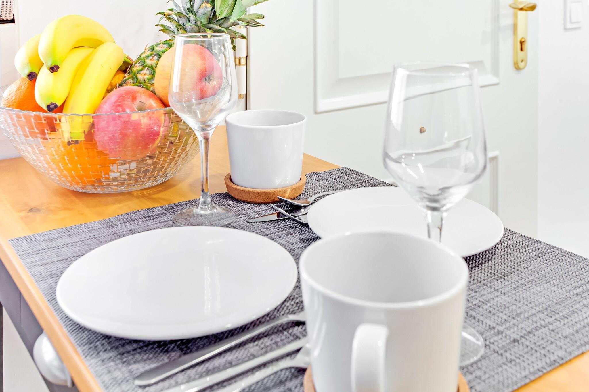 Stueetage: (åbent køkken(kogeplade, brødrister, komfur, kaffemaskine, ovn, combi-mikroovn, mikrobølgeovn, opvaskemaskine , køleskab, fryser, Saftpresser), stue / spisestue(spisebord, sofahjørne, varme, klimaanlæg), soveværelse(dobbeltseng, varme, klimaanlæg), badeværelse(bruser, toilet)) terrasse(privat)