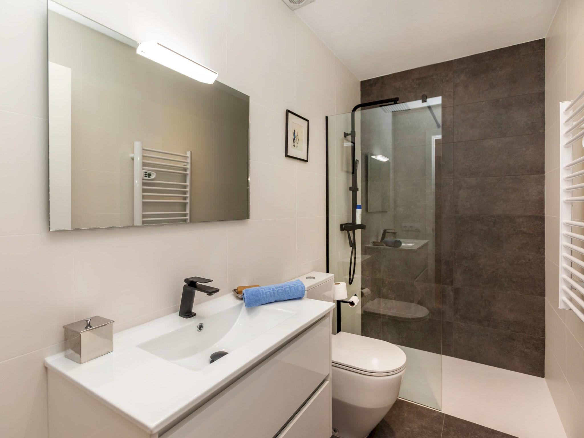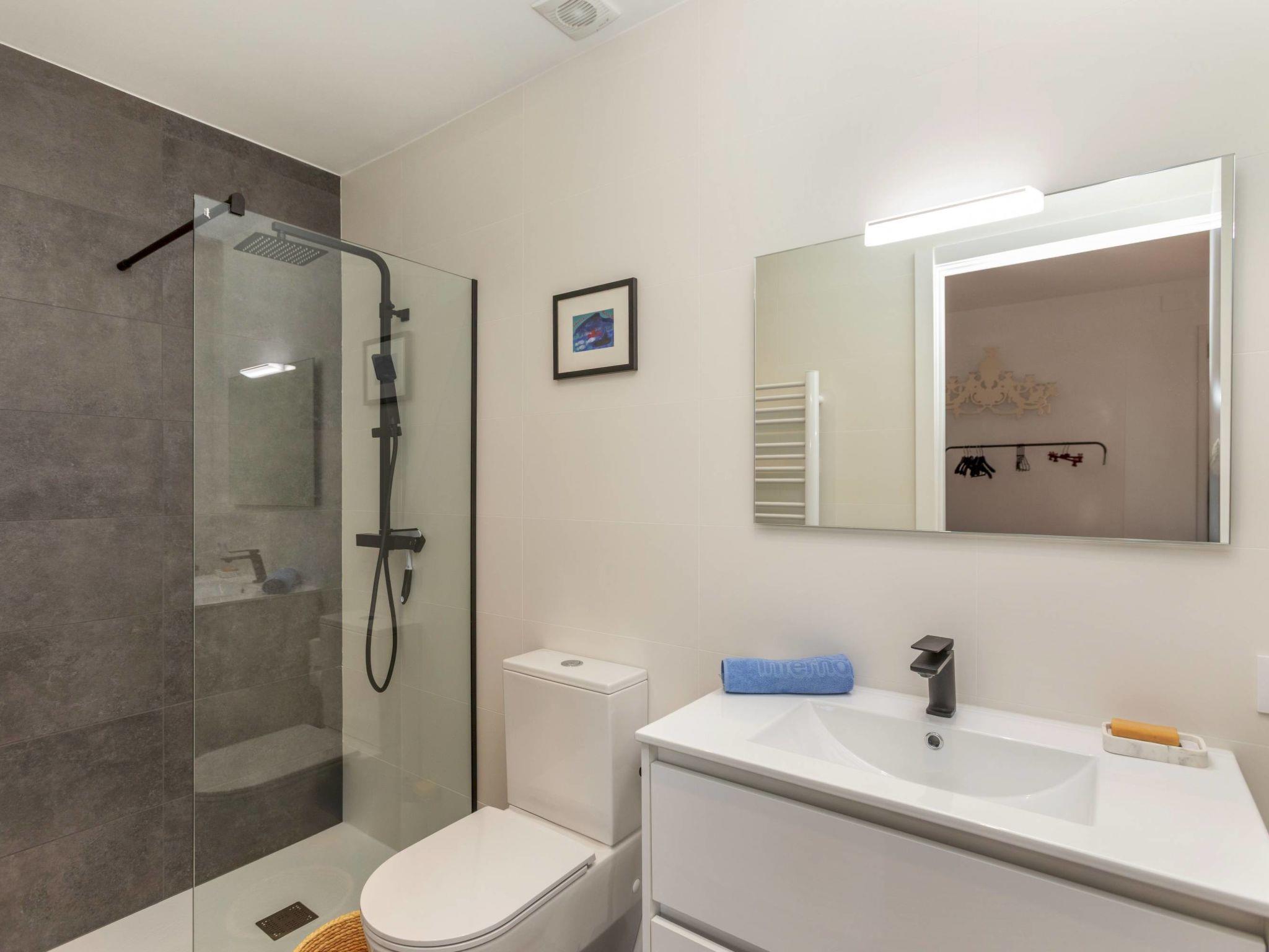 "Villa Chantal", 7-room house 576 m2. Spacious and bright, comfortable and stylish furnishings: living/dining room with digital TV and air conditioning. Exit to the garden, to the swimming pool. 1 room with 1 french bed (140 cm, length 190 cm), shower/WC. Exit to the garden. Large, open kitchen (5 hot plates, oven, dishwasher, toaster, kettle, microwave, electric coffee machine). Upper floor: 1 room with 2 beds (90 cm, length 190 cm), shower/WC and air conditioning. 1 room with 1 french bed (160 cm, length 190 cm), shower/WC and air conditioning. Exit to the terrace. 1 room with 1 french bed (160 cm, length 190 cm), bath/WC and air conditioning. 1 room with 1 double bed (2 x 90 cm, length 190 cm), shower/WC and air conditioning. 1 room with 1 double bed (2 x 90 cm, length 190 cm), shower/WC and air conditioning. Large patio. Terrace furniture, barbecue, covered balcony. View of the town. Facilities: washing machine, iron, children's high chair, baby cot for up to 2 year olds, hair dryer. Internet (WiFi, free). Garage space n 1 coche. Please note: maximum 1 pet/ dog allowed. TV only ES. HUTG-049098 // Reg. Nr.: ESFCTU00001700700002972700000000000000000HUTG-0490985