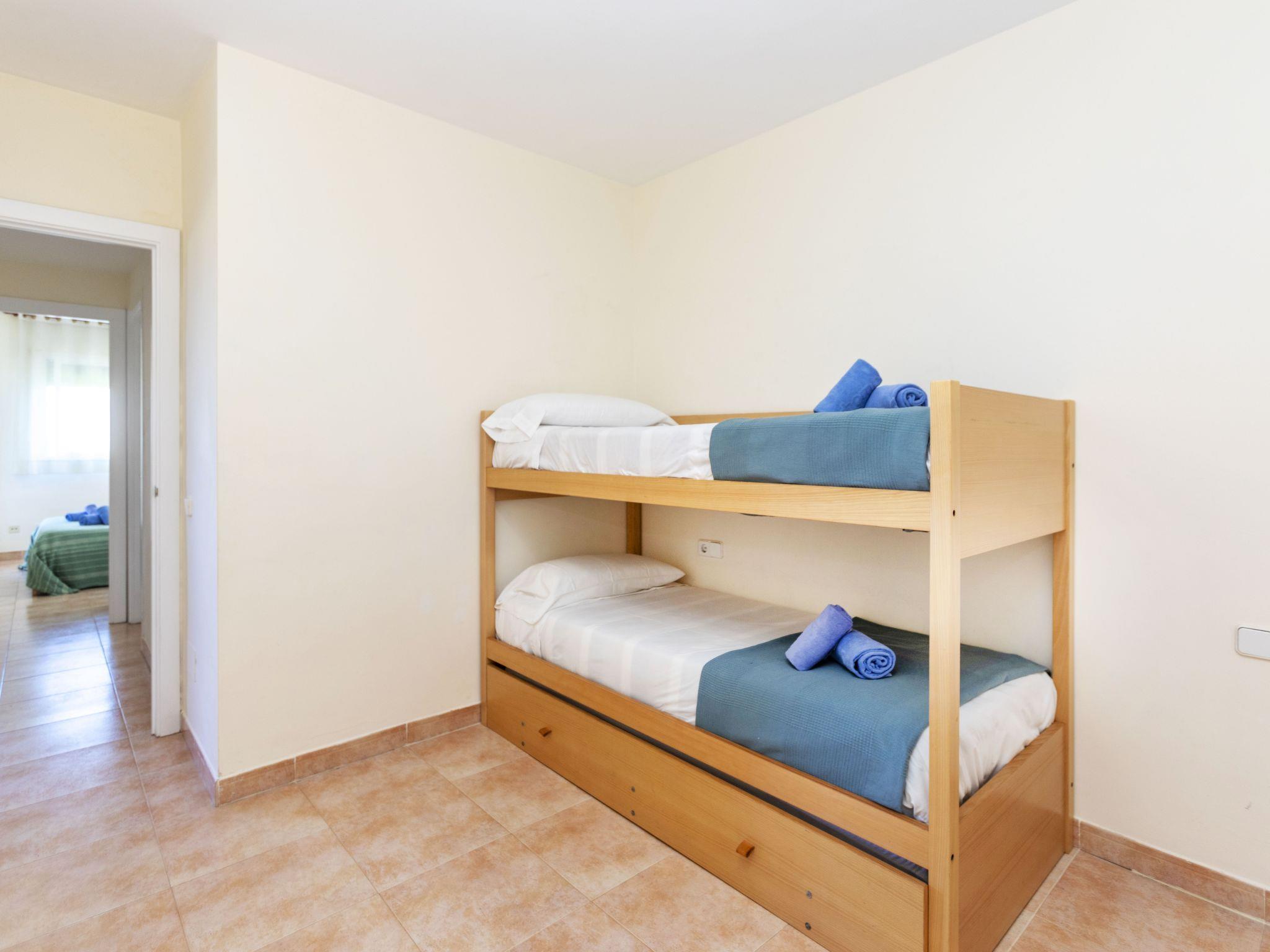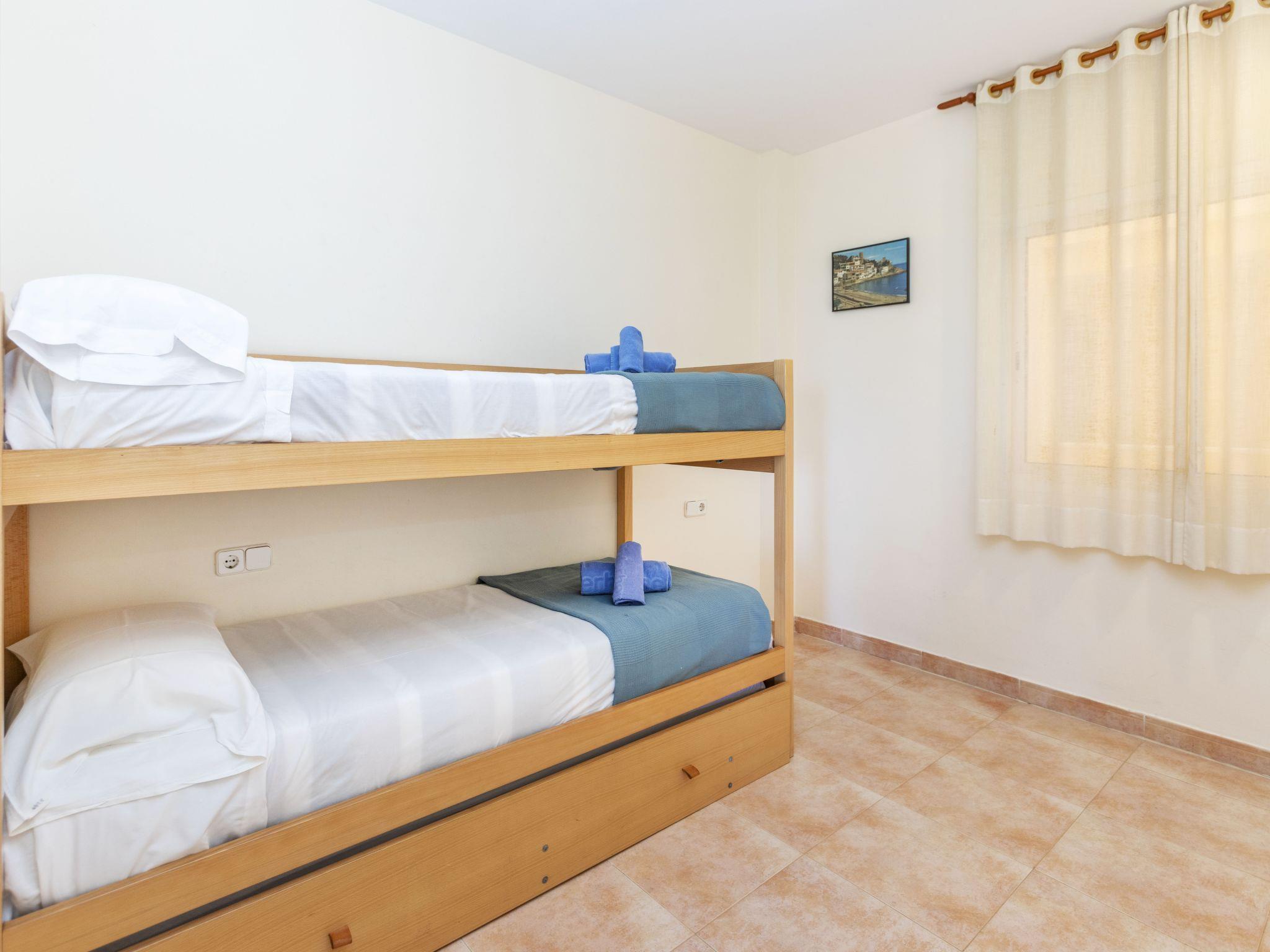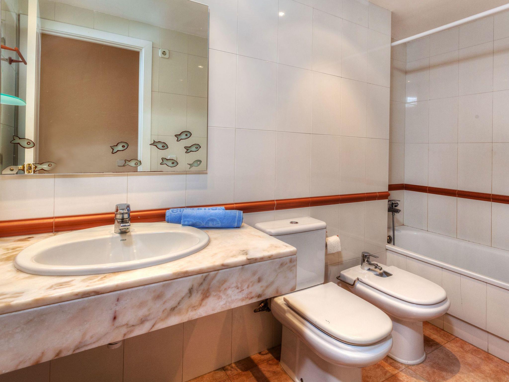 "Port Pals Golden", 3-room apartment 70 m2 on 2nd floor. Practical furnishings: living/dining room with digital TV. Exit to the terrace. 1 room with 1 french bed (135 cm, length 190 cm). Exit to the terrace. 1 room with 1 x 2 bunk beds (80 cm, length 180 cm). Kitchen (oven, dishwasher, 4 ceramic glass hob hotplates, microwave, electric coffee machine). Bath/bidet/WC. Boiler (150 litres). Small terrace. Terrace furniture. View of the sea. Facilities: washing machine, iron, children's high chair, baby cot, hair dryer. Internet (WiFi, free). Parking space n 11 exterior (1 car). Please note: TV only ES. Smart TV. HUTG003147 // Reg. Nr.: ESFCTU000017007000236316000000000000000000HUTG0031473