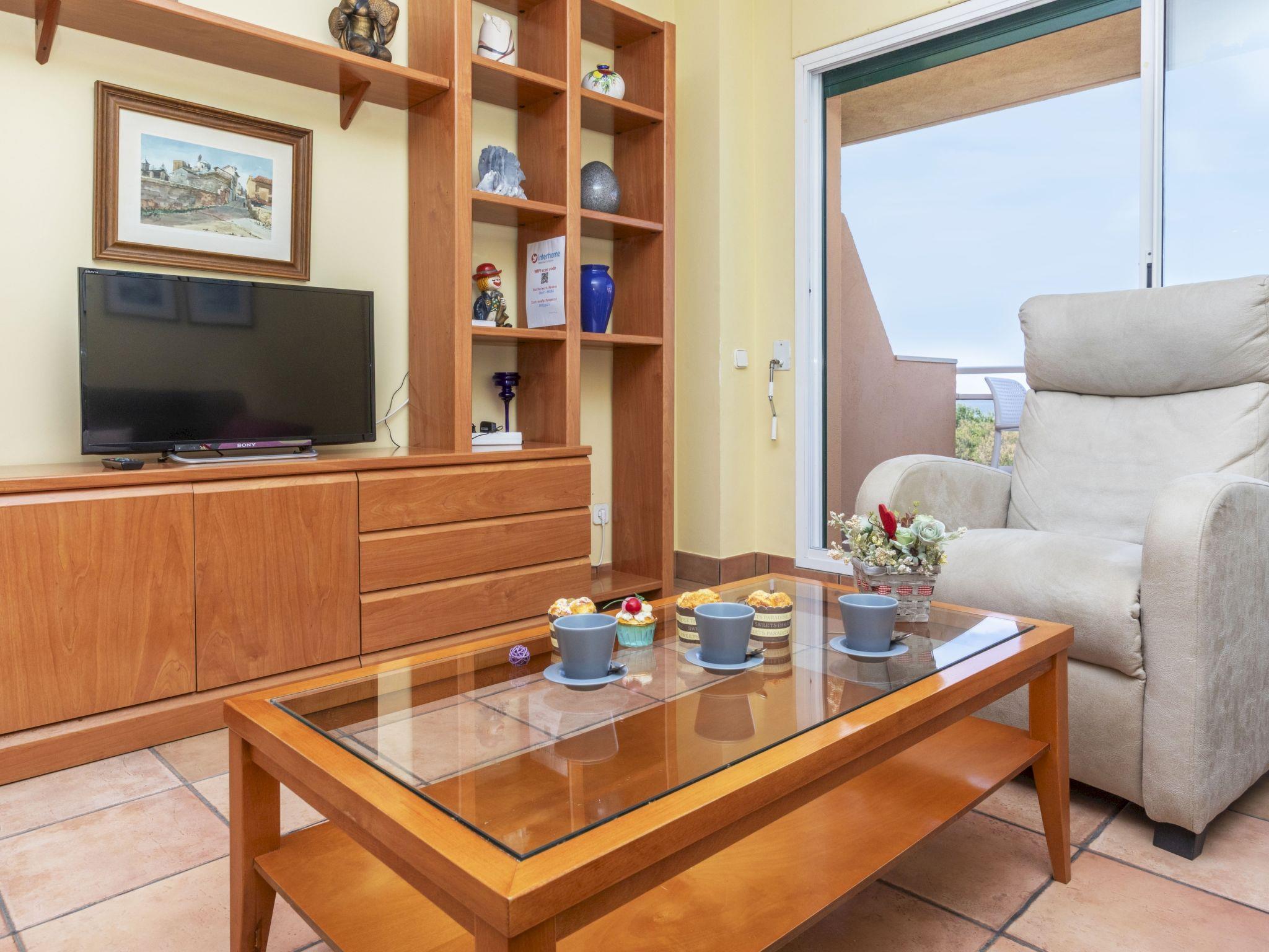 "Port Pals Sea View", 3-room apartment 90 m2 on 2nd floor. Practical furnishings: living/dining room with digital TV and electric heating. Exit to the terrace. 1 room with 1 french bed (150 cm, length 190 cm), bath/WC and electric heating. 1 room with 2 beds (80 cm, length 190 cm), electric heating. Open kitchen (dishwasher, 4 ceramic glass hob hotplates, microwave, electric coffee machine). Bath/bidet/WC. Electric heating, boiler (100 litres). Large terrace. Terrace furniture. View of the sea. Facilities: washing machine, iron, children's high chair, baby cot, hair dryer. Internet (WiFi, free). Parking space n 28 exterior (1 car). Please note: TV only ES. HUTG-011816 // Reg. Nr.: ESFCTU00001700700024752700000000000000000HUTG-0118162