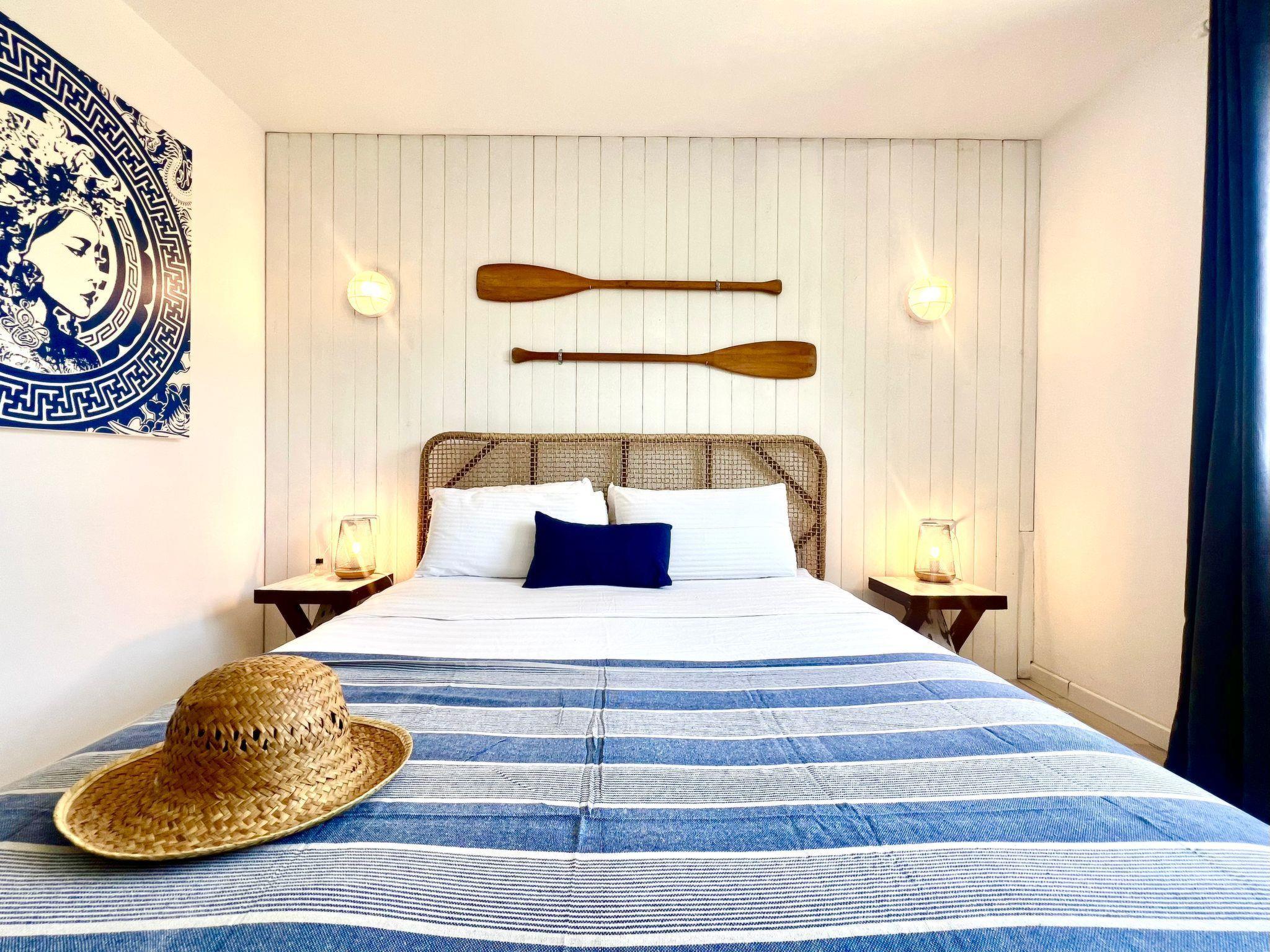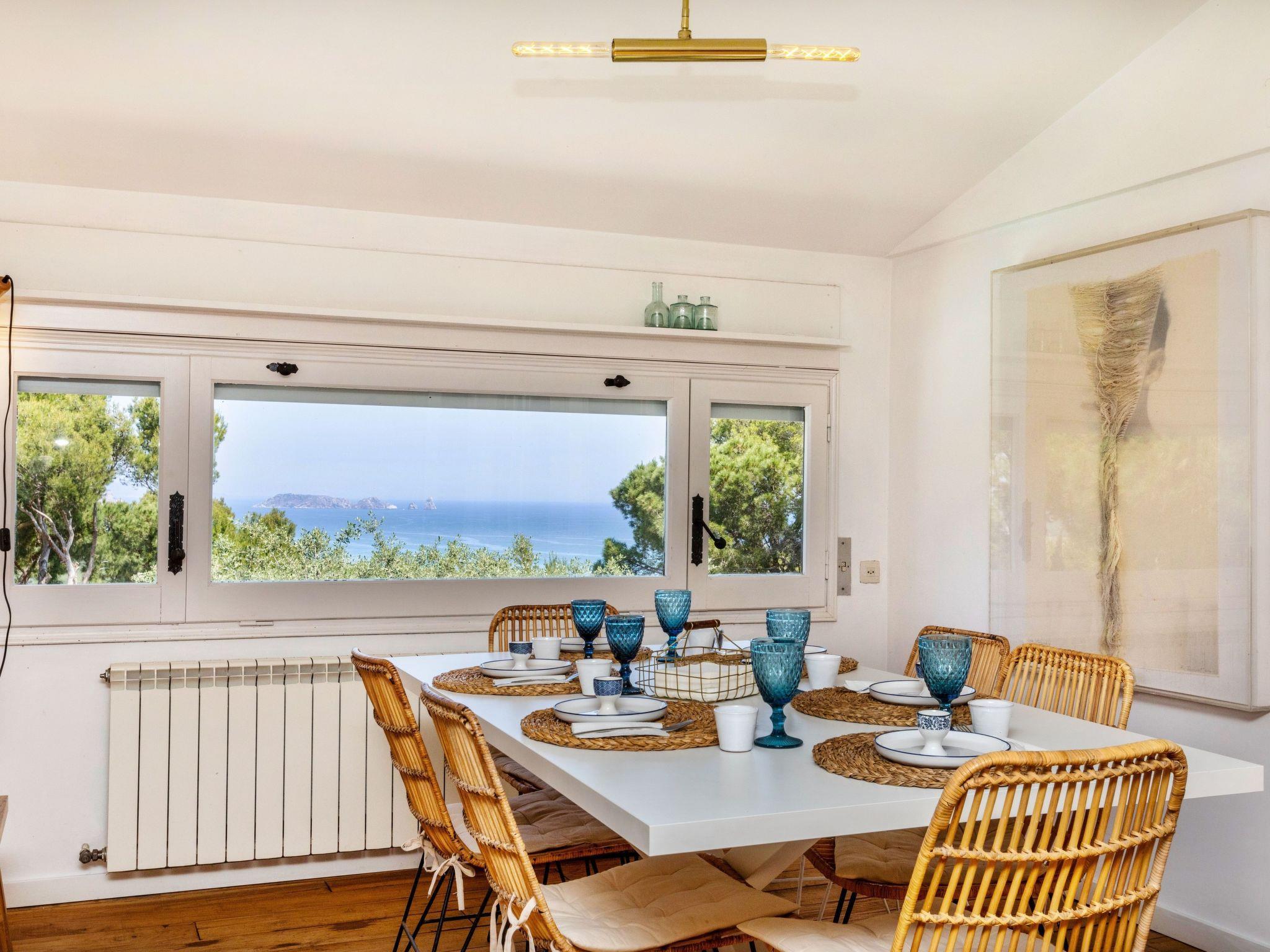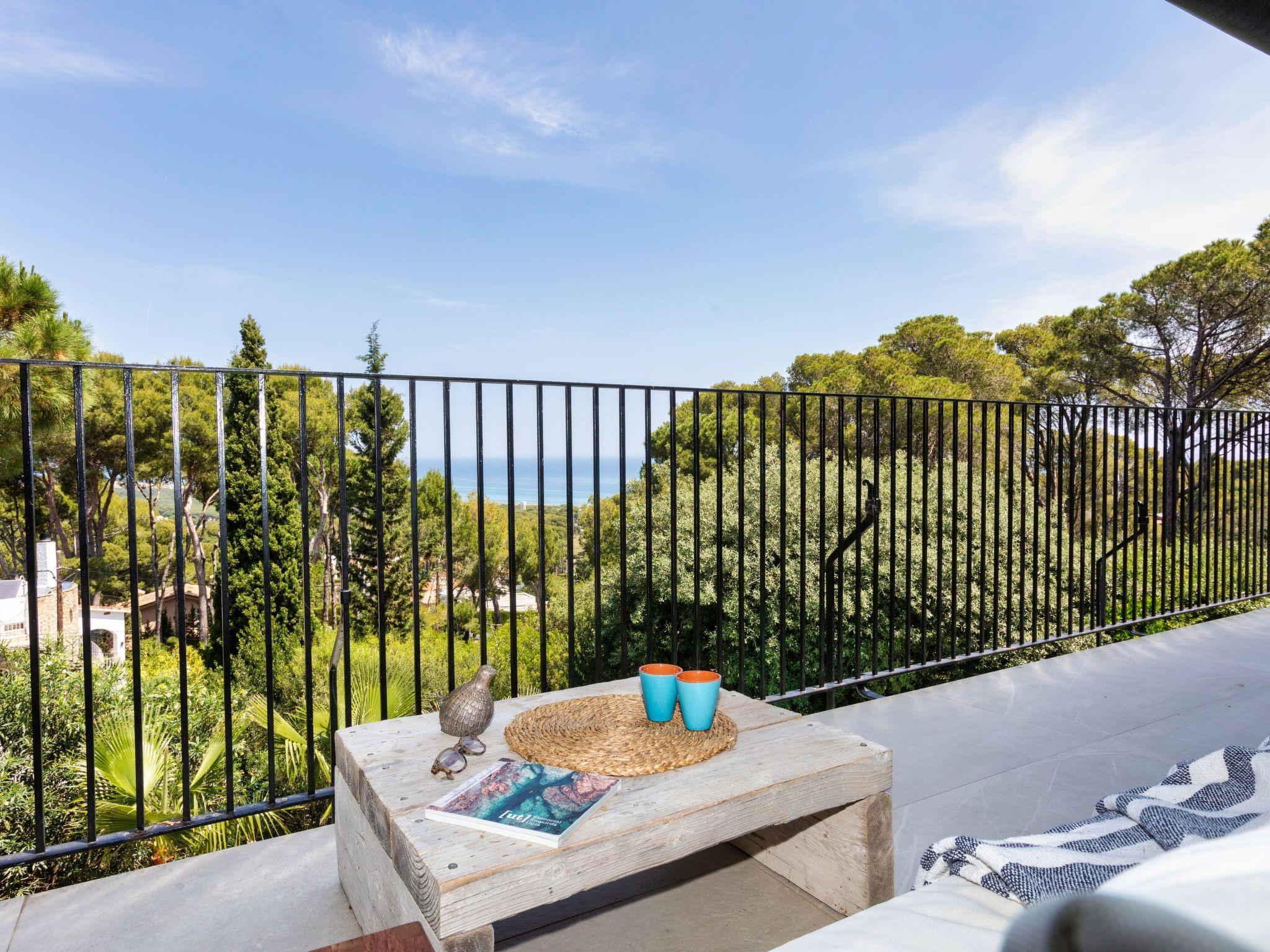 "Casa Blue Art", 6-room house 200 m2 on 2 levels. Comfortable furnishings: living/dining room with TV. Exit to the terrace. 1 room with 1 french bed (150 cm, length 190 cm), bath/WC and air conditioning. Kitchen (4 hot plates, oven, dishwasher, toaster, kettle, microwave, freezer, electric coffee machine). Shower/WC, bath/WC or shower/WC. No heating option. On the lower ground floor: living/dining room. Exit to the garden, to the swimming pool. 2 rooms, each room with 1 french bed (150 cm, length 190 cm). 2 rooms, each room with 2 beds (90 cm, length 190 cm). 1 room with 1 french bed (135 cm, length 190 cm). Kitchenette). Patio. Terrace furniture, deck chairs (3). Panoramic view of the sea, the countryside and the resort. Facilities: washing machine, iron, children's high chair, baby cot, hair dryer. Internet (WiFi, free). Parking at the house. Suitable for families. HUTG-029559 // Reg. Nr.: ESFCTU00001700700016321600000000000000000HUTG-0295599