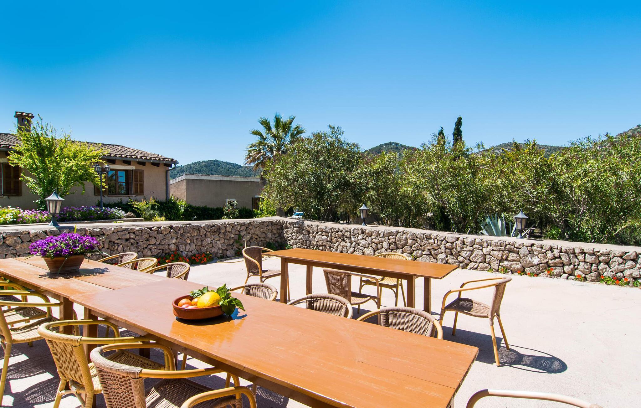 Blomster og grønt så langt øjet rækker - det rene paradis i en vidunderlig afsondret landlig beliggenhed og alligevel tæt på byen og havet - "Parreta", denne enorme ejendom, i en nøddeskal. Landhuskonceptet blev implementeret her på en utraditionel måde, da de ovennævnte 700 m² boligareal er fordelt mellem hovedbygningen og etageejendommene. Husene er forbundet af en smuk have fuld af kaktusser, knudrede oliventræer, kæmpe oleandere og andre blomstrende planter. Der er endda en joggingsti, hvor du kan tage en morgenløbetur. Den enorme fælles pool med et forarbejdet mosaikgulv har sporty dimensioner med banelængder på 16 m. Efter svømning kan du slappe af på en af liggestolene på solterrassen omkring poolen. Et smart fortelt med parasoller skaber et skyggefuldt sted for enden af poolen, et hyggeligt sted til glade bræt- eller kortspil. Der er et væld af siddepladser, som er smukt afsondret og private, men også nogle fællesarealer. Det er især rart, hvis du kan bruge et stort udendørs opholdsområde, især til større grupper. Denne ligger lige bag ved huset nær den murede grill, hvor I kan lave mad, spise og drikke sammen, mens I nyder det skønne vejr i en afslappet atmosfære. Når du rejser med en større gruppe, f.eks. en sportsklub, en større gruppe venner eller familie til en særlig lejlighed: Dette er det perfekte sted at tilbyde masser af plads og samtidig bevare en masse privatliv. Villa "Parreta" er perfekt designet til at rumme et så stort antal gæster. Huset er en god blanding af en klassisk privat villa og et hotel. Dette er dog indkvartering med egen forplejning, og du kan have denne rummelige ejendom helt for dig selv, uden personale eller andre gæster. Klassisk mallorcansk landstedsstil, blandet med enkel gæstfrihed parret med komfort, byder dig velkommen i alle værelser. I hovedhuset er der et perfekt udstyret køkken med alle tænkelige hvidevarer, herunder en opvaskemaskine. Dette bør varme hjerterne hos dem af jer, der laver mad som hobby. Når du ikke spiser udenfor, kan du samles i den overdådige spisestue med synlige bjælkevægge. Tag en drink i baren i loungen før middag, eller nyd en drink efter middagen efter det flerretters måltid, der er tilberedt sammen. En feriefølelse af meget individuel art er garanteret, hvis ferien var planlagt selv. Indkvartering er - og det er et absolut overbevisende træk ved denne sofistikerede og prisvenlige villa - i hovedbygningen eller i en separat bygning. På første sal i den restaurerede stenbrudsbygning er der to suiter bestående af et soveværelse, en stue og et en-suite badeværelse. Det rummelige dobbeltværelse med badeværelse på samme etage er det eneste uden et lille køkken og stue. Lige bag huset er der en fjerde selvforsynende og fuldt udstyret lejlighed. De øvrige fire lejligheder på hver 55 m² boligareal ligger i den aflange bygning lige ved siden af. Hver enhed har sit eget soveværelse, moderne flisebadeværelse og åbent opholds- og køkkenområde. Fra boligen er der direkte adgang til den overdækkede terrasse med bord og to stole - ideel for et øjeblik for to at nyde dette landlige paradis og dets behageligt milde klima fuldt ud. Placeringen af denne monumentale villa er ganske enkelt fascinerende, da Manacor kun ligger 10 minutter væk til en fantastisk gåtur og en butik til for eksempel de berømte mallorcanske perler, der fremstilles her. De omkringliggende byer, såsom den charmerende Son Macià, er nemme at nå på grund af den bekvemme beliggenhed og nærheden til den knapt hørbare landevej. Dine daglige indkøb vil blive gjort der og kan kombineres med en morgen Café Cortado på en lokal cafe. For at svømme, tag til den smukke fiskerlandsby Porto Cristo, hvor du efter en lang dag på stranden med adskillige vandsportsaktiviteter kan slentre langs promenaden om aftenen og få noget at spise på en af de smukke restauranter. Med hensyn til strande er der masser at vælge imellem, med det smukke såkaldte “Calas de Mallorca” kun et stenkast væk. Om aftenen kan du og din gruppe afslutte dagen i fred og afslapning med en hyggelig grillaften, indtil alle stjerner står højt på himlen. Den enorme villaejendom "Parreta" ligger i en vidunderlig, afsondret beliggenhed mellem Manacor og det fortryllende østlige kystlandskab. Separate boligenheder med et højt niveau af komfort og hygge er tilgængelige til din ferie. For shopping, besøg Son Macia eller Manacor, hvor der er et ugentligt marked om mandagen. Øens smukke strande, hvoraf nogle er rigtige insidertips såsom Cala Varques, er kun en kort køretur væk. Dette er et Fincallorca feriehus.