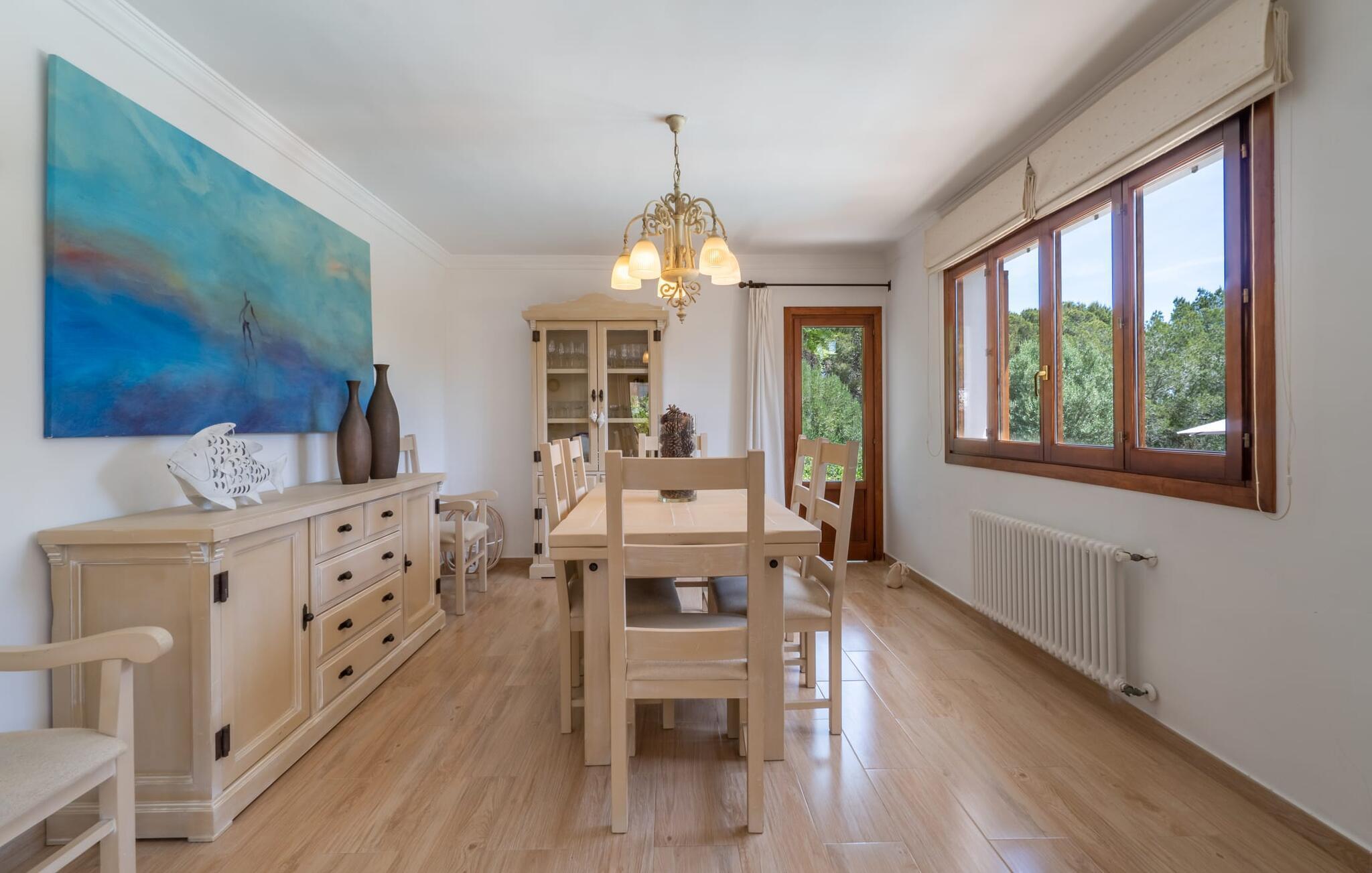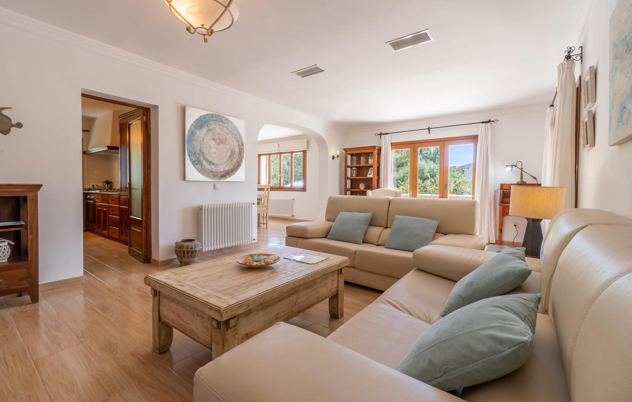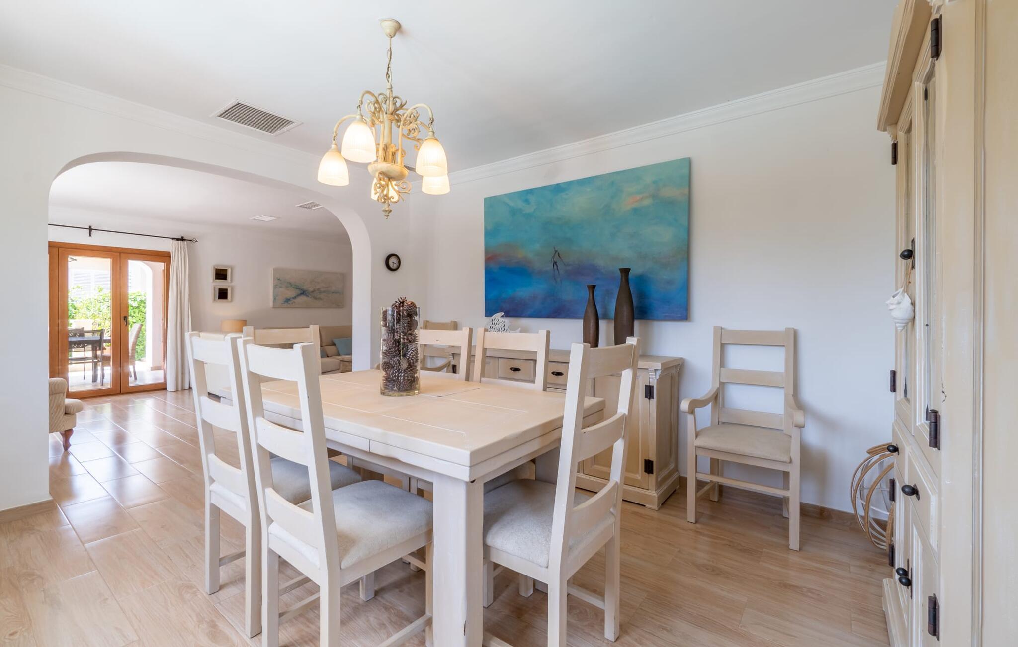 Strandferie, når det er bedst: De tre fortryllende bugter Cala Mendia, Cala Anguila og Cala Estany ligger i umiddelbar nærhed af dette feriehus på Mallorca - mindre end 5 minutter til fods. Der er også et aldeles smukt udeområde, indlejret i frodigt grønt og pyntet med en skøn terrasseidyl lavet af loungemøbler. Den lille, men dejlige pool er en af villaens faciliteter, ligesom de små siddepladser, der er fordelt rundt i huset og vil mere end tilfredsstille både dem, der søger skygge og soltilbedere. En pause i hængekøjen virker lige så fristende som en hyggelig grillaften med hele familien – murstensgrillen gør det muligt. Praktisk: Lejebilen kan parkeres på gaden lige foran huset og så kan I glæde jer til at erobre det hyggelige feriehus på det smukke sydlige Mallorca. Hyggeligt, harmonisk og behageligt lyst: Der er en behagelig feel-good atmosfære overalt i villaen "Passeig Platon". På den ene side er der den åbne stue/spisestue, som endda kan udvides til at omfatte et skønt friskluftsområde gennem den tilstødende loungeterrasse. Stilfuld belysning og subtile vægmalerier komplementerer den smagfulde indretning i dette feriehus på Mallorca. I stueetagen er der også det veludstyrede køkken med masser af opbevaringsplads til regionale delikatesser og de tre soveværelser (hver med en dobbeltseng: et på 1,50 x 1,90 m og to på 1,35 x 1,90 m). Villaen har desuden to velholdte badeværelser, og her vil badekarventilatorer også få noget for pengene. Lille særegenskab: I kælderen i dette feriehus på Mallorca er der endnu et værelse med sofa og skrivebord. Bibliotek, studie, retræte med en romantisk pejs - der er mange ideer til, hvordan du kan bruge det. Villaen "Passeig Platon" er beliggende i den sydlige del af Mallorca, i en smuk bebyggelse omkring 0,5 km nord for den smukke Cala Media bugt. Supermarkeder, barer og restauranter er inden for gåafstand, det ugentlige marked i Porto Cristo og andre butikker er ca. 5 km væk. Feriehuset ligger på en akustisk mærkbar vej, hvilket gør kendte seværdigheder som Coves del Drac særligt nemme at nå. Gå ikke glip af de smukke sandstrande lige rundt om hjørnet. Dette er et Fincallorca feriehus.