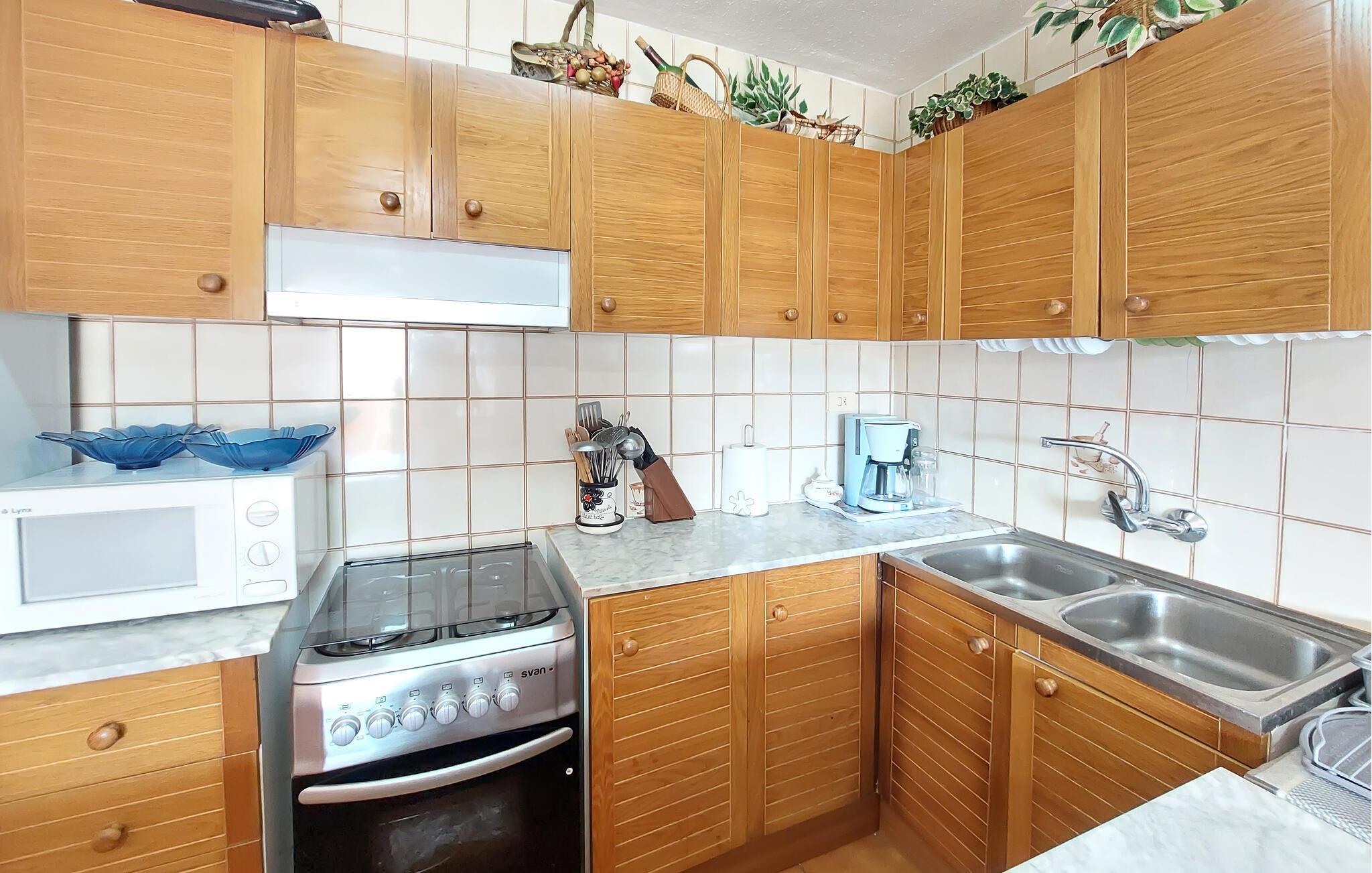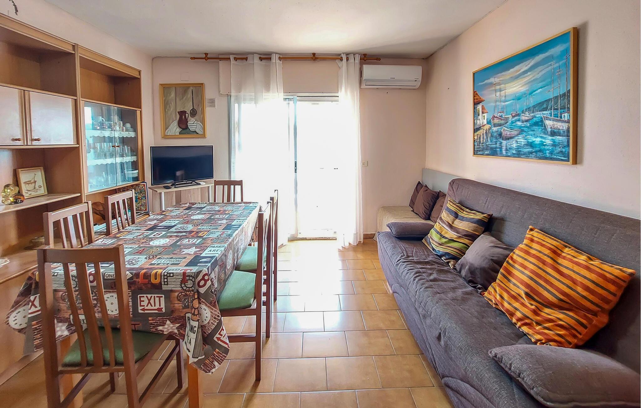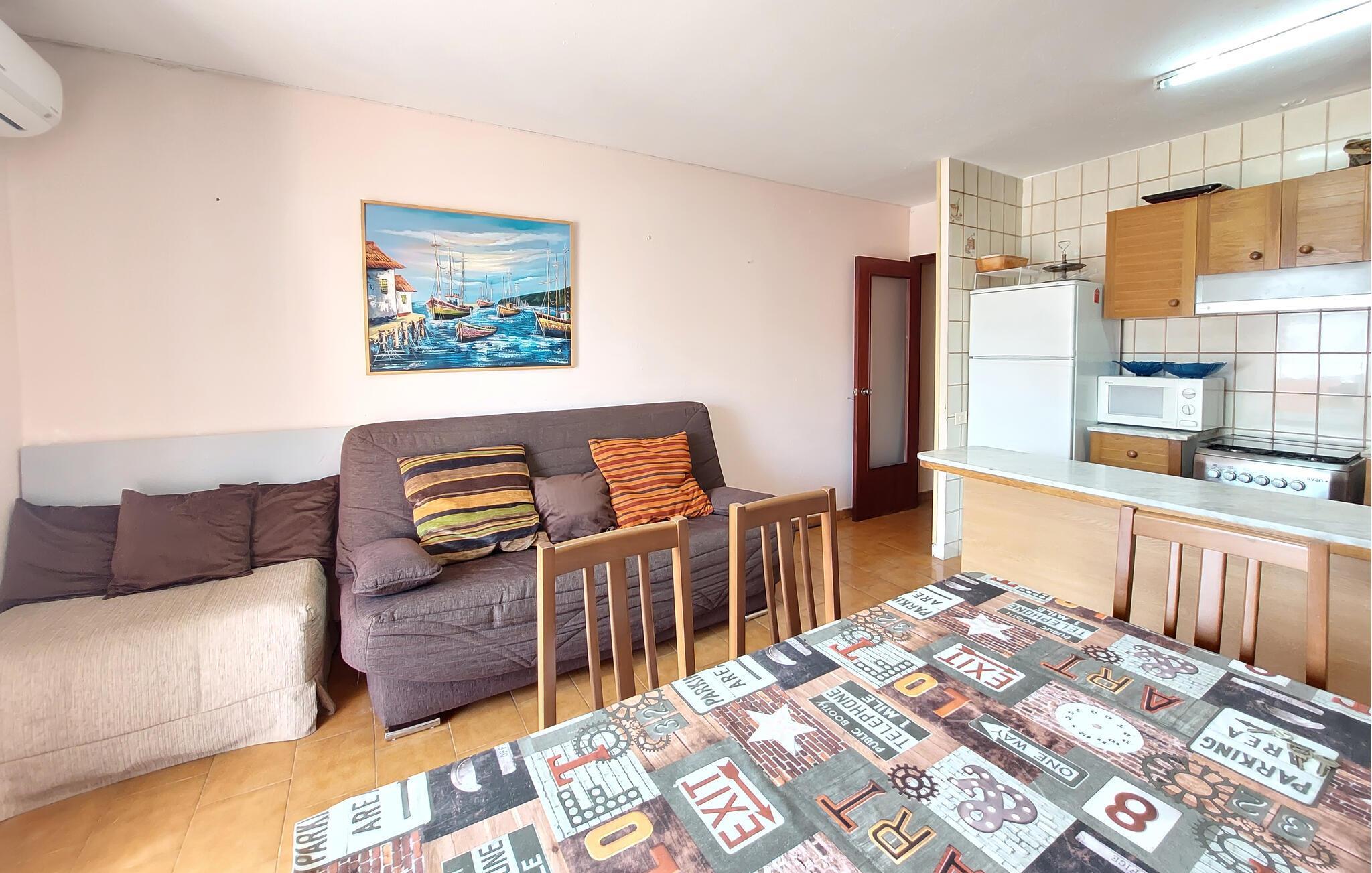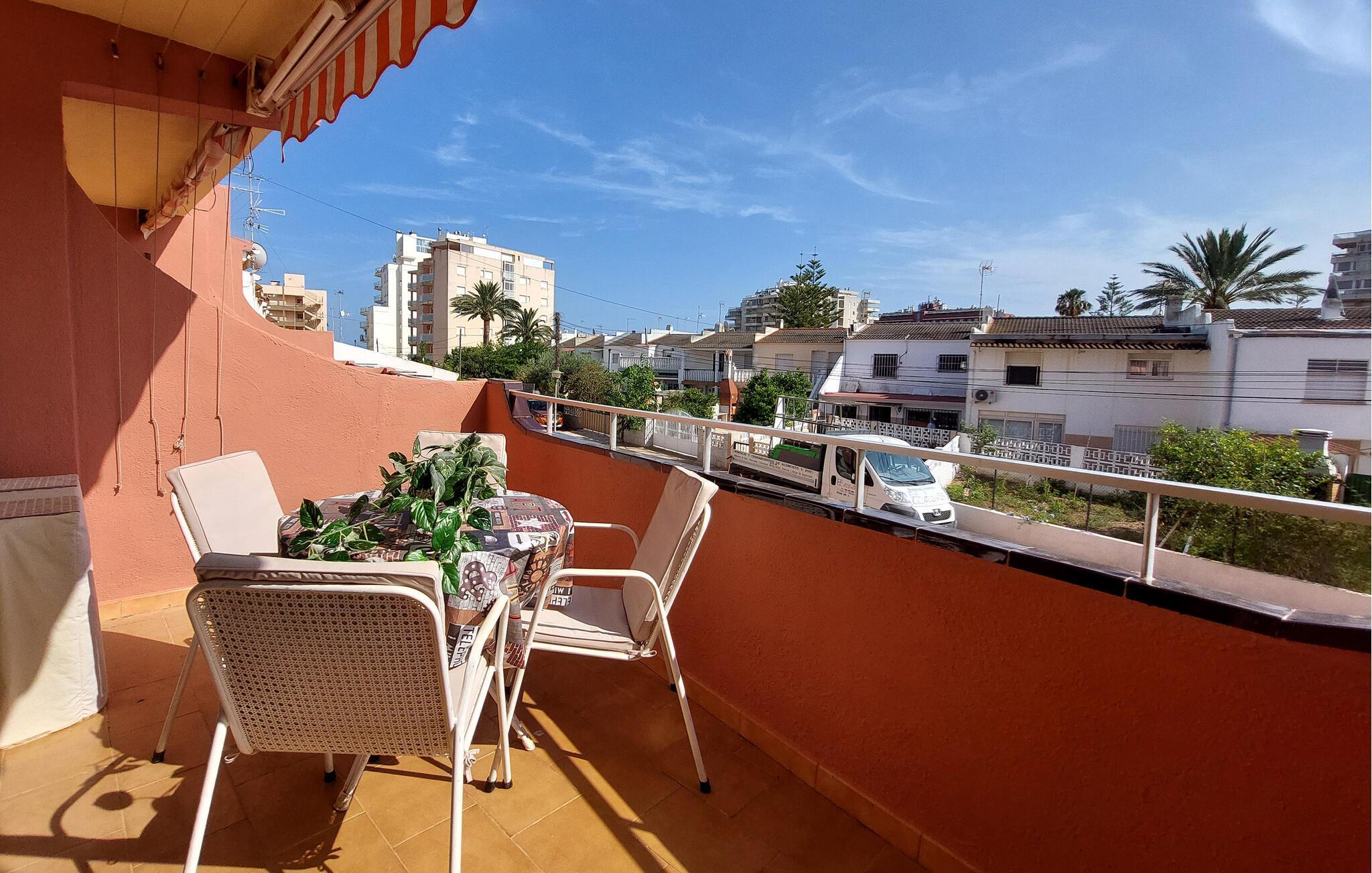 Nyd jeres ferie i denne ferielejlighed ikke langt fra havet. Den praktisk indrettede lejlighed byder jer velkommen i en ideel beliggenhed nær stranden og er perfekt til en ferie med dejlige timer ved havet. Nyd tiden sammen og hyggelige aftener i den indbydende stue på den komfortable sofa. Efter en aktiv dag fuld af oplevelser kan I også tilbringe mange afslappende timer på terrassen og lade blikket vandre over hustagene. Gå en tur til stranden og nyd solen på det varme sand. Oplev den imponerende gamle bydel med dens majestætiske Tempelridderslot, der troner på en klippe over havet. Vandr gennem den nærliggende Sierra de Irta Naturpark, udforsk skjulte bugter i kajak, eller tag en cykeltur langs kysten.