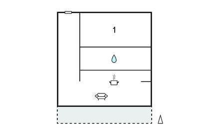 Badeværelse 5m2 (nr. 1) - WC. Varmt og koldt vand. Bruser