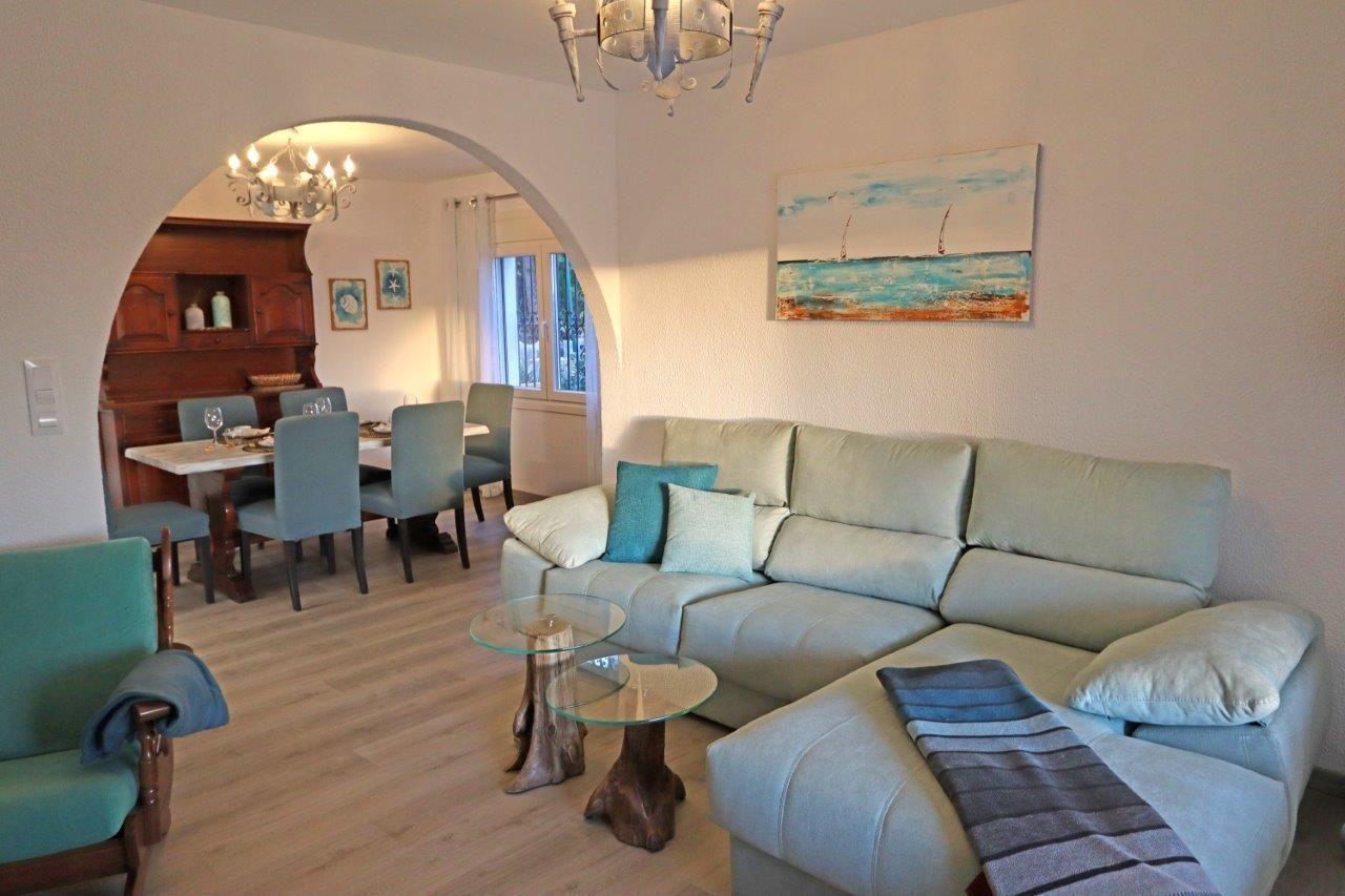 The holiday home "Geminis I" is located on the outskirts of Peniscola in the urbanisation "Monte Pichells" in a small gated community "Las Palmeras" with a well-kept palm garden and a spacious barbecue area. From here you can immediately set off on excursions into the Serra d'Irta and explore sheltered bathing bays along the sea.