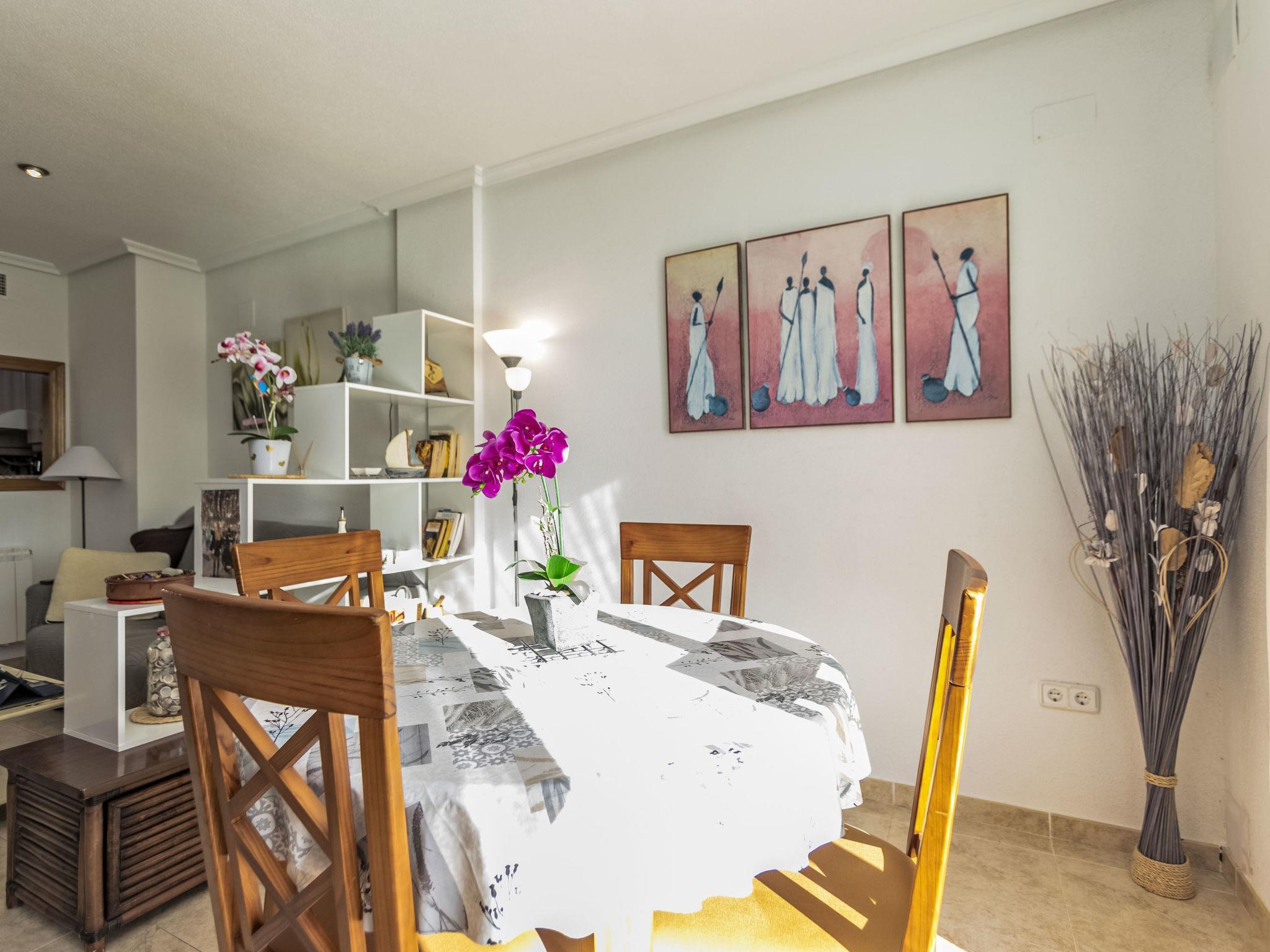 "Eva", 3-room maisonette 80 m2 on 2 levels, on the ground floor. Practical and comfortable furnishings: living/dining room with dining table, digital TV, air conditioning and fan. Exit to the terrace. Small, open kitchen (oven, 4 gas rings, toaster, kettle, microwave, electric coffee machine). Sep. WC. Heating not available in all rooms. Upper floor: 1 room with 2 beds (90 cm, length 190 cm), fan. 1 room with 1 french bed (1 x 135 cm, length 190 cm), air conditioning and fan. Bath/WC. Terrace, patio 20 m2. Terrace furniture, barbecue, deck chairs (2). View of the sea and the mountains. Facilities: washing machine, iron, hair dryer. Internet (WiFi, free). Parking space n 86 (roofed). Please note: apartment street side. Non-smokers only. 1 small pet/ dog allowed. TV only ES, FR. No lift. VT-43770-CS // Reg. Nr.: ESFCTU000012009000959269000000000000000000VT-43770CS0