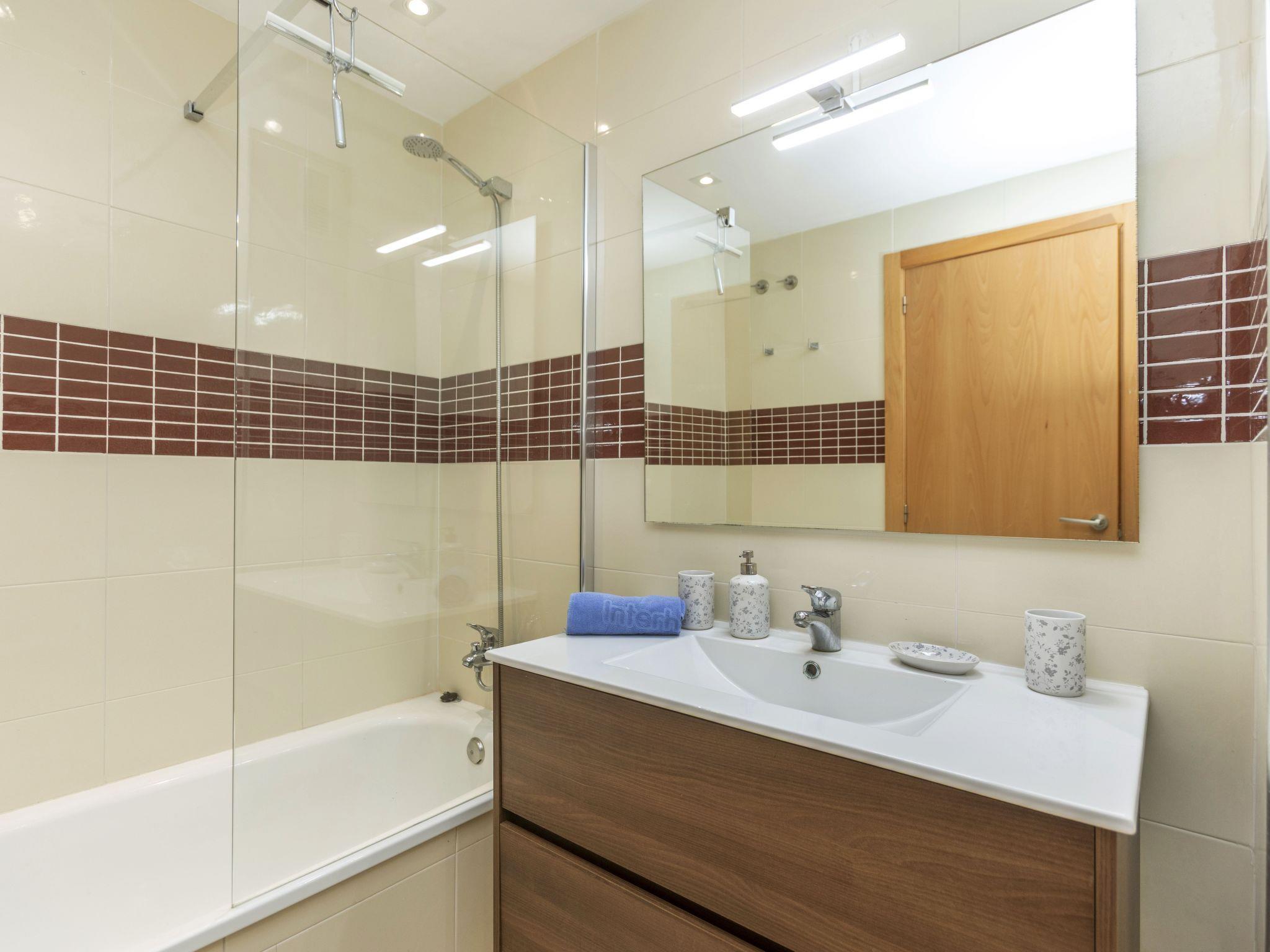 3-room apartment 72 m2 on 1st floor. Practical and comfortable furnishings: dining room with dining table, digital TV, air conditioning and forced-air heating. Exit to the terrace. 1 room with 1 french bed (1 x 150 cm, length 190 cm), air conditioning and forced-air heating. Exit to the terrace. 1 room with 2 beds (80 cm, length 190 cm), 1 folding bed (80 cm, length 190 cm), air conditioning and forced-air heating. Open kitchen (oven, dishwasher, 4 ceramic glass hob hotplates, toaster, microwave, electric coffee machine) with boiler (60 litres). Bath/WC, shower/WC. Large terrace 20 m2. Terrace furniture. Partial view of the sea and the mountains. Facilities: washing machine, iron, hair dryer. Internet (WiFi, free). Parking space n 51. Please note: non-smokers only. TV only ES. VT-41018-CS // Reg. Nr.: ESFCTU0000120090010274790000000000000000VT-40468-CS0