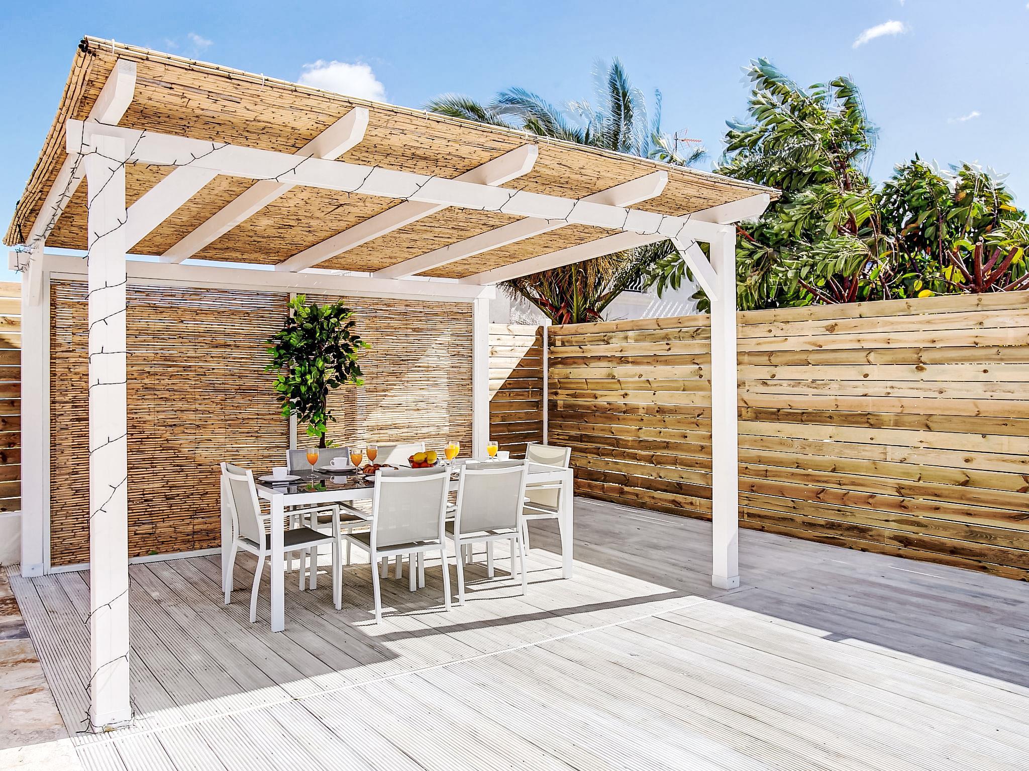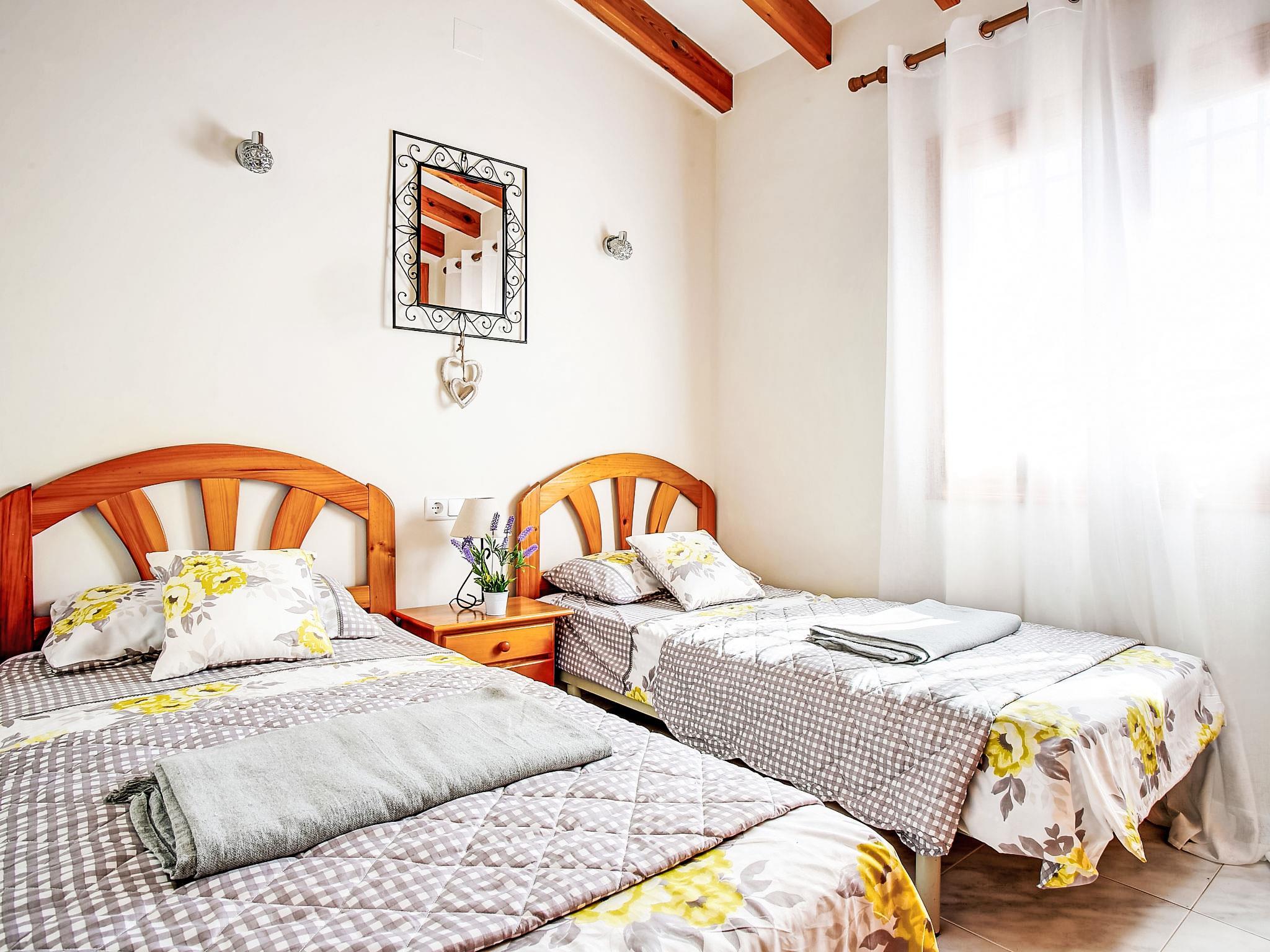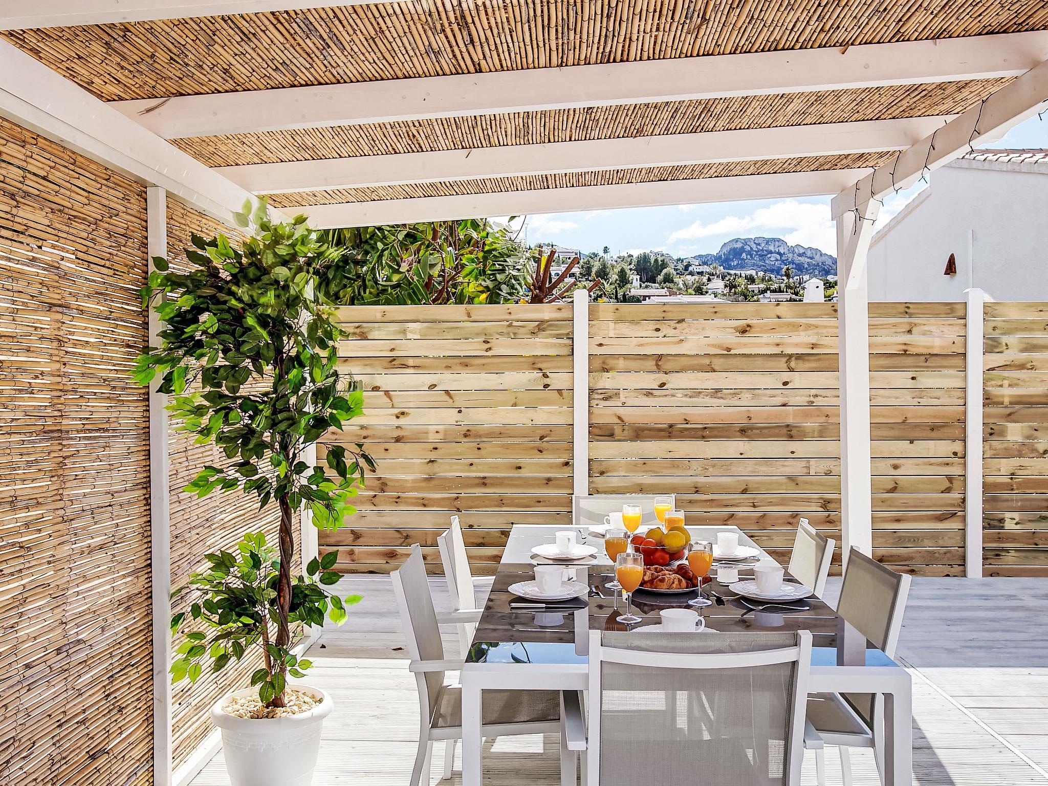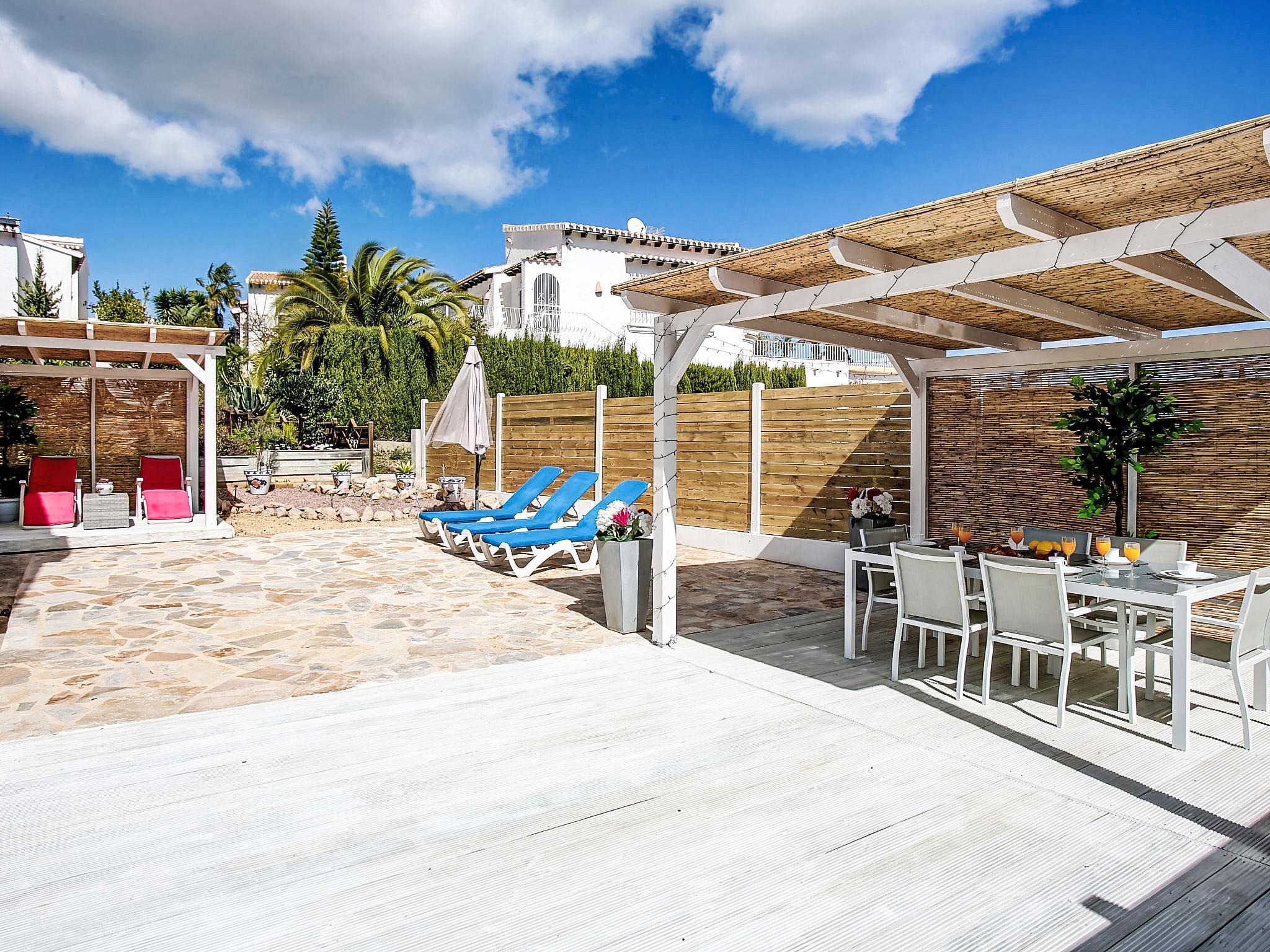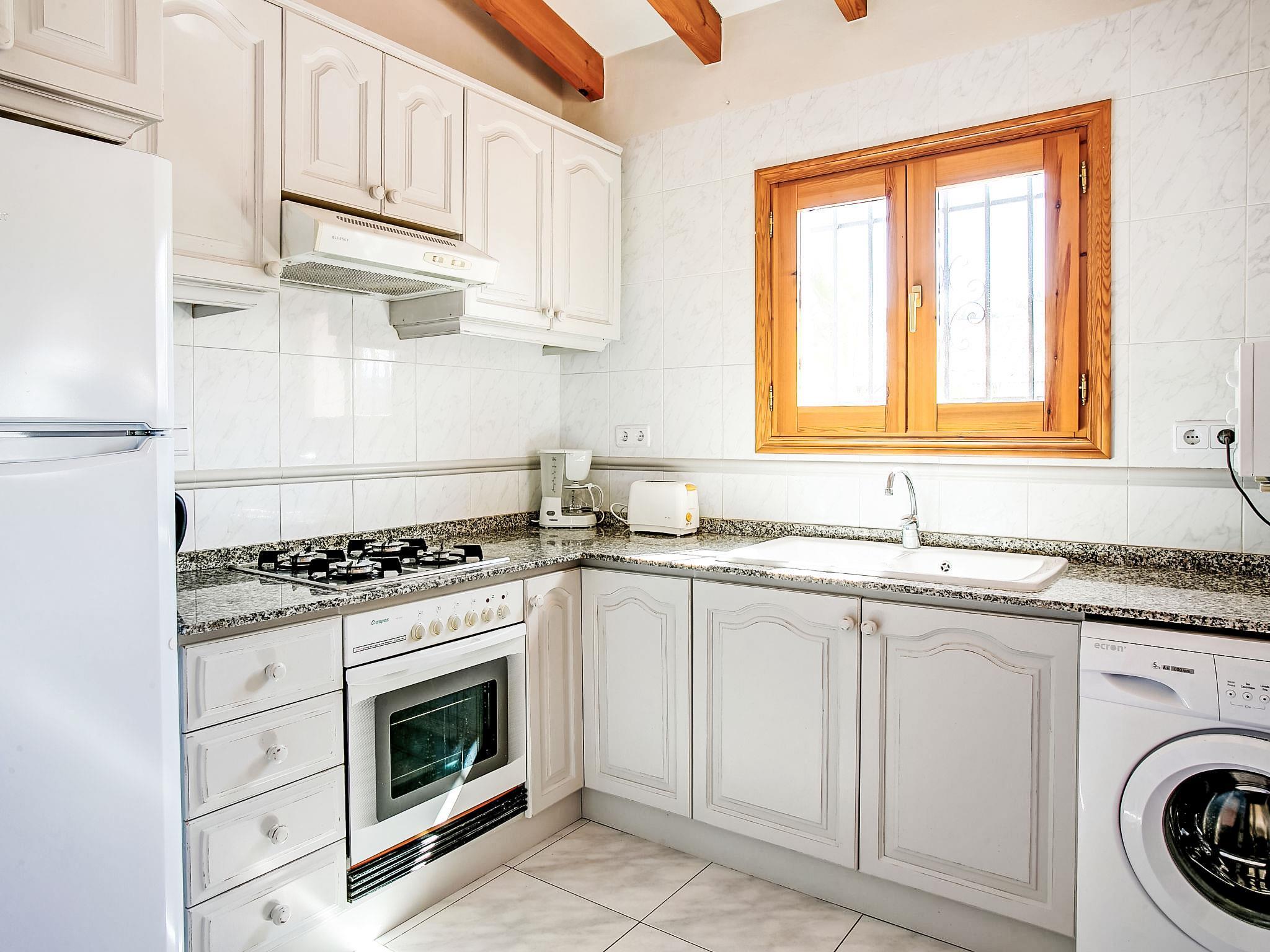 Monte Pego: Cosy, very comfortable villa "Moreana". In a quiet position on top of a hill, residential area (villas), traffic calmed area, 7 km from the sea. Private: natural garden 600 m2, swimming pool (4 x 8 m, depth 90 - 200 cm, seasonal availability: 01.Jan. - 31.Dec.). Terrace (25 m2), garden furniture, barbecue house, parking (for 2 cars). Bus stop 7.4 km. Please note: car recommended. The owner does not accept any youth groups.