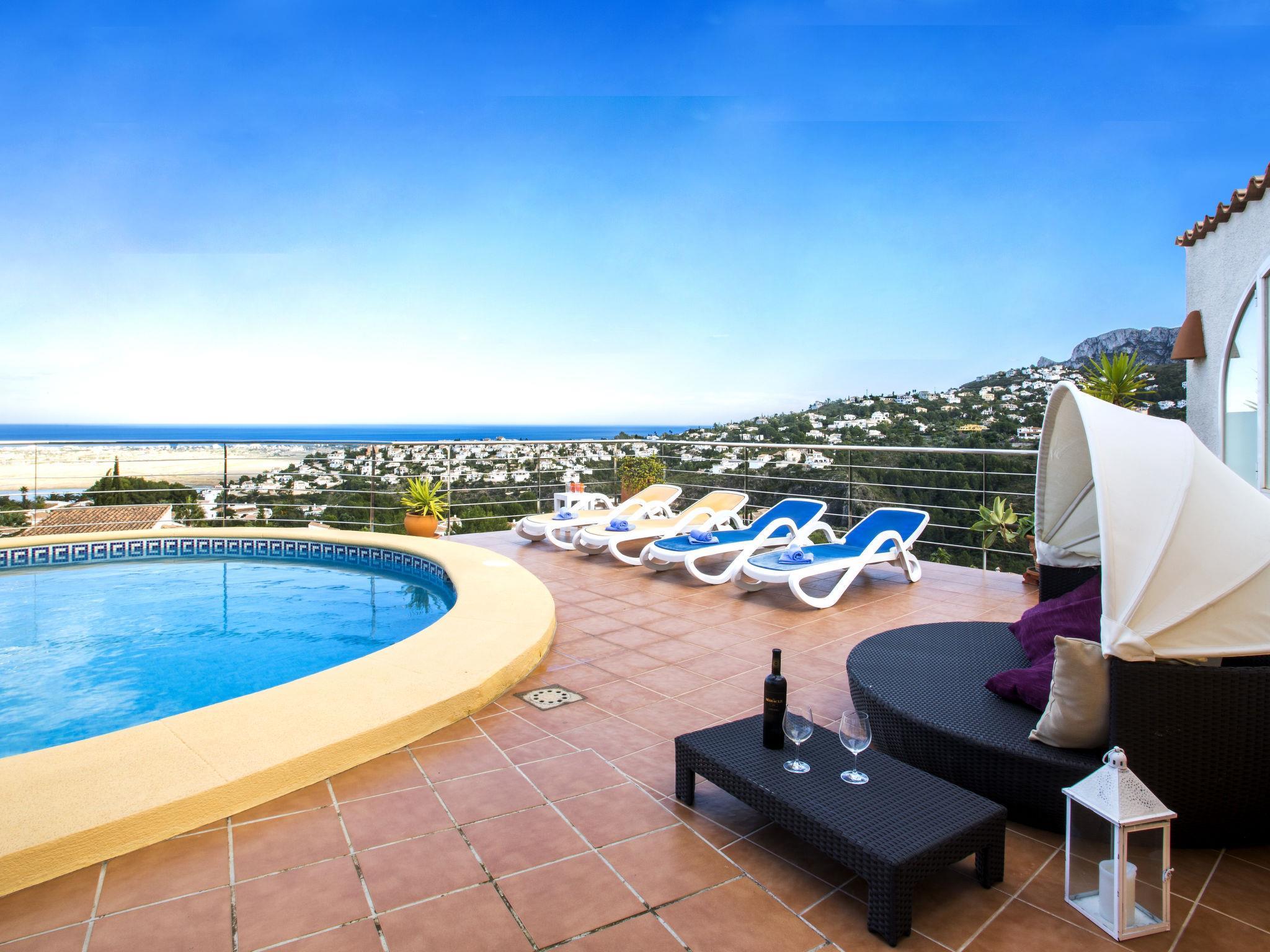 Very beautiful, comfortable villa "Charly". In the district of Monte Pego, in a quiet, sunny position, 8 km from the sea, 8 km from the beach. Private: property 670 m2 (fenced), swimming pool kidney shaped (5 x 8 m, depth 160 - 250 cm, seasonal availability: 01.Jan. - 31.Dec.). Outdoor shower, garden furniture, barbecue. In the house: central heating system. Stepped path (38 steps) to the house. Parking on the premises. Shop 6 km, supermarket 6 km, shopping centre 12 km, restaurant, bar 500 m, bus stop 7.4 km, sandy beach 8 km. Golf course (18 hole) 12 km, tennis 3 km. The owner does not accept any youth groups.