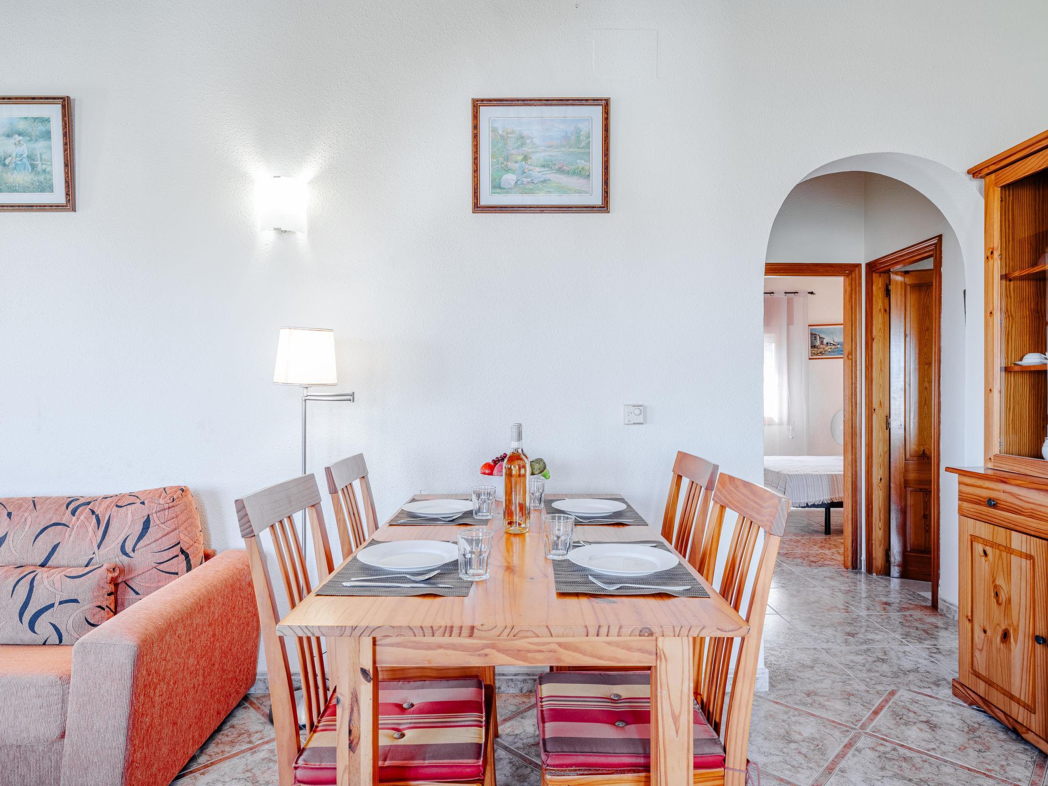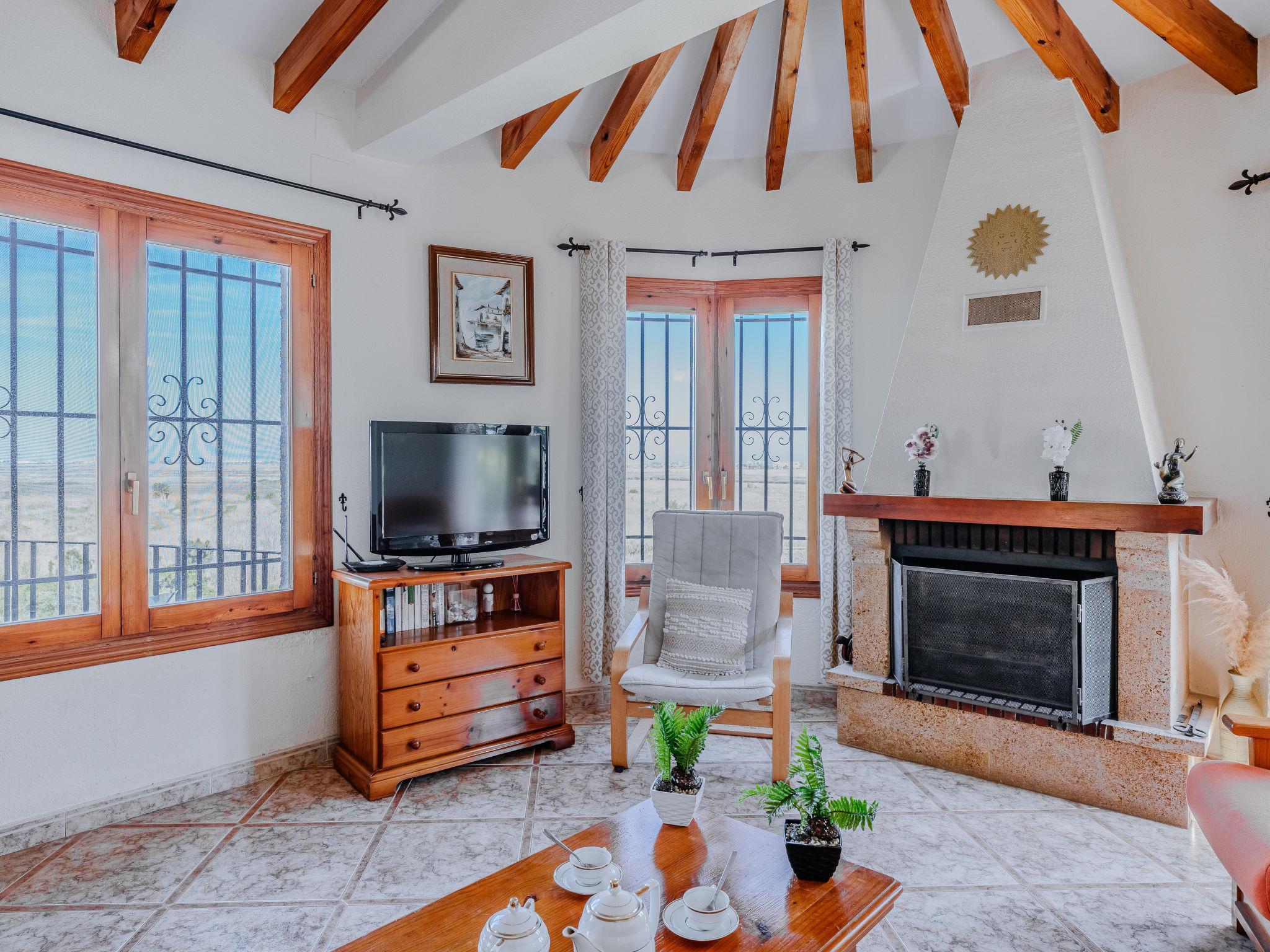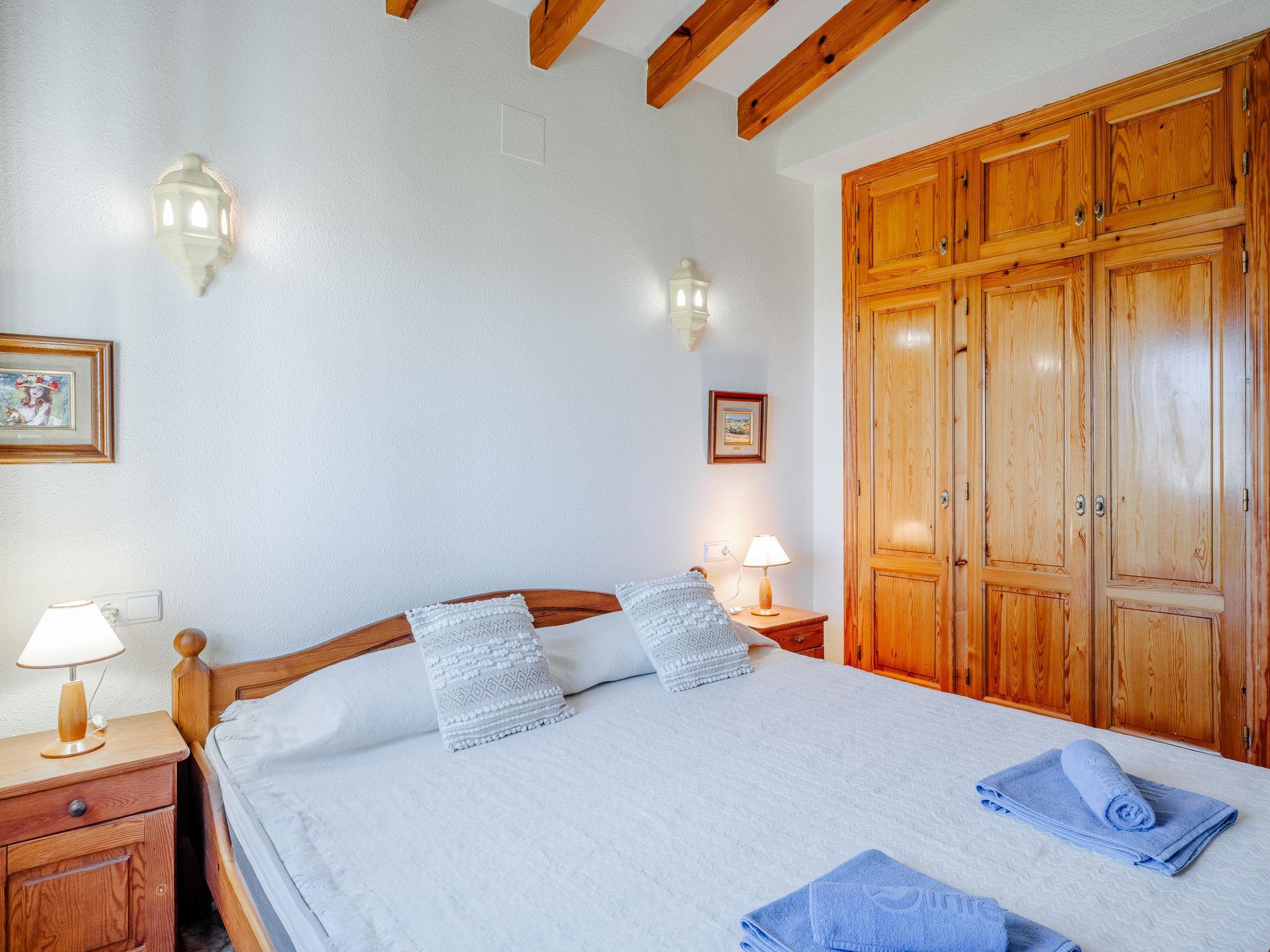 "Los Delfines", 3-room house 100 m2. Spacious, very simple and cosy furnishings: living/dining room with digital TV, hi-fi system, DVD, air conditioning and forced-air heating. Exit to the terrace. 1 room with 1 french bed (180 cm, length 200 cm). 1 room with 1 double fold-away bed (160 cm, length 200 cm). Kitchen (oven, 3 ceramic glass hob hotplates, toaster, kettle, microwave, freezer, electric coffee machine, Capsules for coffee machine (Tassimo) extra). Bath/WC, sep. WC. Floor heating. Large terrace. Terrace furniture, barbecue. Marvellous view of the sea, the mountains and the valley. Facilities: washing machine, iron, hair dryer. Internet (WiFi, free). Parking. Please note: TV only ES. AT-482710-A // Reg. Nr.: ESFCTU00000301500025508100000000000000000AT-482710-A4