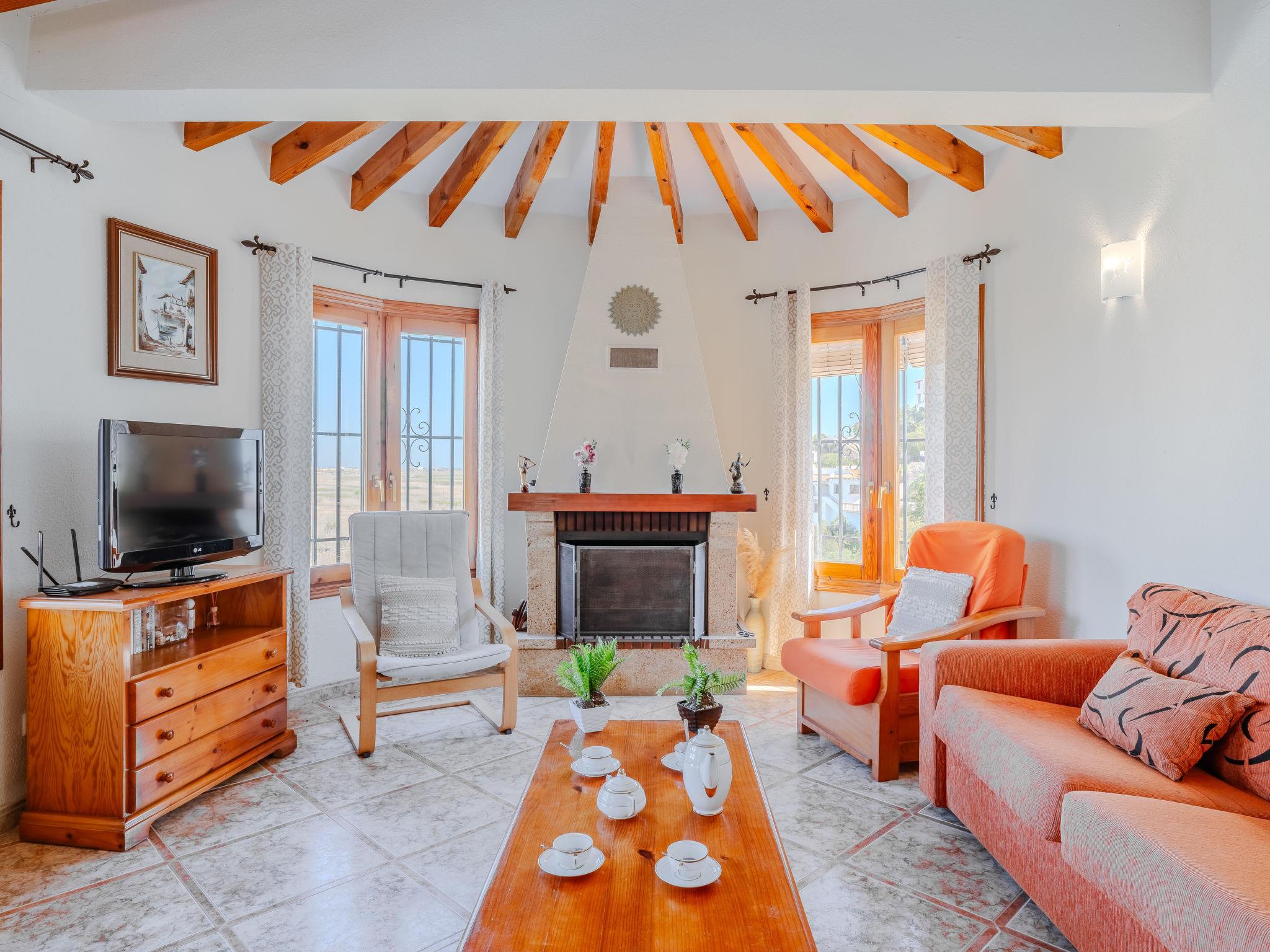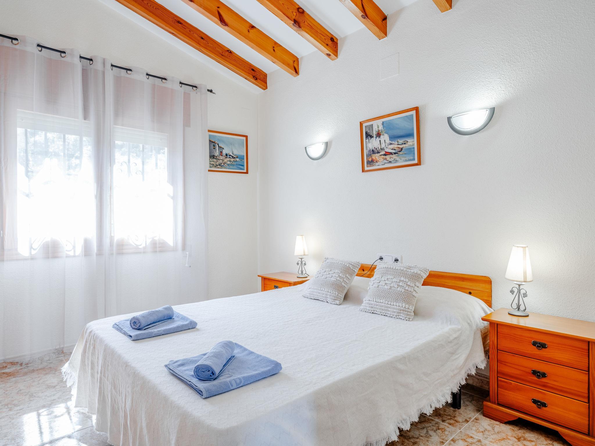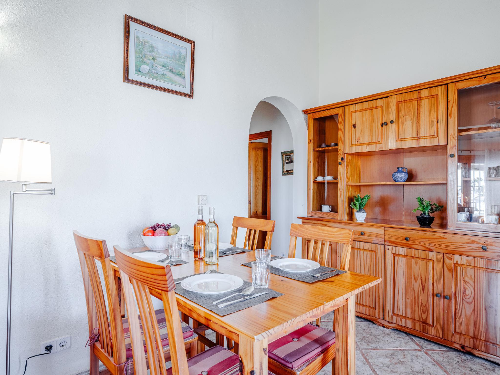 "Los Delfines", 3-room house 100 m2. Spacious, very simple and cosy furnishings: living/dining room with digital TV, hi-fi system, DVD, air conditioning and forced-air heating. Exit to the terrace. 1 room with 1 french bed (180 cm, length 200 cm). 1 room with 1 double fold-away bed (160 cm, length 200 cm). Kitchen (oven, 3 ceramic glass hob hotplates, toaster, kettle, microwave, freezer, electric coffee machine, Capsules for coffee machine (Tassimo) extra). Bath/WC, sep. WC. Floor heating. Large terrace. Terrace furniture, barbecue. Marvellous view of the sea, the mountains and the valley. Facilities: washing machine, iron, hair dryer. Internet (WiFi, free). Parking. Please note: TV only ES. AT-482710-A // Reg. Nr.: ESFCTU00000301500025508100000000000000000AT-482710-A4