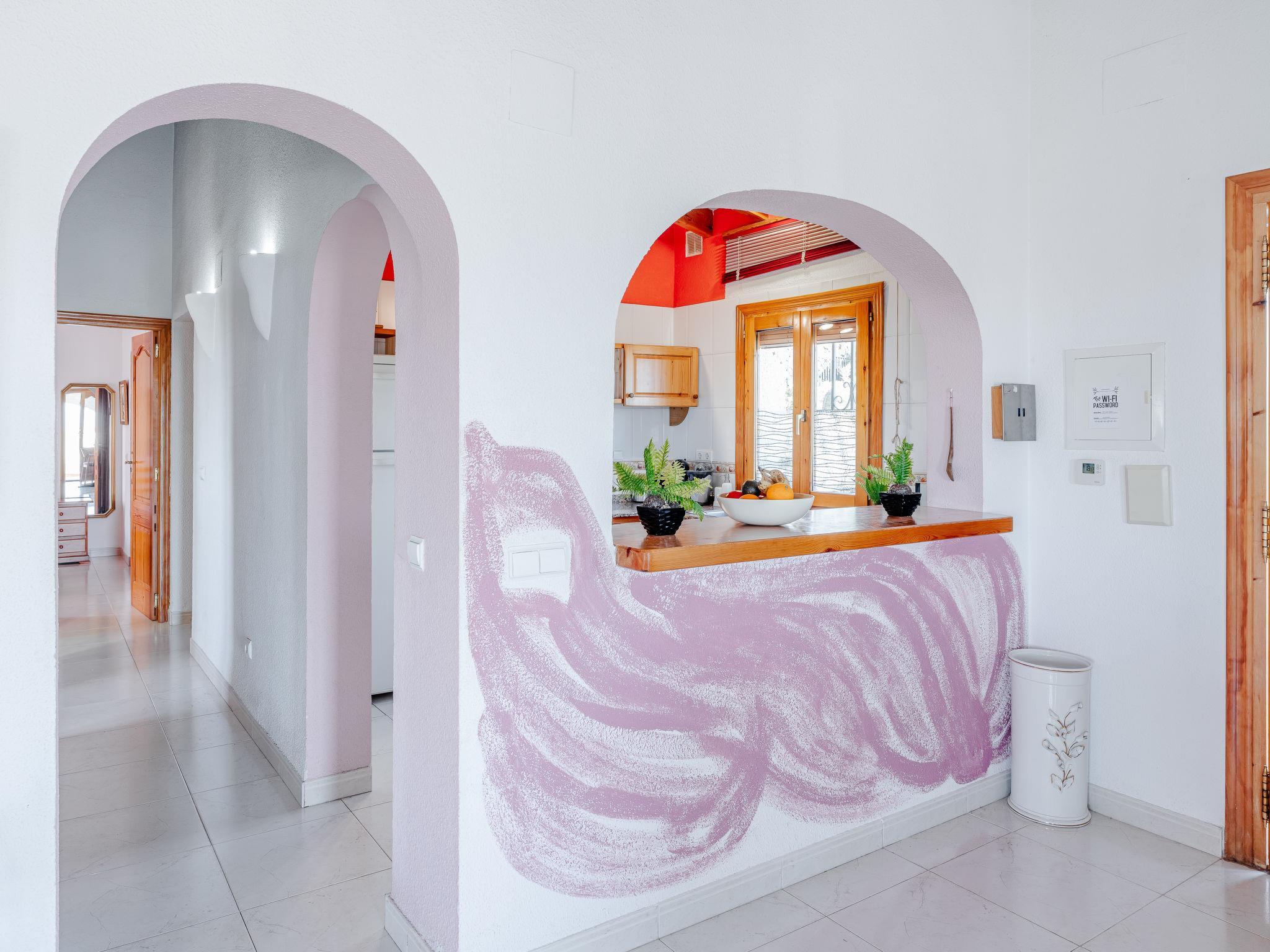 Simple house "Los Limoneros", 2 storeys. In the district of Monte Pego, in a quiet, sunny position, 7 km from the sea, 7 km from the beach. Private: large, beautiful terraced garden, swimming pool angular (8 x 4 m, depth 40 - 200 cm, seasonal availability: 01.Jan. - 31.Dec.) with internal staircase. Outdoor shower, garden furniture, barbecue, parking on the premises. Shop 8.5 km, supermarket 5.7 km, shopping centre 9.5 km, restaurant 700 m, bakery 8.5 km, café 5.7 km, bus stop 6.3 km, sandy beach "Les Marines" 7 km. Sports harbour 16 km, marina 16 km, surf school 8.5 km, sailing school 8.5 km. The owner does not accept any youth groups.
