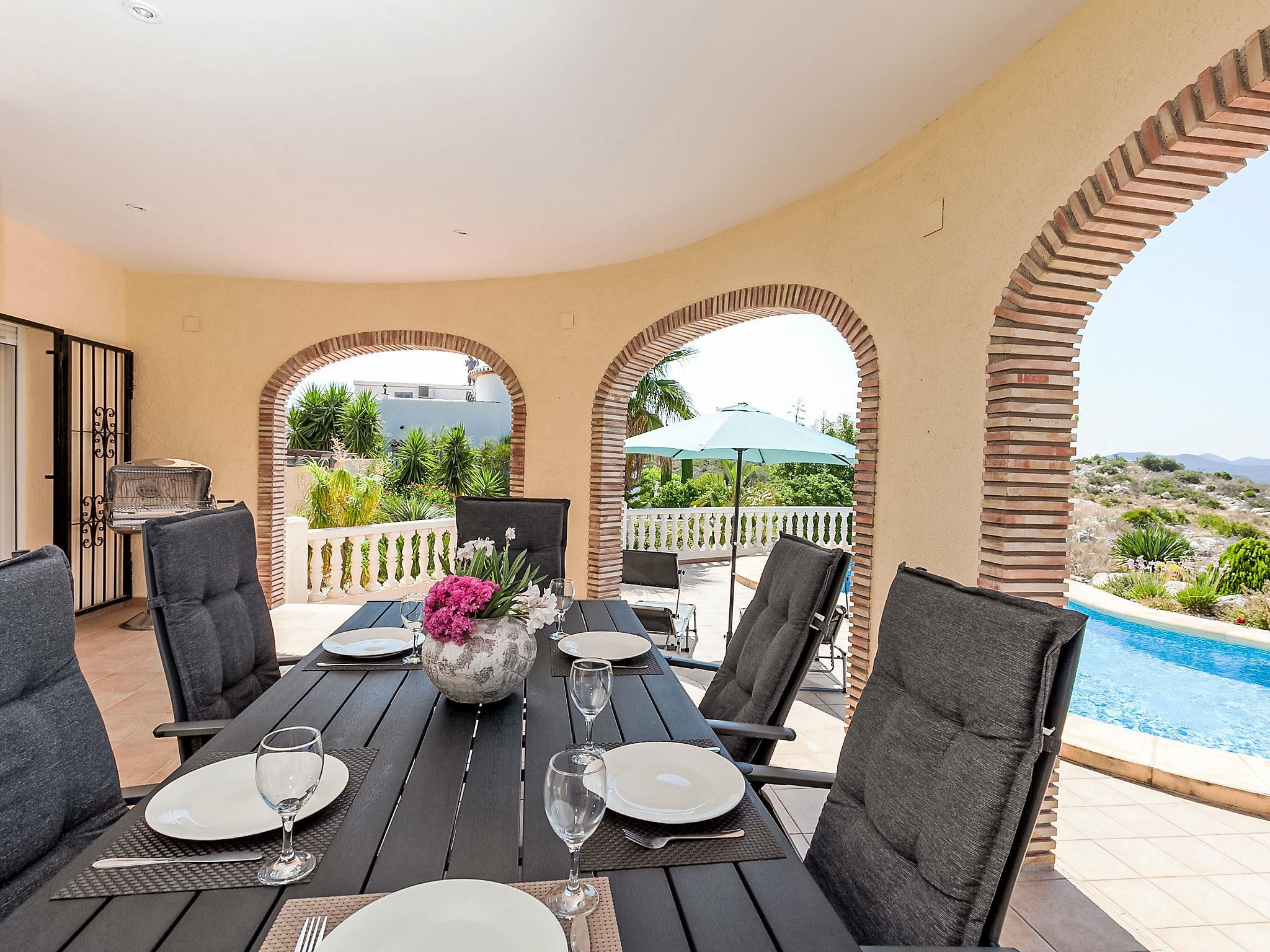 Very modern, beautiful, comfortable villa "Capi". Outside the resort, 4 km from the centre of Ràfol d'Almúnia, in the district Residencial L'Almúnia, 9 km from the sea, 9 km from the beach, south facing position. Private: large, beautiful, well-kept terraced garden, 800 m2 (fenced) with wildlife garden and trees, swimming pool kidney shaped (4 x 9 m, depth 80 - 190 cm, seasonal availability: 01.Jan. - 31.Dec.). Terrace (100 m2), garden furniture, barbecue. In the house: washing machine. Parking. Bus stop 3 km, sandy beach "Les Deveses" 9 km. Golf course (18 hole) 10 km, tennis 3 km, riding stable 9 km. Nearby attractions: Terra Mítica 60 km, Mundomar 62 km, Cuitat de les Cièncias i les Arts 91 km. Hiking paths: Vall d'Ebo 7 km. Please note: car recommended. Suitable for families. The owner does not accept any youth groups. 24hr guard. Airfield 96 km from the property.