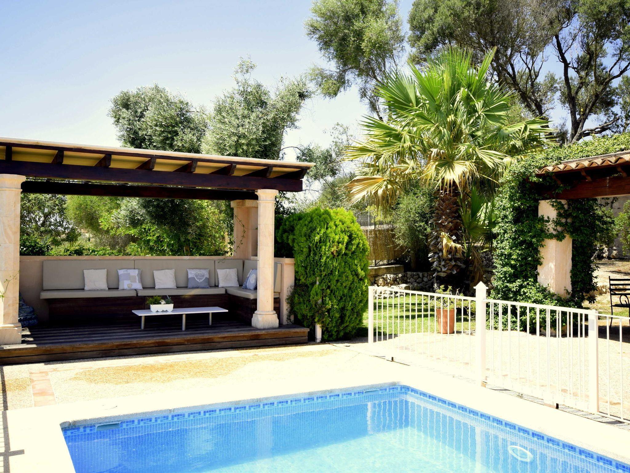 Sehr ruhig gelegene Finca Sa Font bei Petra, Pool Panoramaweitblick, Ortsnah.3 Schlafzimmer, eines davon klimattisiert, 2 Bäder, 1 x en Suite, Pool kindersicher abgeteilt, 6 Pers.Dieses typische, sehr gepflegte mallorquinische Landhaus wurde von den Eigentümern mit viel Liebe zum Detail restauriert und modernisiert. Durch die leicht erhöhte Lage des Hauses,bietet sich von den teilweise überdachten Terrassen ein wunderschöner Weitblick auf Petra und die dahinter liegende Insel. Im Inneraum setzt sich die gestalterische Linie mit mediteranen Flair fort. Vom großen Wohn-/Esszimmer mit Kamin und Kaminofen gelangt man in die Küche, die ebenfalls einen Terrassenzugang hat. Eines der Bäder liegt in einem Flur im EG zwischen 2 Schlafzimmern, wovon eines ebenfalls direkten Terrassenzugang hat. Eine Treppe führt aus dem Wohnzimmer zum 3. klimatisiertem Schlafzimmer mit Bad en Suite und eigener Terrasse. Die Qualität und Verarbeitung der materialien, die erhabene Lage geben hier vom ersten Moment an das Gefühl der Geborgenheit und Ruhe. Der Pool ist kindersicher eingezäunt. Selbstverständlich gibt es einen Aussengrill sowie Spielflächen im Garten und den angrenzenden Grünflächen.
